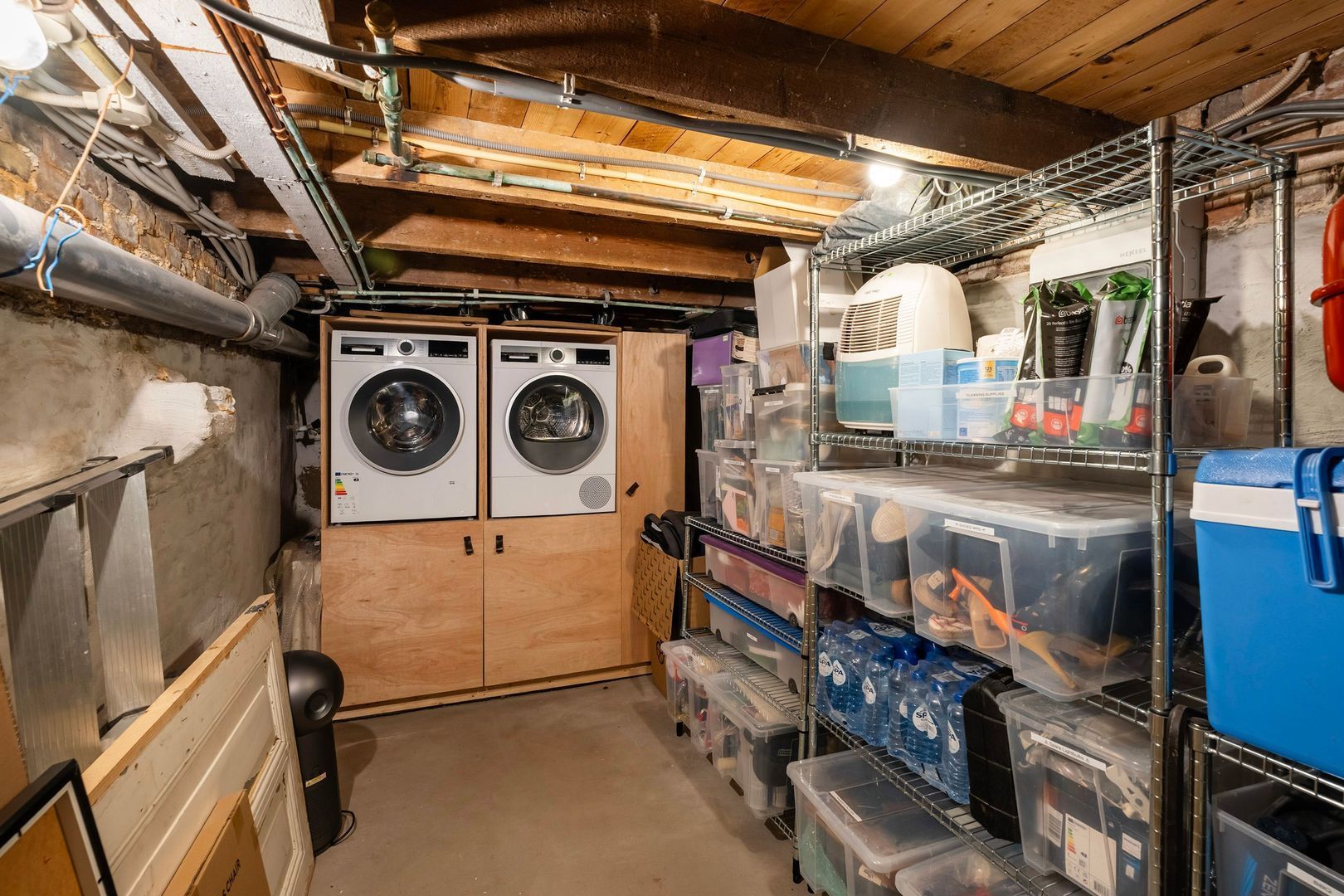 - Ruime kelder voorzien van wasmachineaansluiting, warmtepomp en boiler-opstelling