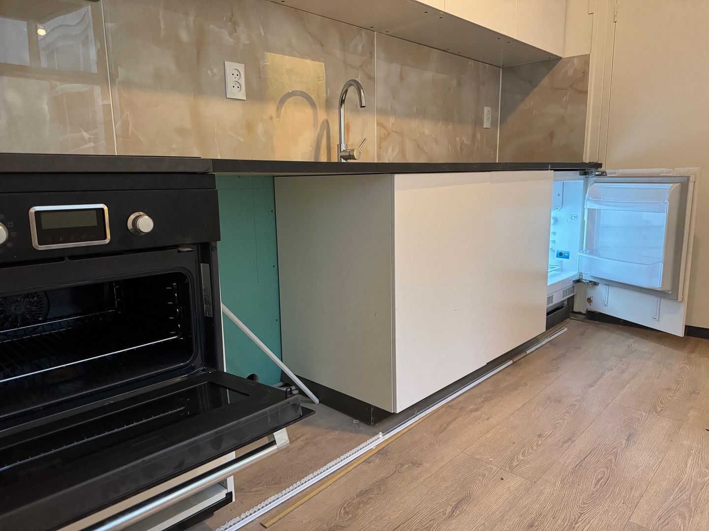Centrale entree aan de straat; binnentrap naar de 1e etage; entree woning waarbij je binnenkomt in de hal die doorloopt in de open keuken, nieuw aanrechtblok met ingebouwde inductiekookplaat, koelkast, oven, afzuigkap en ruimte met opstelplaats voor vaatwasser of wasmachine; doorloop naar de over de volle breedte aan de straatzijde gesitueerde grote doorgebroken woonkamer met grote raampartijen; slaapkamer aan de binnenzijde met raampartij en daglicht; badkamer met douche, toilet(wandcloset), wastafelmeubel en aansluiting voor wasmachine.