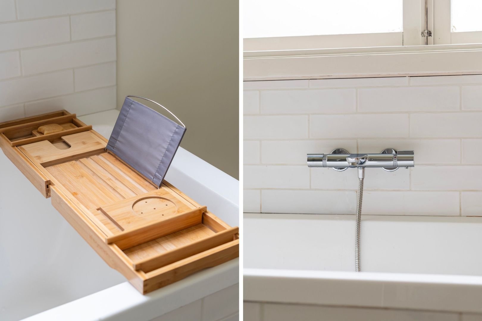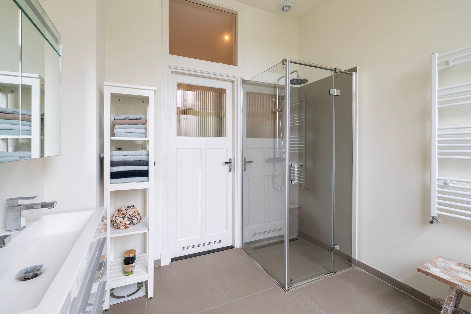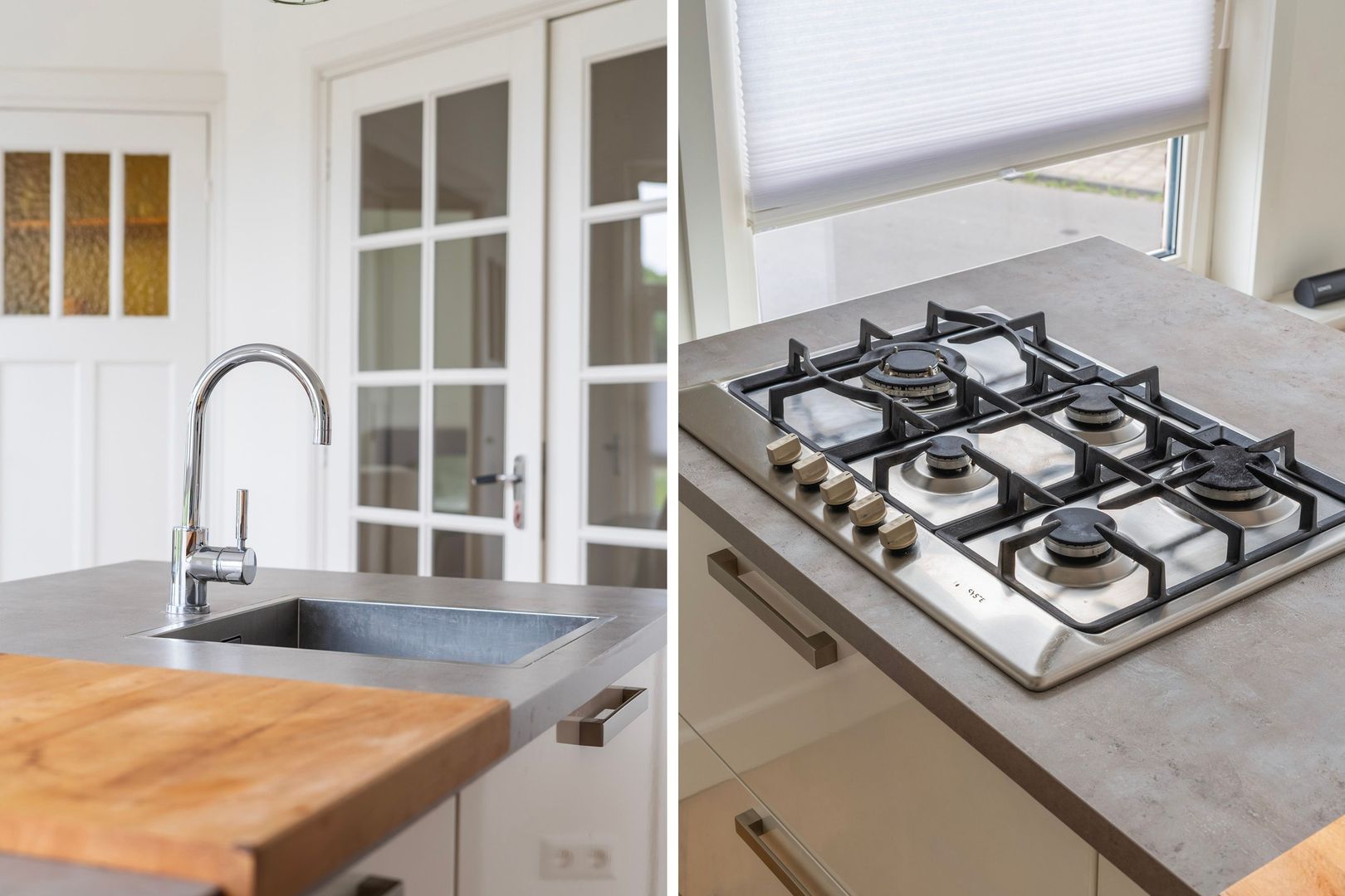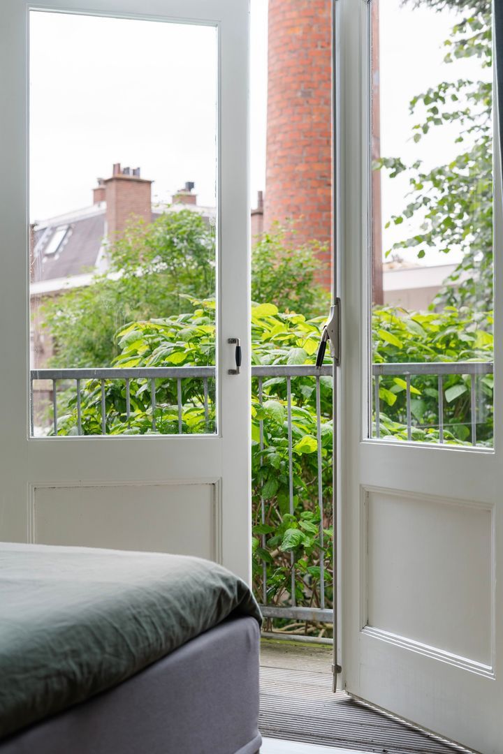 - Achterzijde voorzien van houten kozijnen met dubbel glas