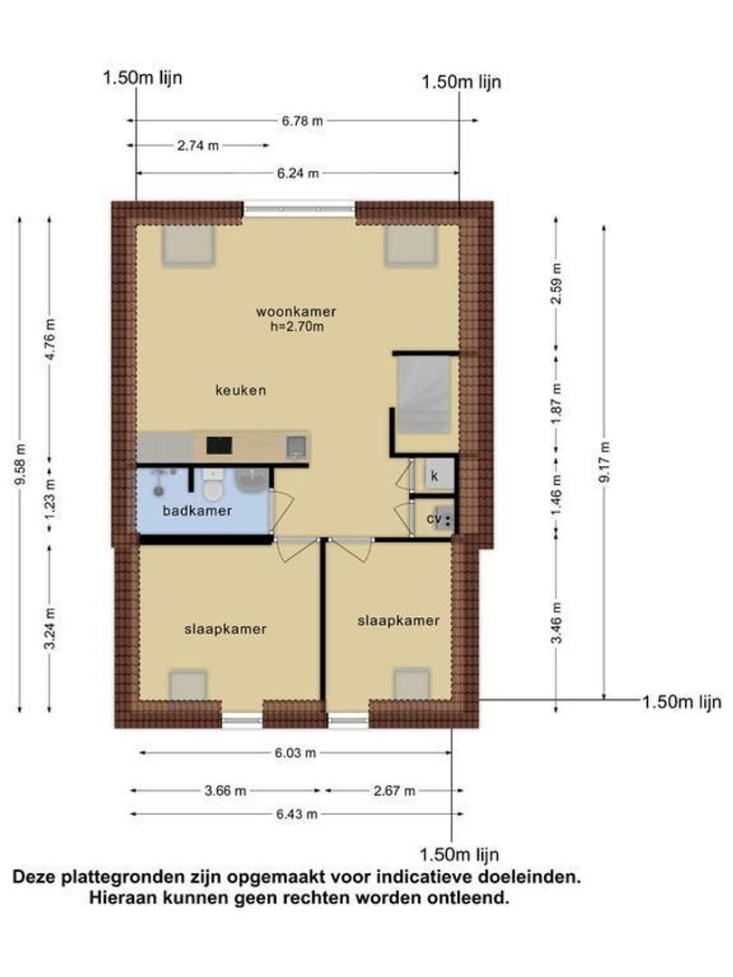 Deze informatie is door ons met de nodige zorgvuldigheid samengesteld. Onzerzijds wordt echter geen enkele aansprakelijkheid aanvaard voor enige onvolledigheid, onjuistheid of anderszins, dan wel de gevolgen daarvan. Alle opgegeven maten en oppervlakten zijn indicatief.- i.v.m. het bouwjaar zijn de ouderdoms- en materialenclausule van toepassing