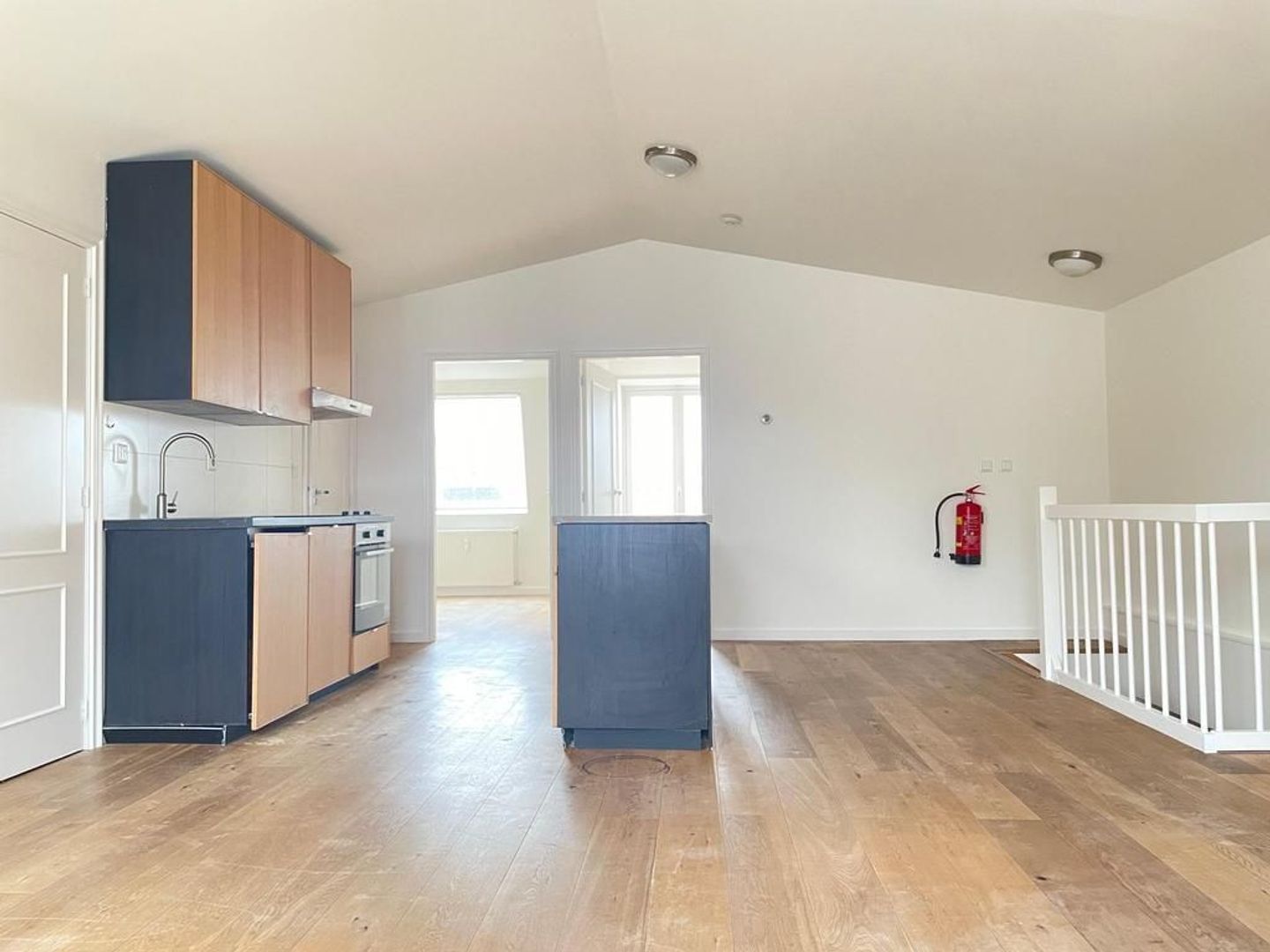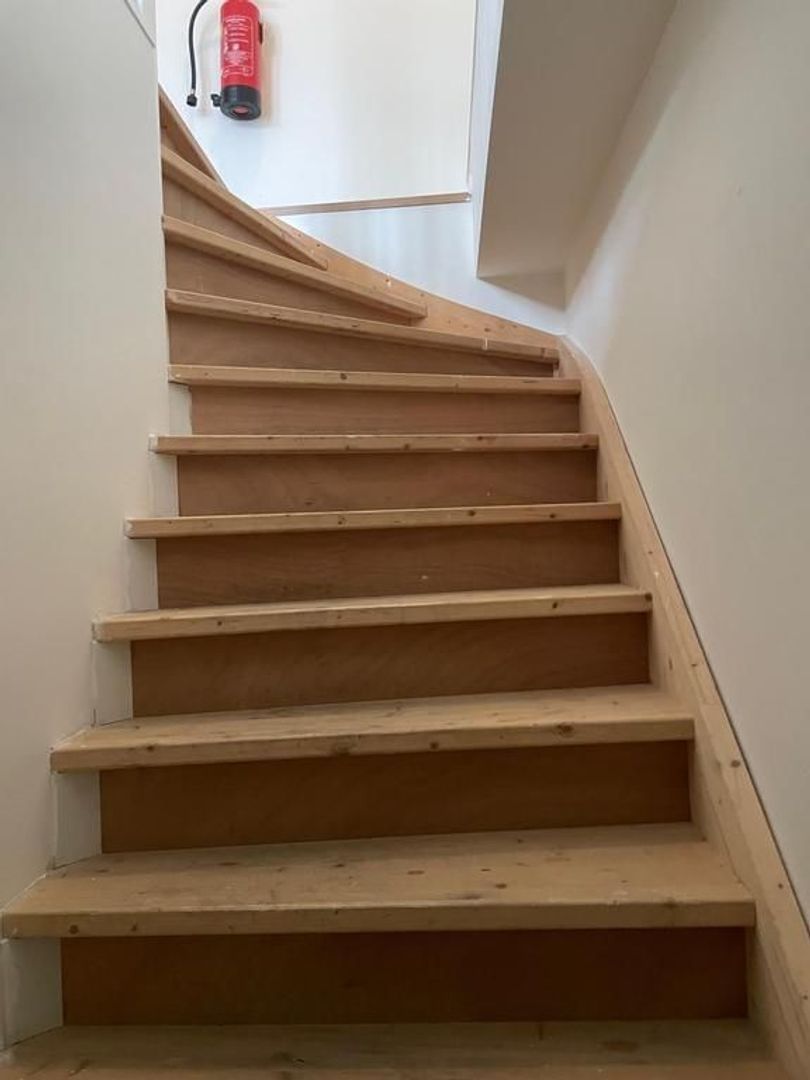 Centraal afgesloten centraal entree aan de straat; trap naar de 2e etage. Deur met eigen trap naar de 3e (zolder)etage; grote woonkamer met houten vloer, open keuken met ingebouwde kookplaat, vaatwasser, afzuigkap en oven; grote slaapkamer aan achterzijde met houten vloer; 2e slaapkamer aan de achterzijde; Toilet; bergruimte met wasmachine en opstelplaats cv-ketel. Badkamer met douche en wastafelmeubel.
