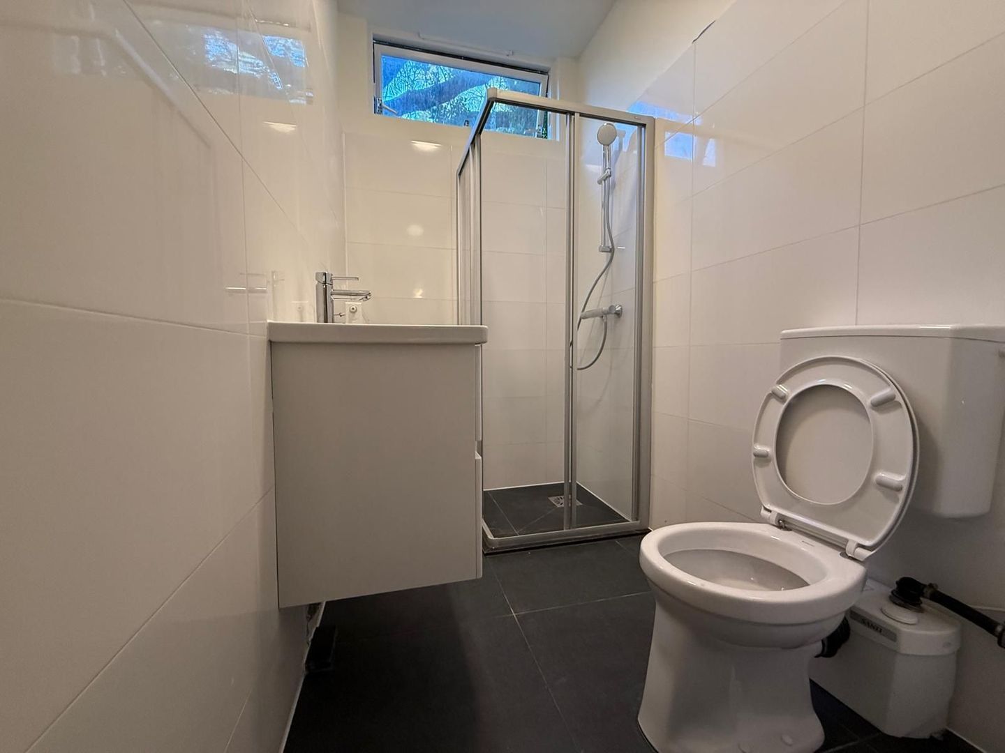 Entree aan straatzijde halletje, gang met toegang tot de voorslaapkamer en de tussenkamer (geen direct daglicht); tuingerichte woonkamer opgesplitst in 2 delen met open keuken met ingebouwde en losse apparatuur Via de keuken toegang tot de badkamer met toilet, douche en wastafel. Achtertuin ca. 6x5.50/5.75m.