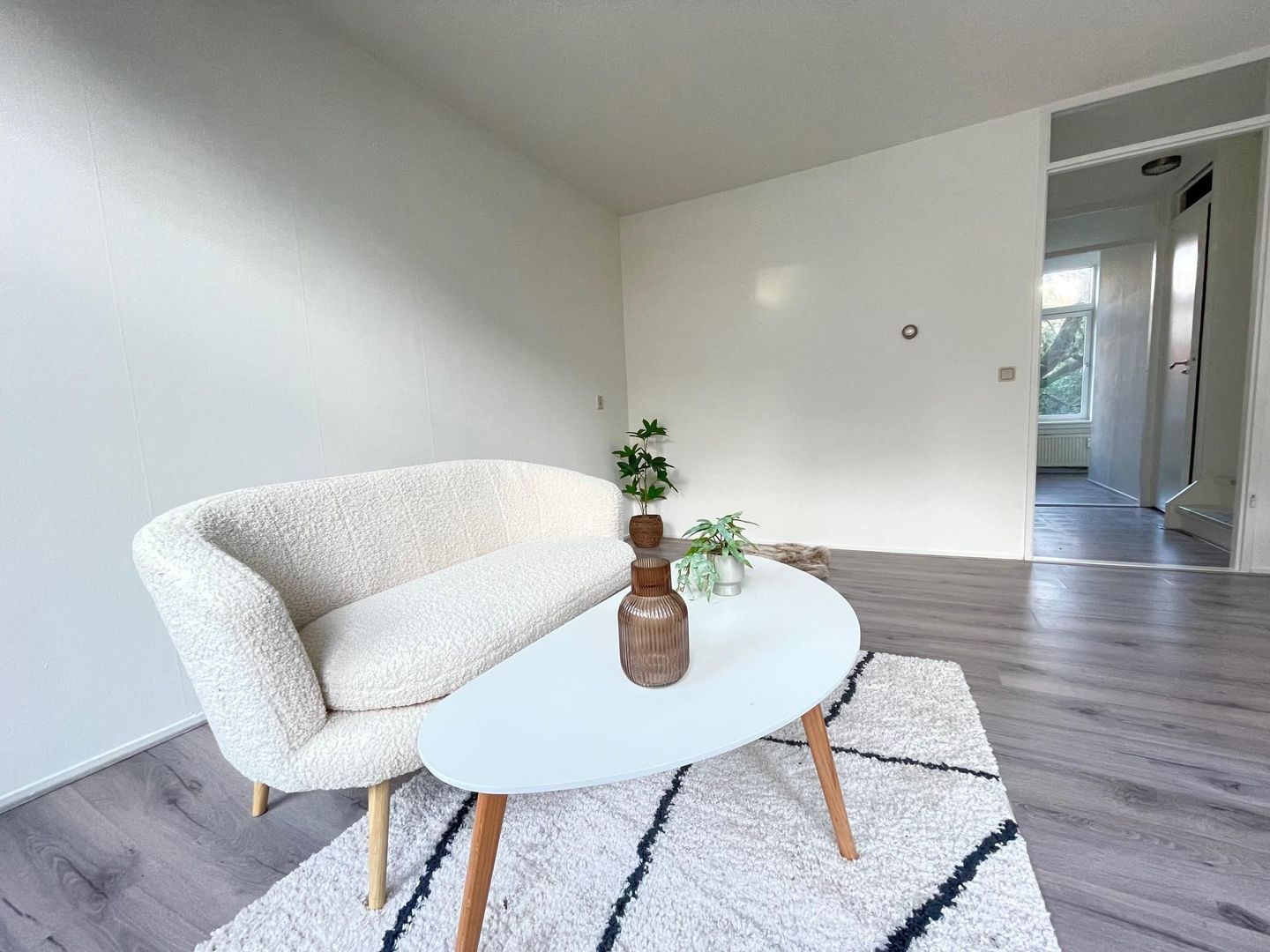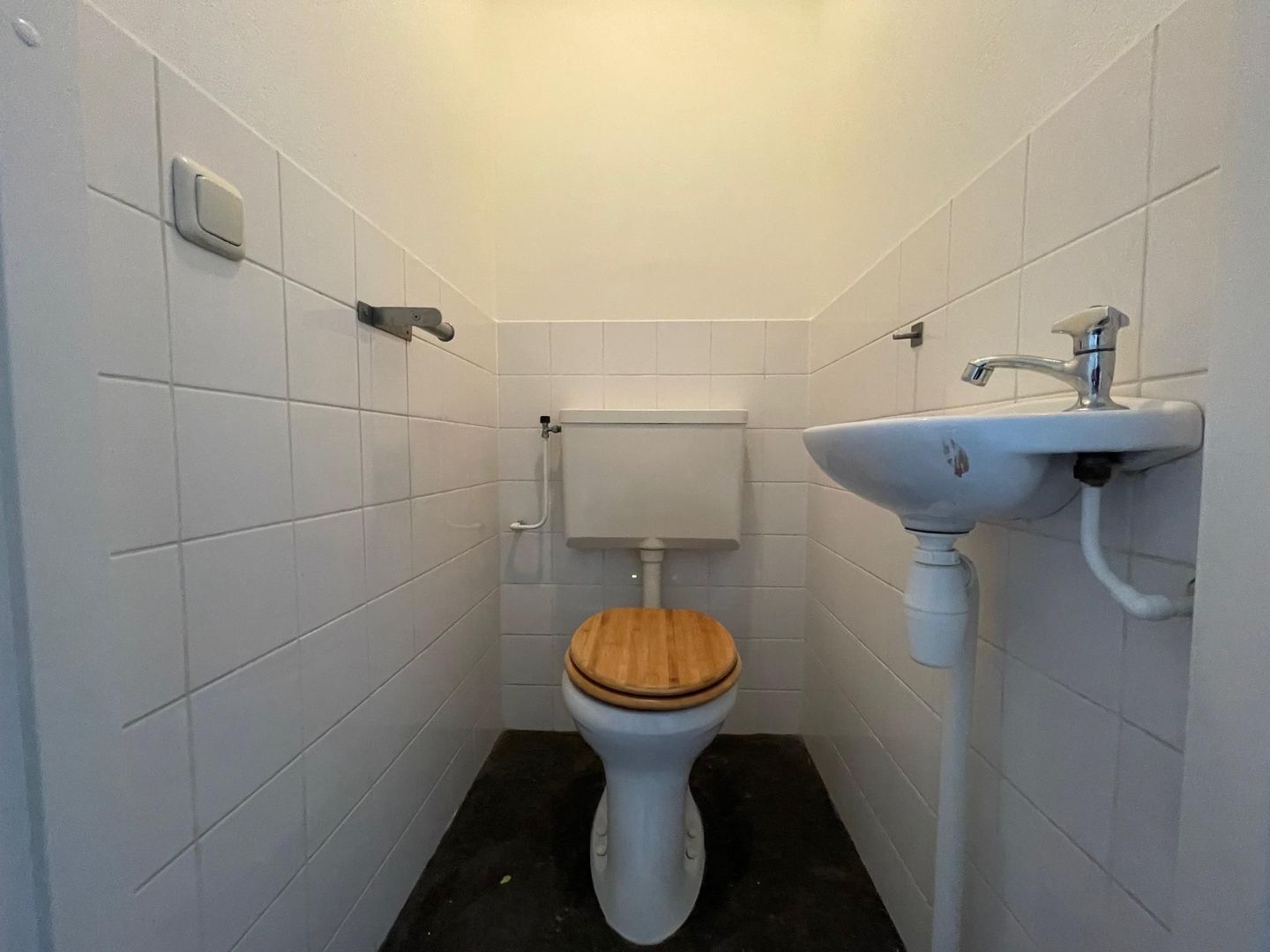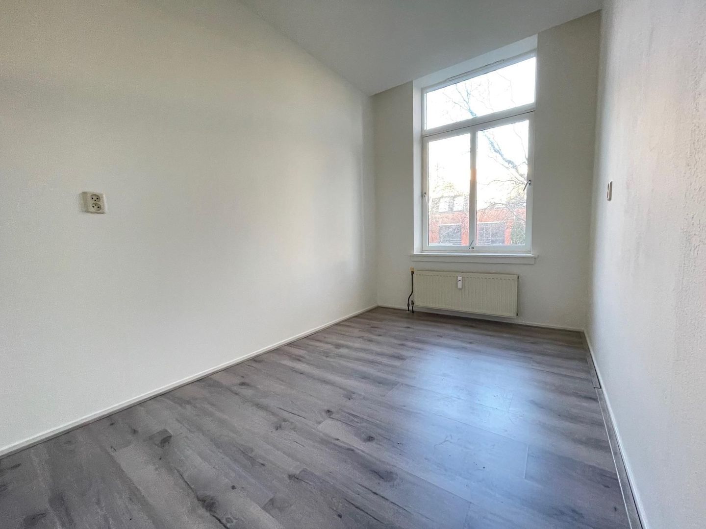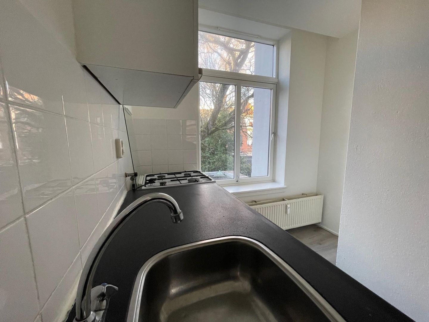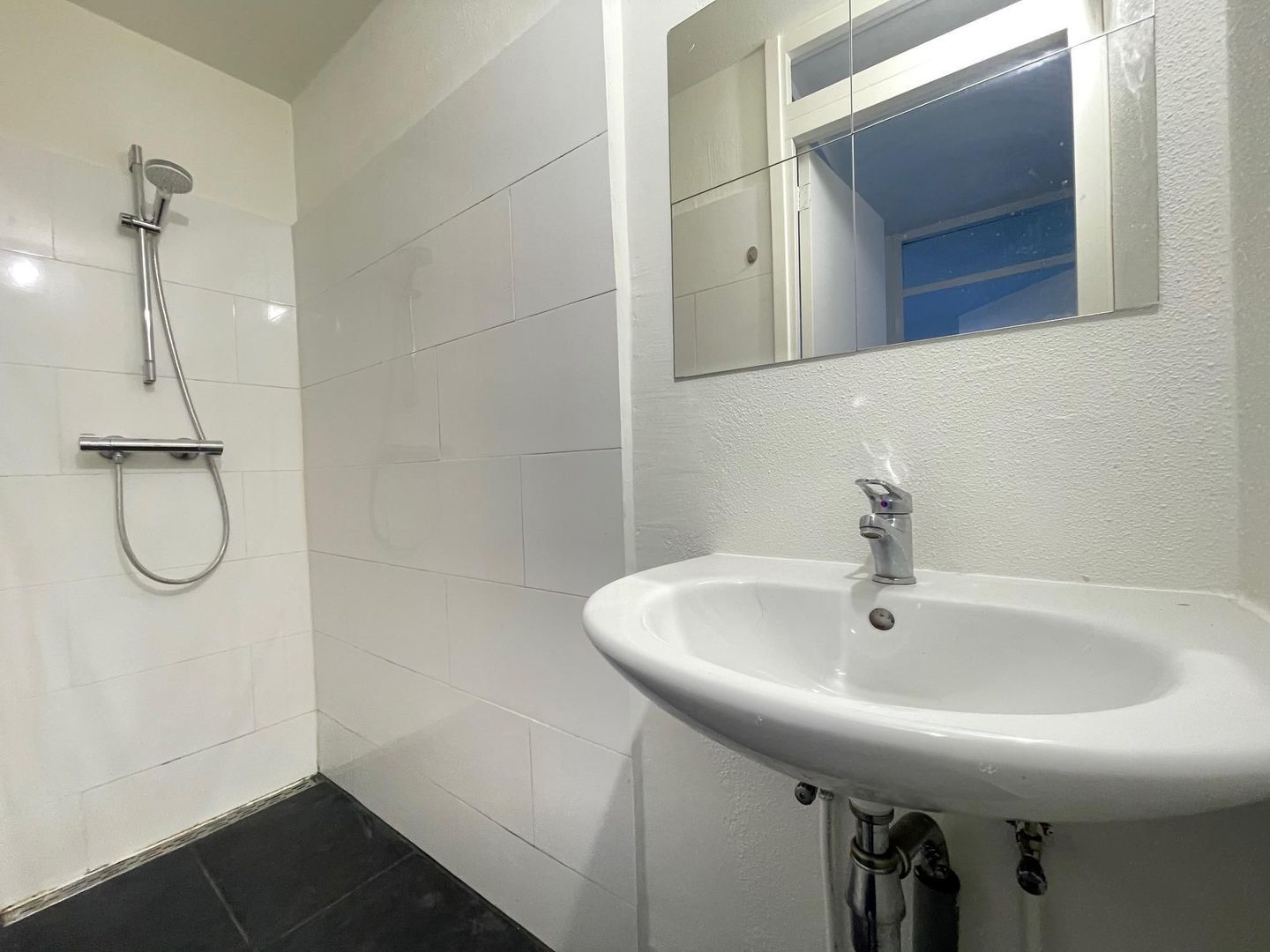 Entree aan straatzijde halletje, trap naar de 1e etage; hal gang met toegang tot de aan de staatzijde gelegen woonkamer over de volle breedte en 3 raankozijnen; slaapkamer aan de achterzijde met bergkast waar ook de cv-ketel is opgesteld; semie open keuken aan de achterzijde met een eenvoudig keukenblok met losstaande koelkast en gaskookplaat; via hal toegang tot het toilet en de badkamer met douche en wastafel. Geen privé buitenruimte.