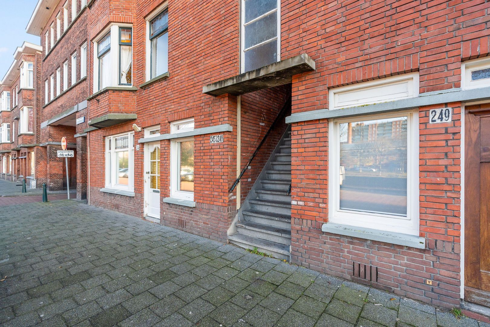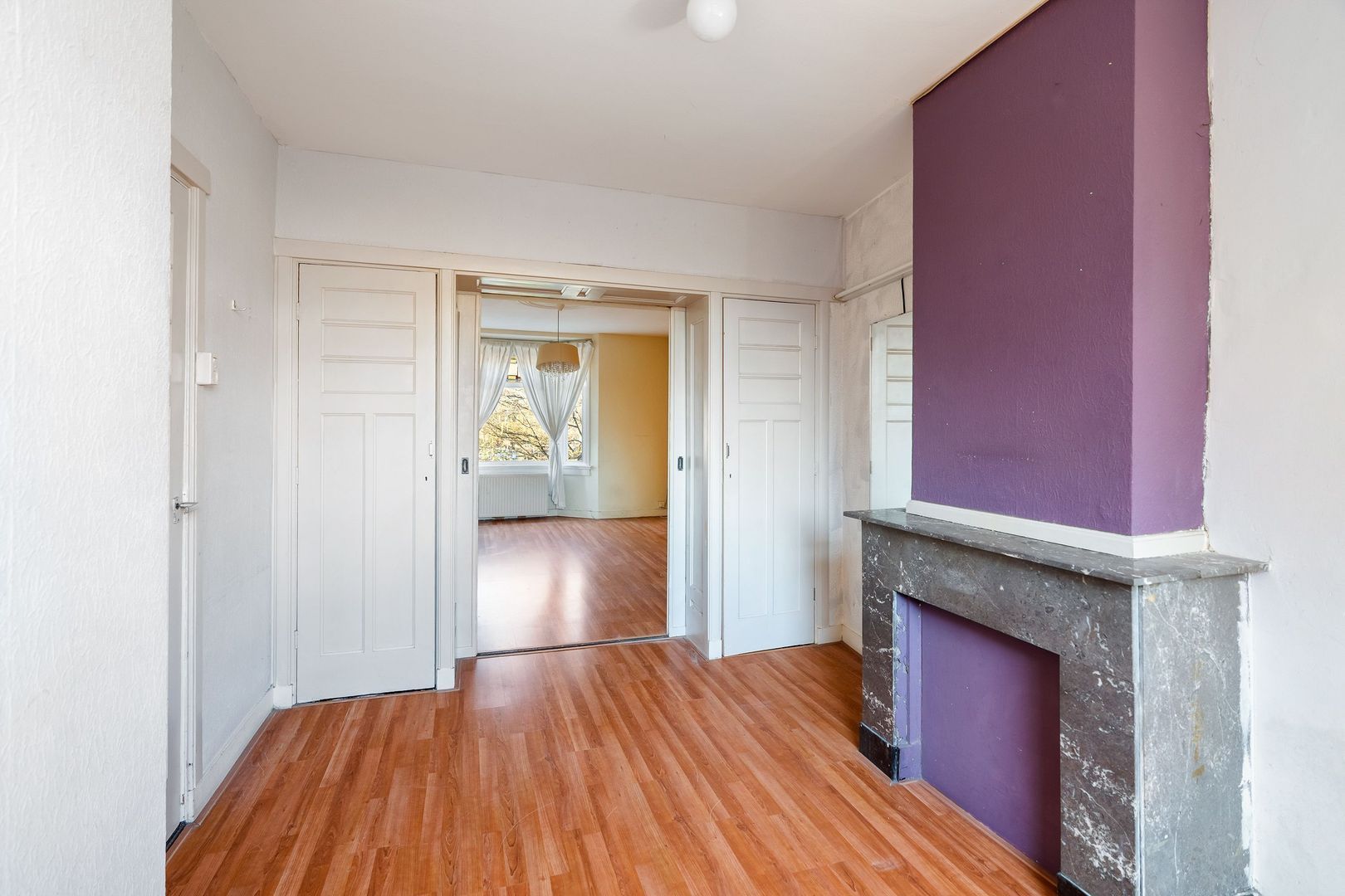 Woningentree via open portiek; hal met vaste kast en toegang tot alle vertrekken; lichte woonkamer en suite met een sfeervolle erker, zuite kast, marmeren schouwen en schuifseparatie naar, achtergedeelte woonkamer met twee suite kasten, als 1e slaapkamer te gebruiken; witte keuken met een afzuigkap, gasfornuis, opstelplaats cv-ketel en toegang tot het balkon; 2e slaapkamer aan de achterzijde met openslaande deuren naar het balkon; 3e slaapkamer aan de voorzijde; wit betegelde doucheruimte met wastafel; separaat toilet;