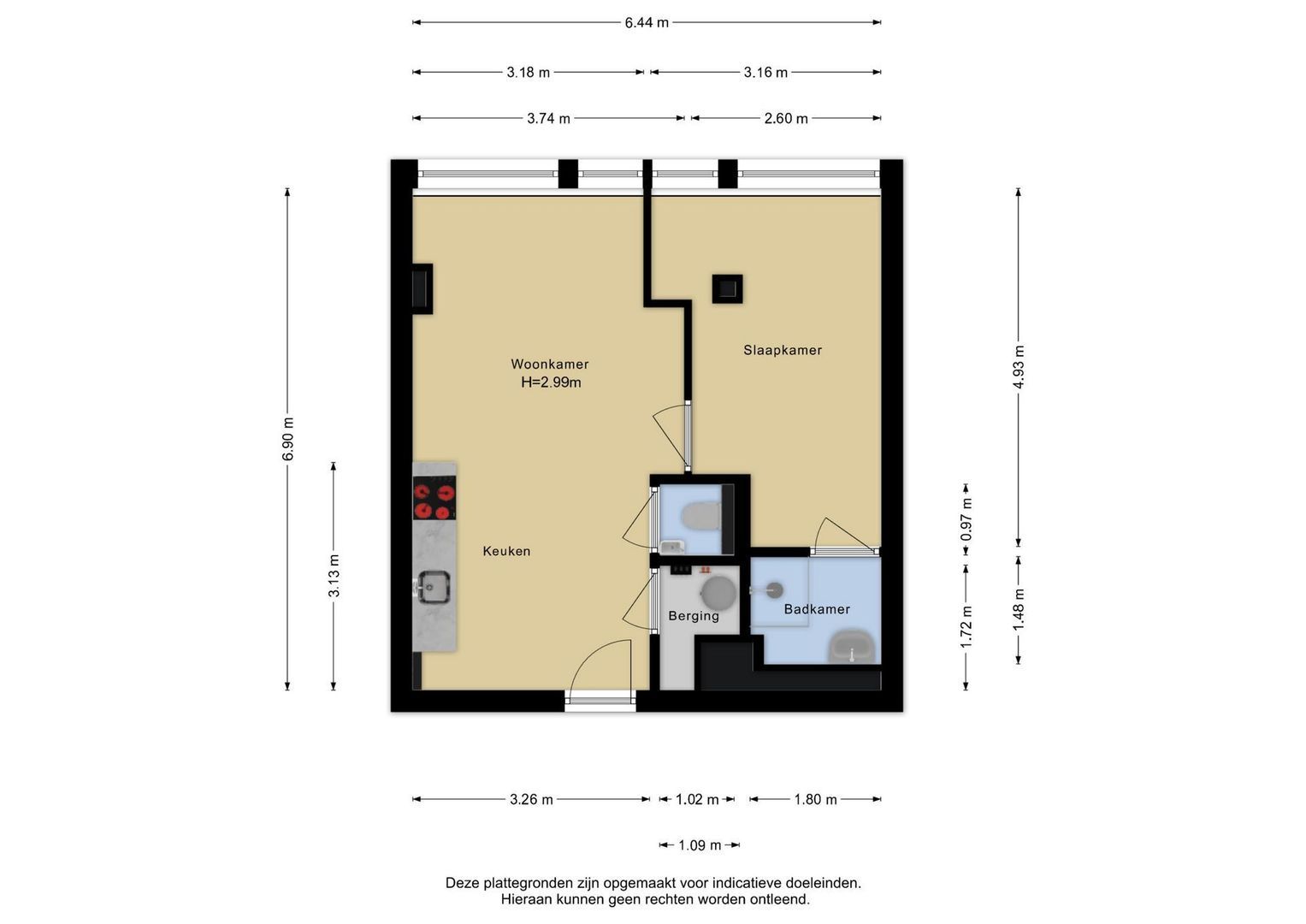 Deze informatie is door ons met de nodige zorgvuldigheid samengesteld. Onzerzijds wordt echter geen enkele aansprakelijkheid aanvaard voor enige onvolledigheid, onjuistheid of anderszins, dan wel de gevolgen daarvan. Alle opgegeven maten en oppervlakten zijn indicatief.