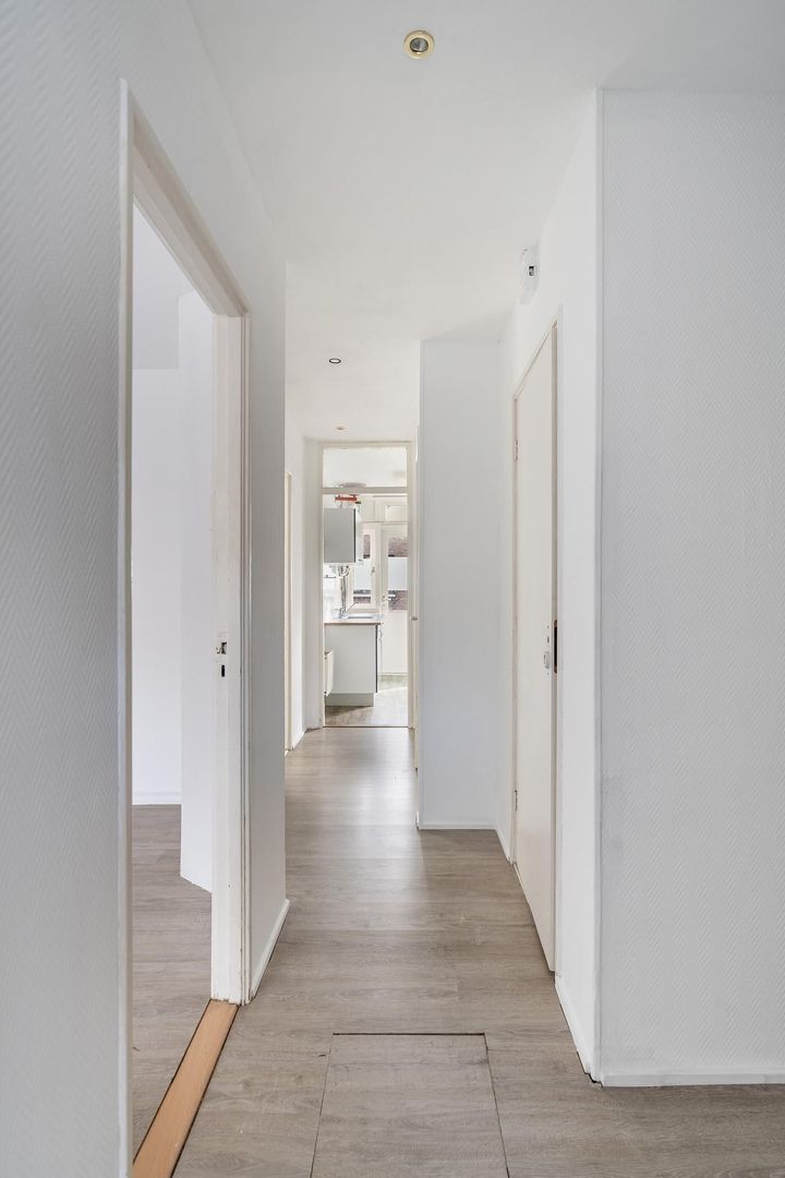 Laakkwartier. Eenvoudig degelijk 3/4 kamer appartement (64m²) op de 1e etage met achterbalkon. Deze woning is o.a. voorzien van een grote woonkamer, eenvoudige keuken, 2 slaapkamers en een eenvoudige badkamer. De Vereniging van Eigenaren is actief en de woning is gelegen op eigen grond.