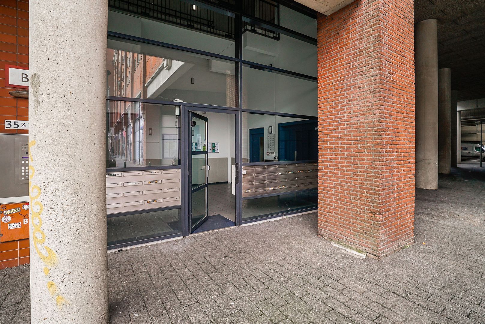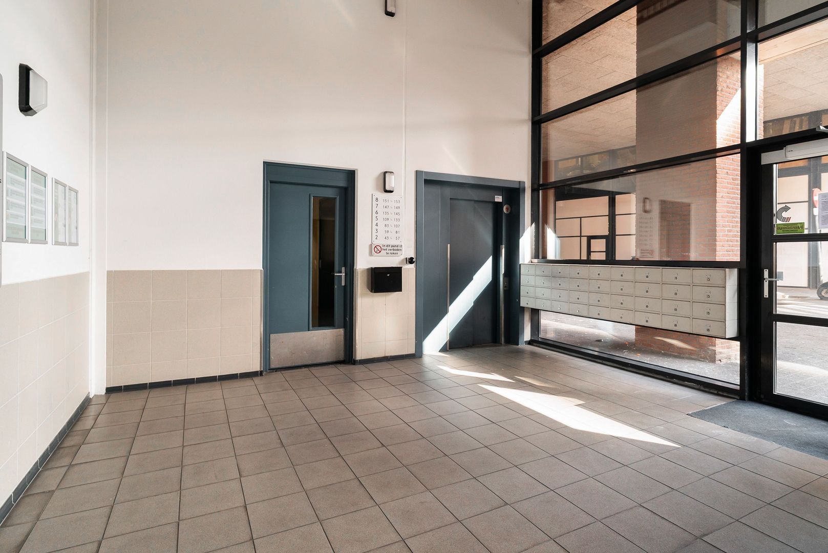 Entree: Gesloten entree; intercom-installatie met videofunctie en brievenbussen in ruime gemeenschappelijke hal die toegang biedt tot de lift en het trappenhuis: