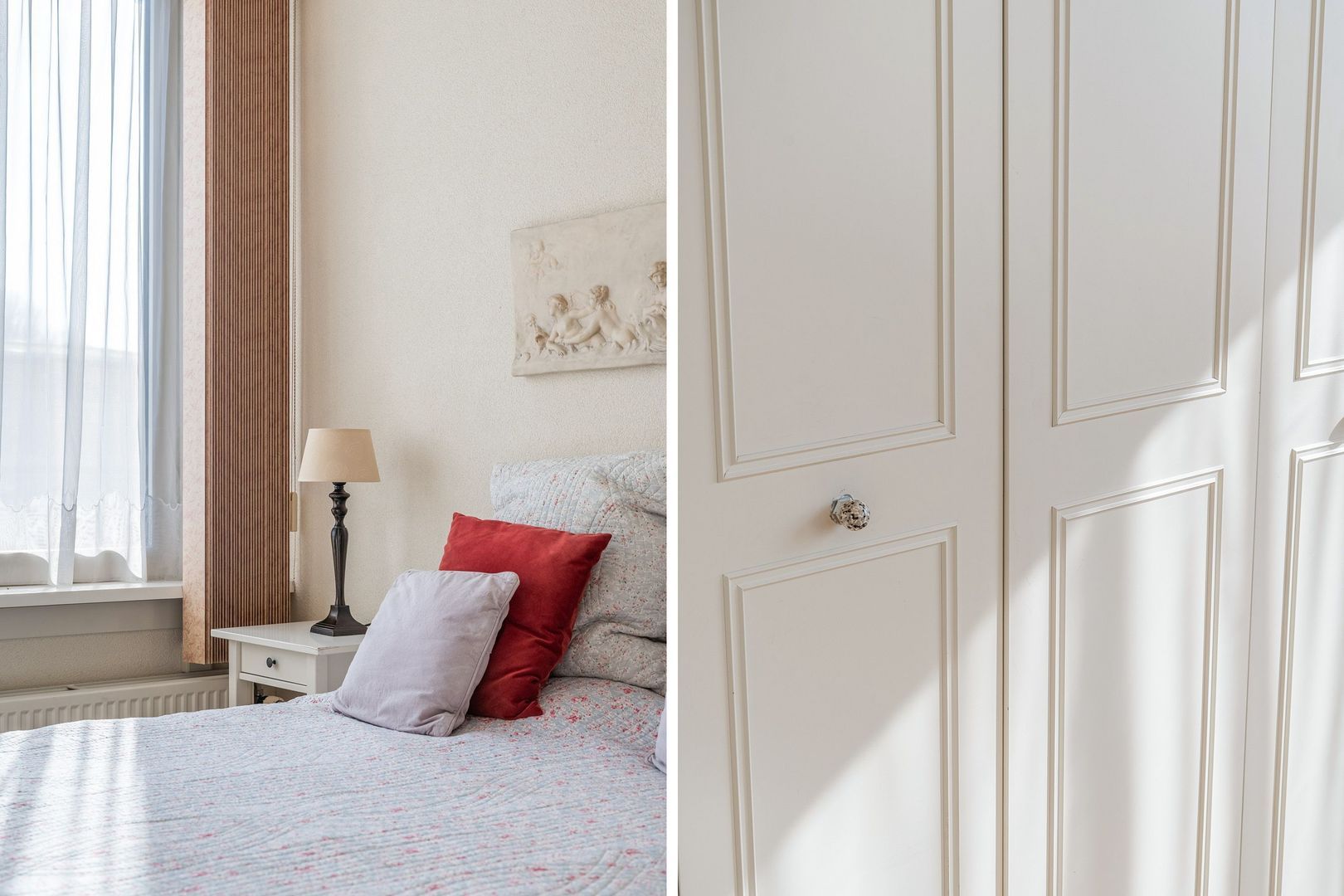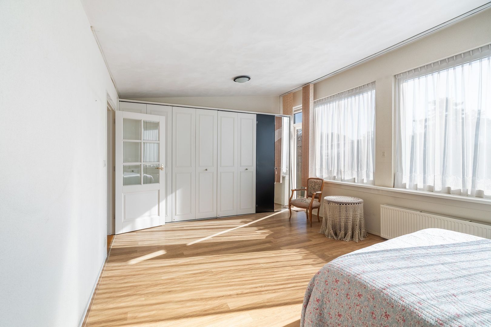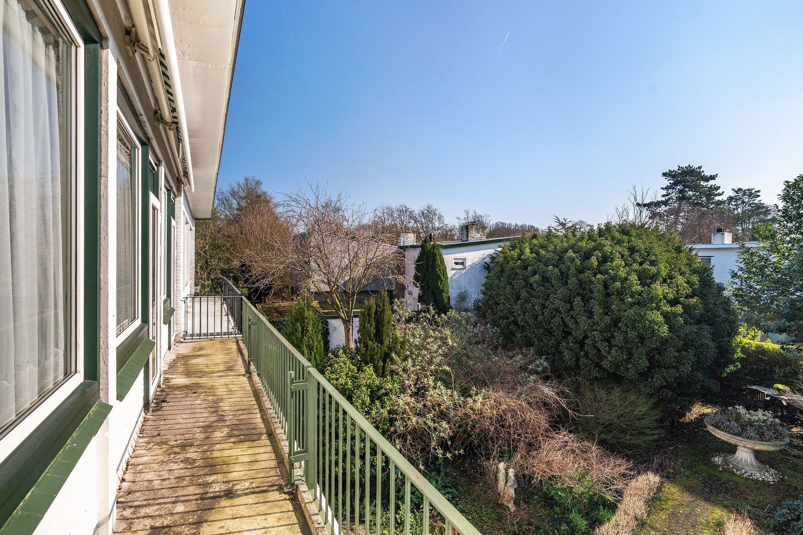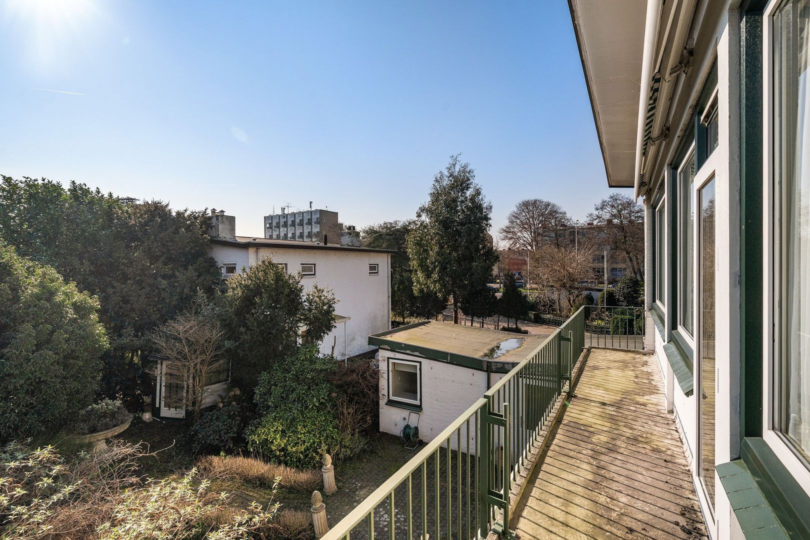 Via de gang trap naar de etage, overloop met kast en cv-ketel opstelling; oorspronkelijk 3 slaapkamers aan de tuinzijde die nu zijn omgebouwd tot een zeer royale hoofdslaapkamer met kastenwand en toegang tot balkon en een 2e goede slaapkamer met toegang tot het balkon. Badkamer met ligbad, douche, wastafelmeubel en 2e toilet. Het balkon loopt over de volle breedte van de etage.