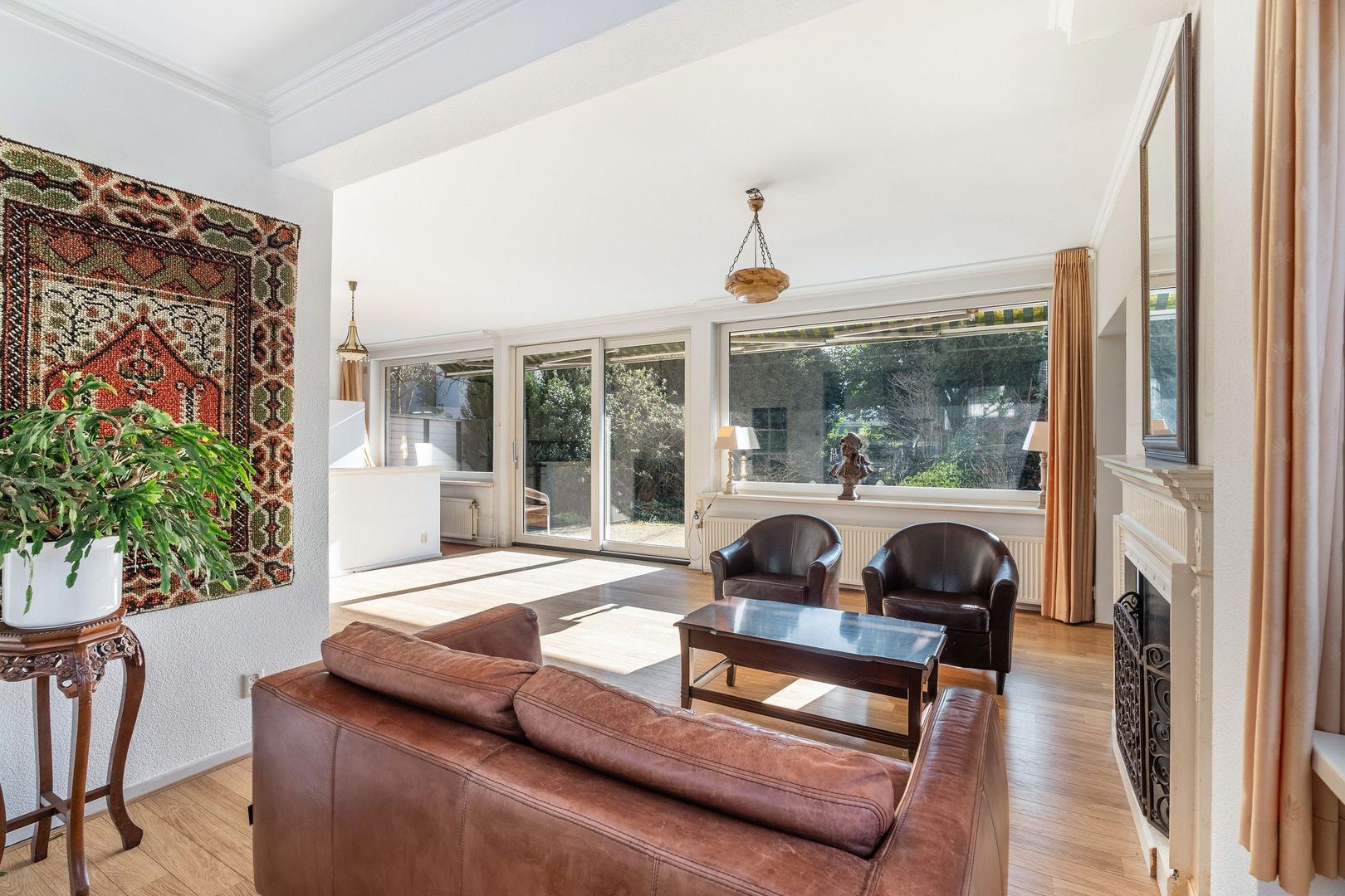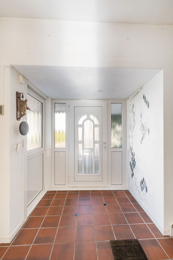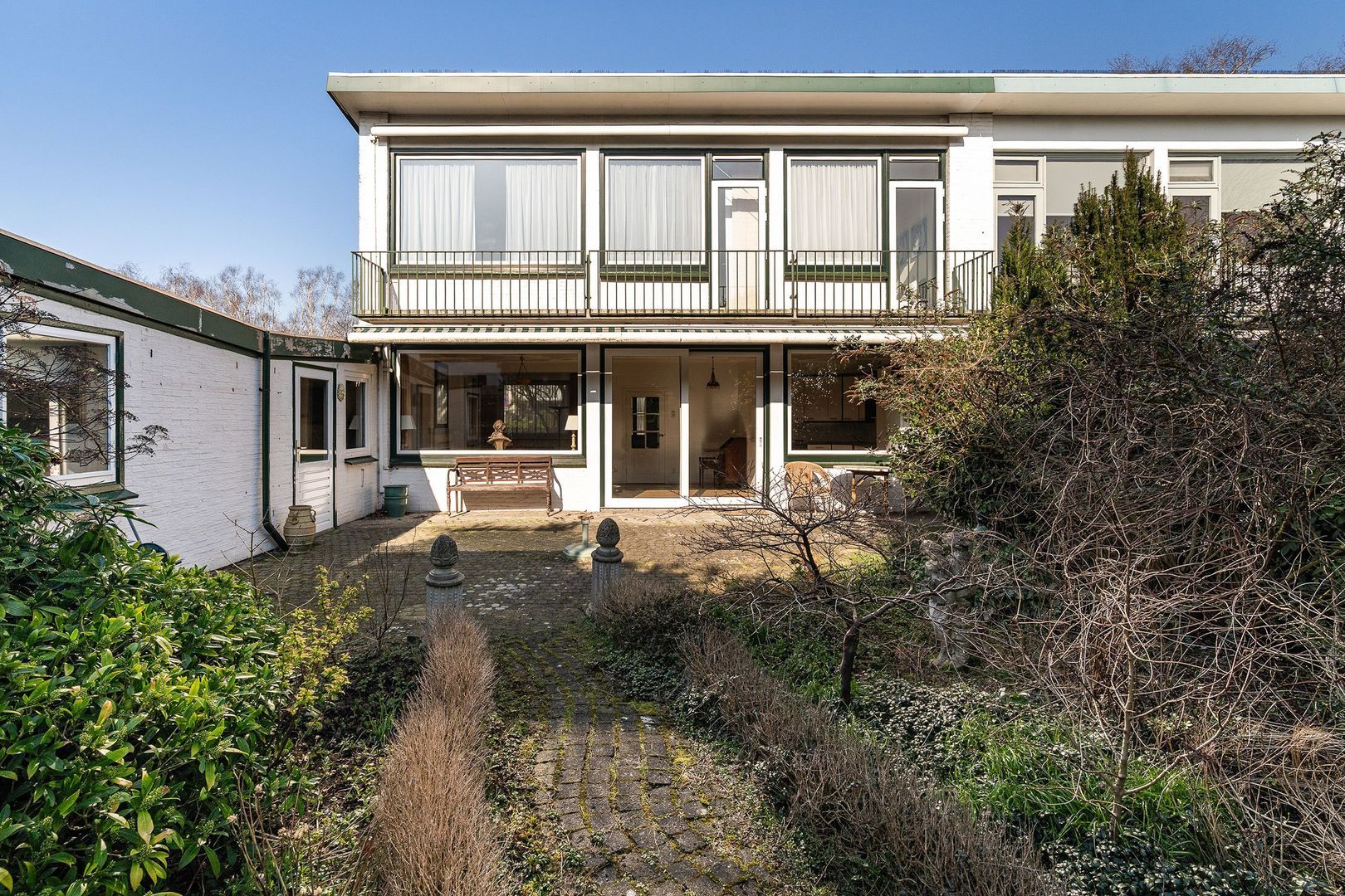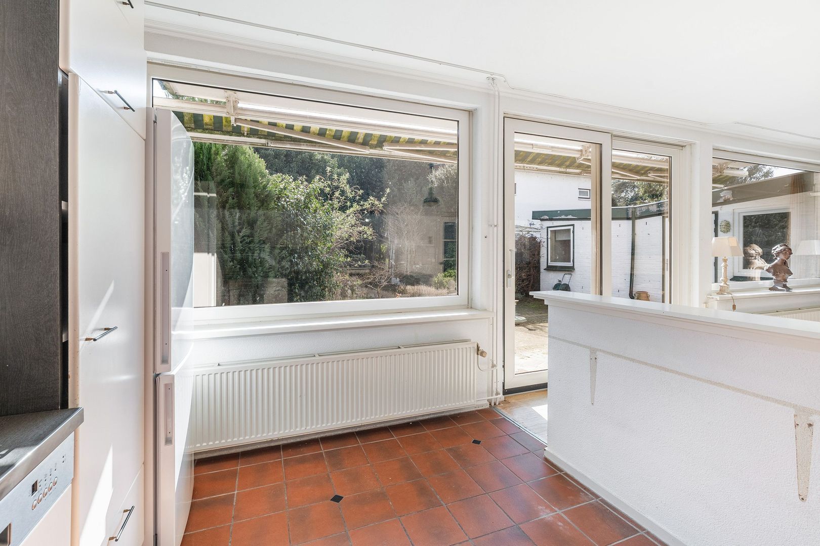 Voortuin, overkapte entree woning, hal met meterkast, toilet met fonteintje en trapkast. Tuingerichte woonkamer over de volle breedte met een open keuken met apparatuur. Grote raampartijen tot aan de grond, schuifpui richting het terras. Doorgang naar de eetkamer (voormalige garage) eveneens met uitzicht en toegang tot de tuin en met doorgang naar de achterkamer met iets lager plafond en 2 vaste kasten. Vanaf het buitenterras loop je zo de royale vrij gelegen achtertuin in met schuur.