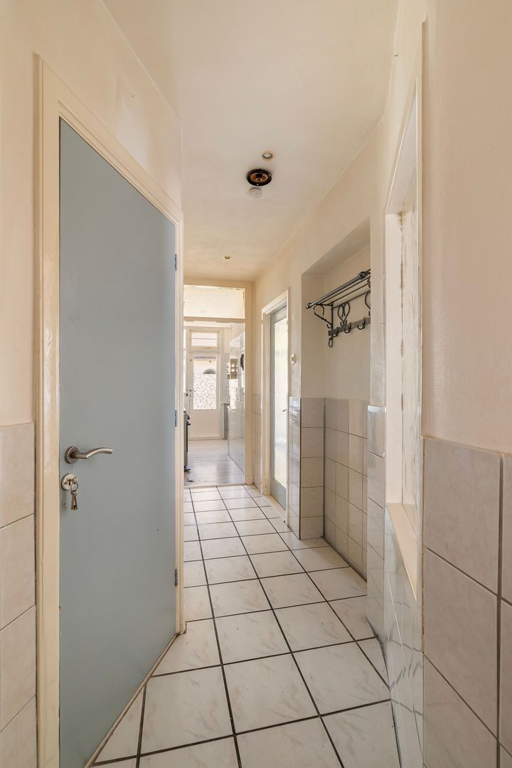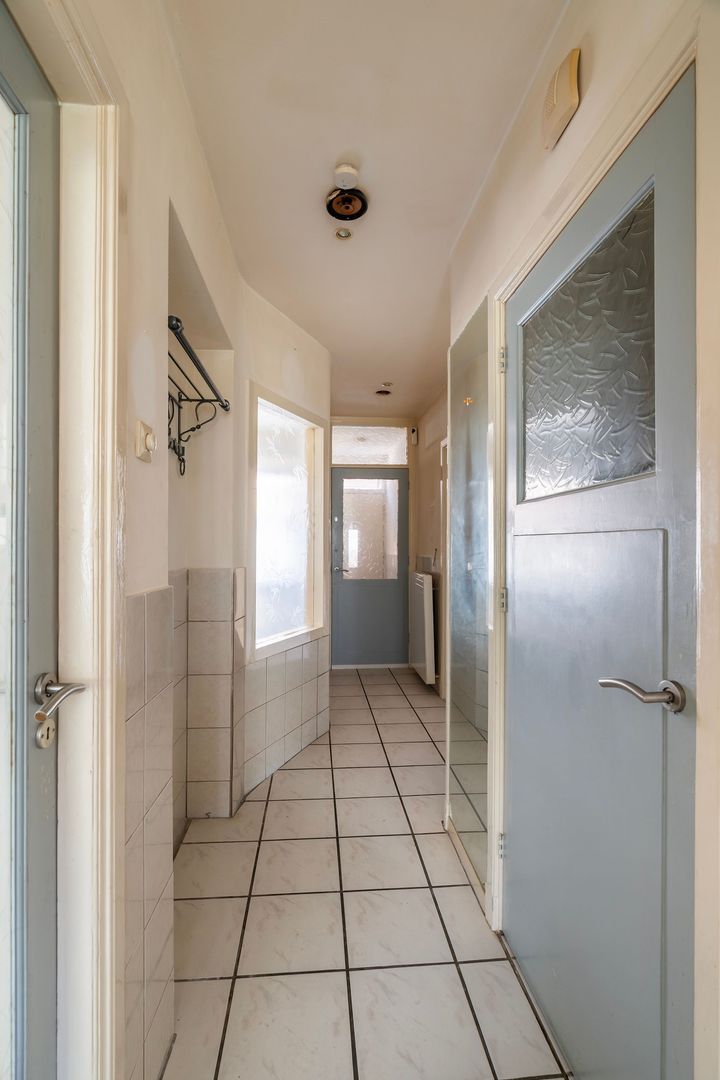 Woningentree; tochtportaal; gang met vaste kast; riante woonkamer met schuifpui naar de achtertuin; nette keuken met gasfornuis, oven, afzuigkap, veel kastruimte en toegang tot de achtertuin; 1e slaapkamer aan de voorzijde; 2e ruime slaapkamer aan de achterzijde met toegang tot de badkamer voorzien van een inloopdouche en wastafel; sepraat toilet;