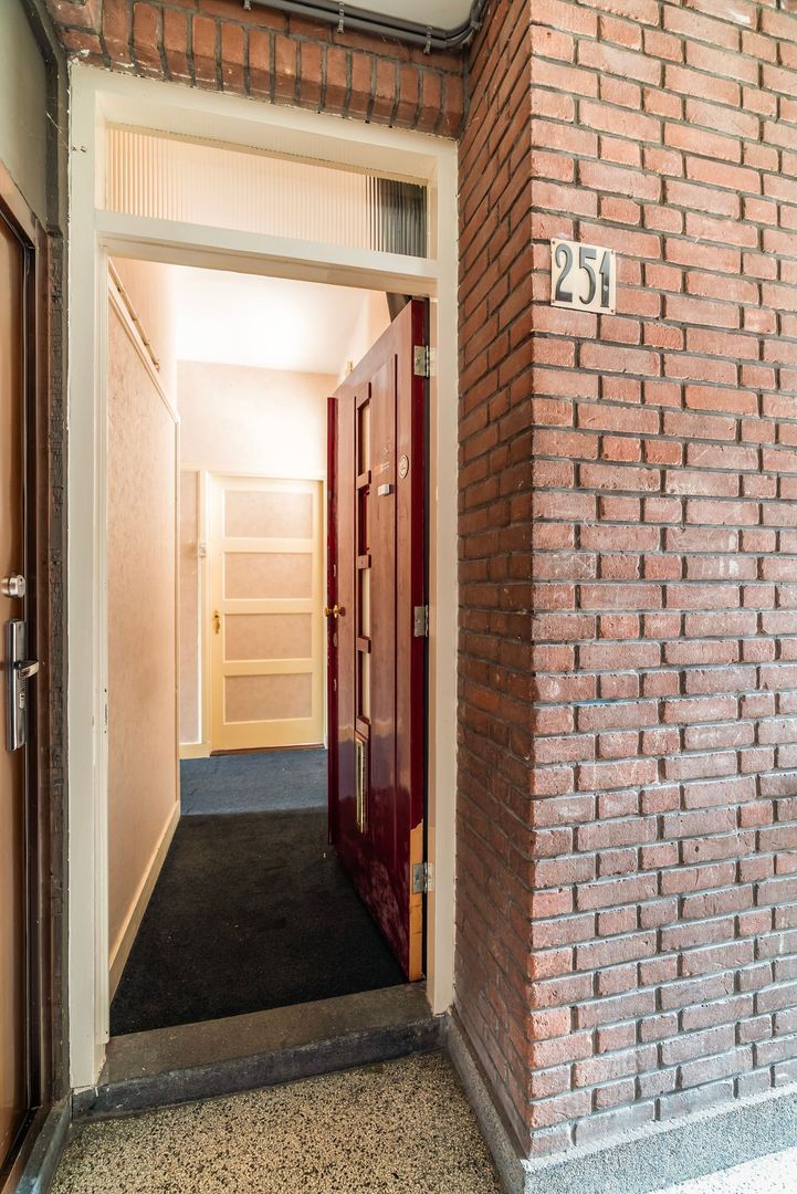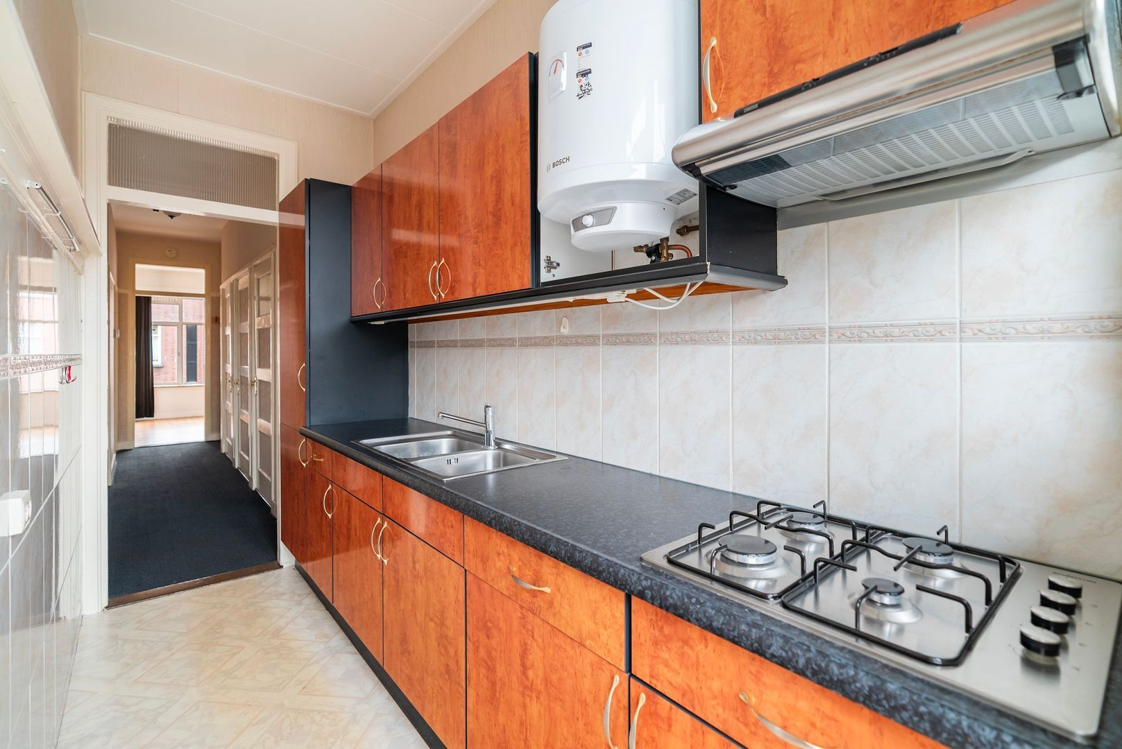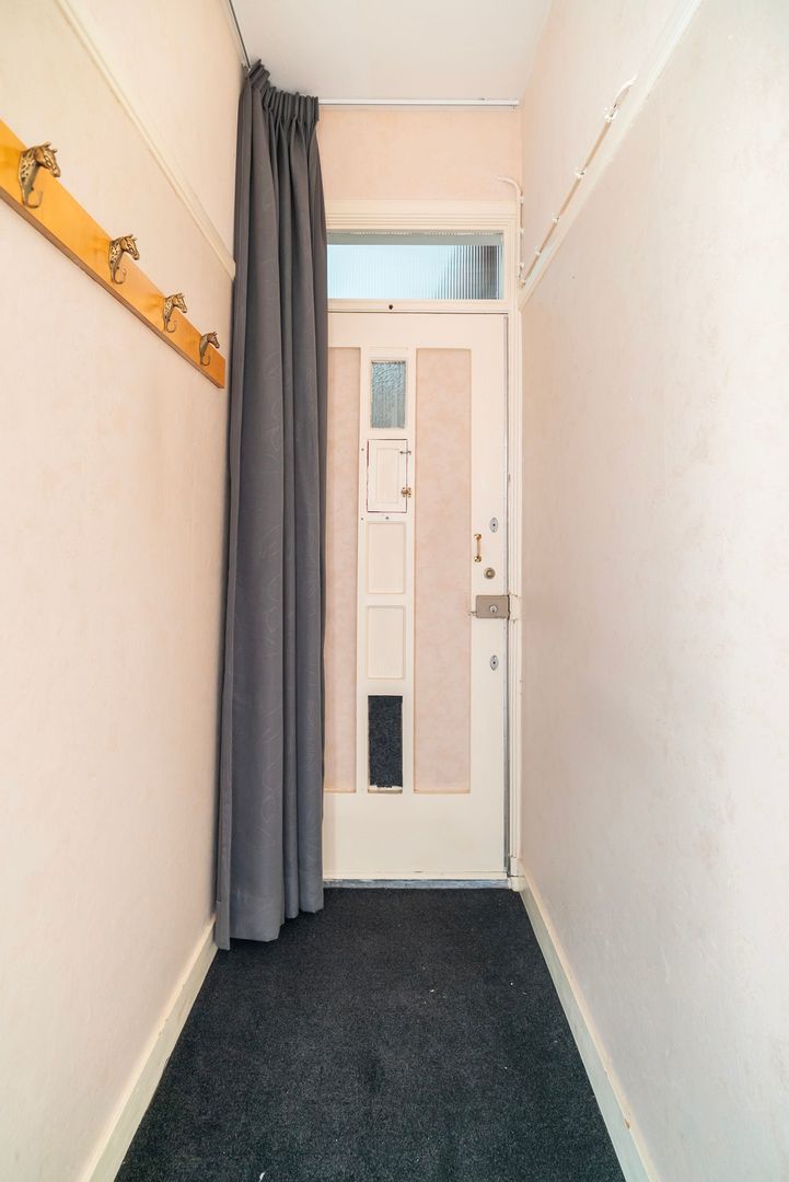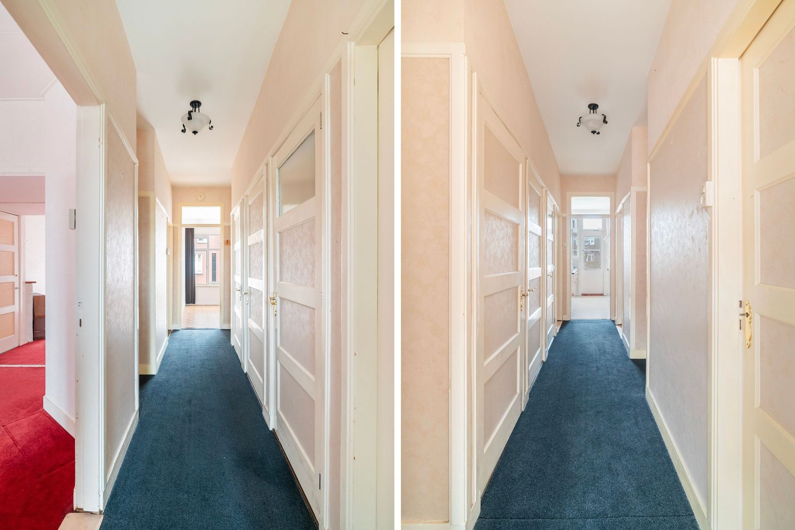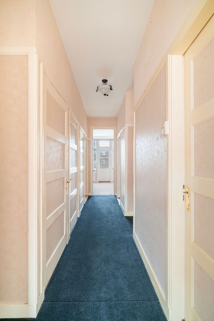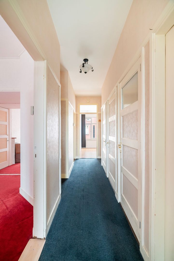 Woningentree via open portiek; gang met meterkast en een vaste kast; eenvoudig toilet; woonkamer en suite met een sfeervolle erker, 4 vaste kasten, schuifseparatie en openslaande deuren naar het balkon; nette keuken met gaskookplaat, afzuigkap, veel kastruimte en toegang tot het balkon; 1e slaapkamer aan de voorzijde; 2e slaapkamer aan de achterzijde met toegang tot het balkon en een doucheruimte; een 3e slaapkamer is te realiseren in de achterkamer van de woonkamer;