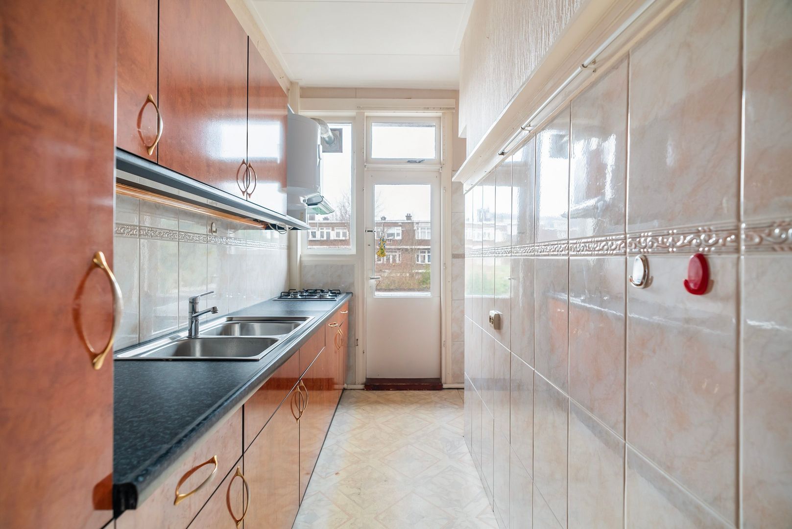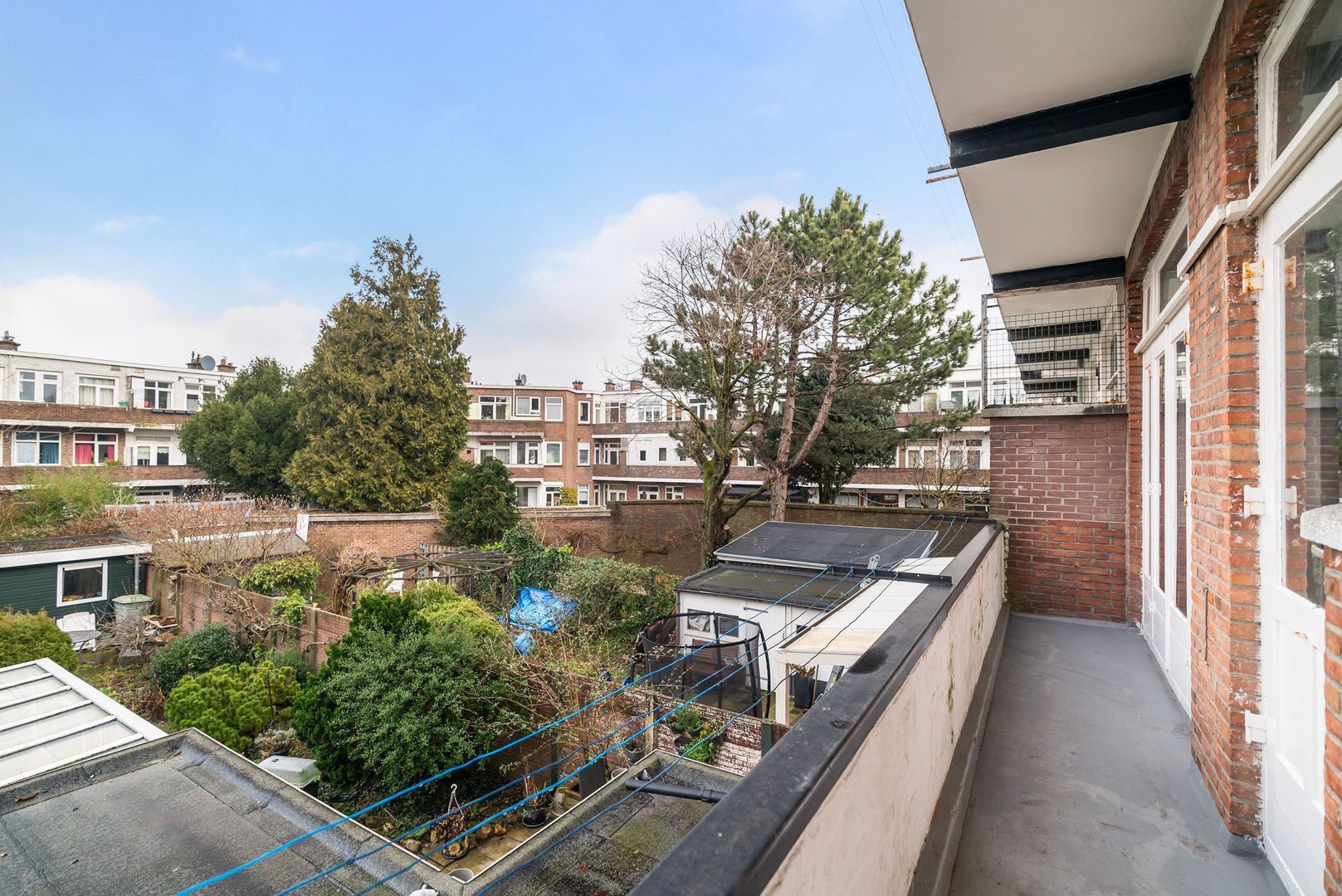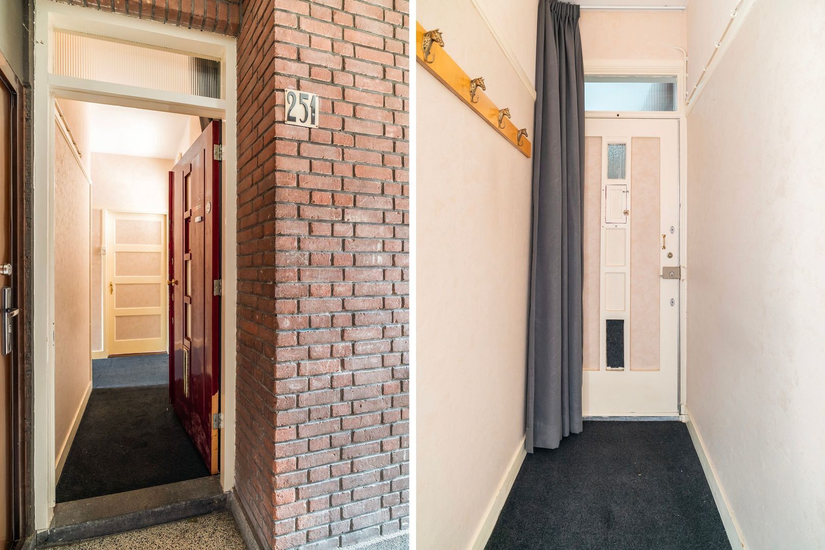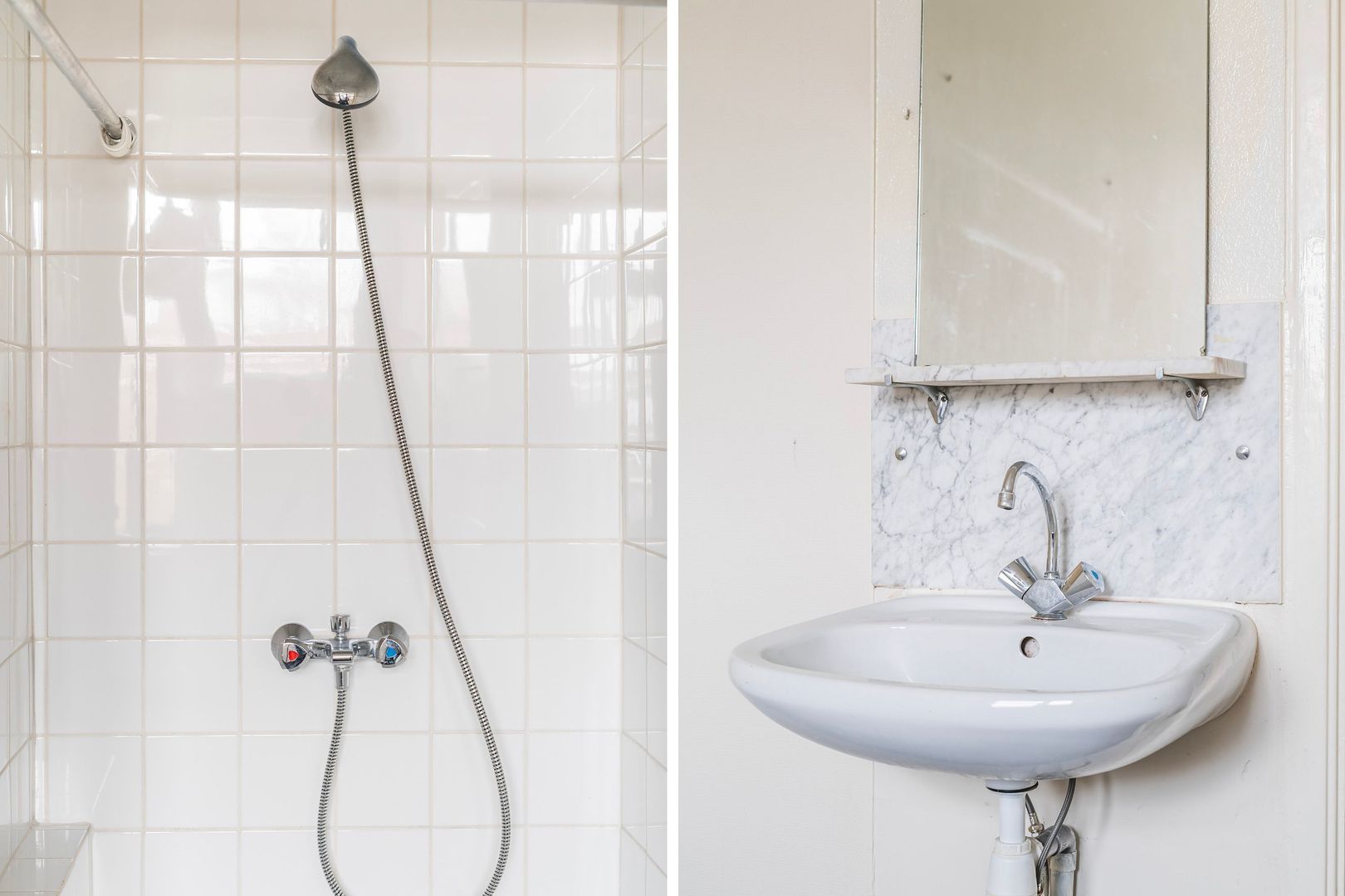 Woningentree via open portiek; gang met meterkast en een vaste kast; eenvoudig toilet; woonkamer en suite met een sfeervolle erker, 4 vaste kasten, schuifseparatie en openslaande deuren naar het balkon; nette keuken met gaskookplaat, afzuigkap, veel kastruimte en toegang tot het balkon; 1e slaapkamer aan de voorzijde; 2e slaapkamer aan de achterzijde met toegang tot het balkon en een doucheruimte; een 3e slaapkamer is te realiseren in de achterkamer van de woonkamer;