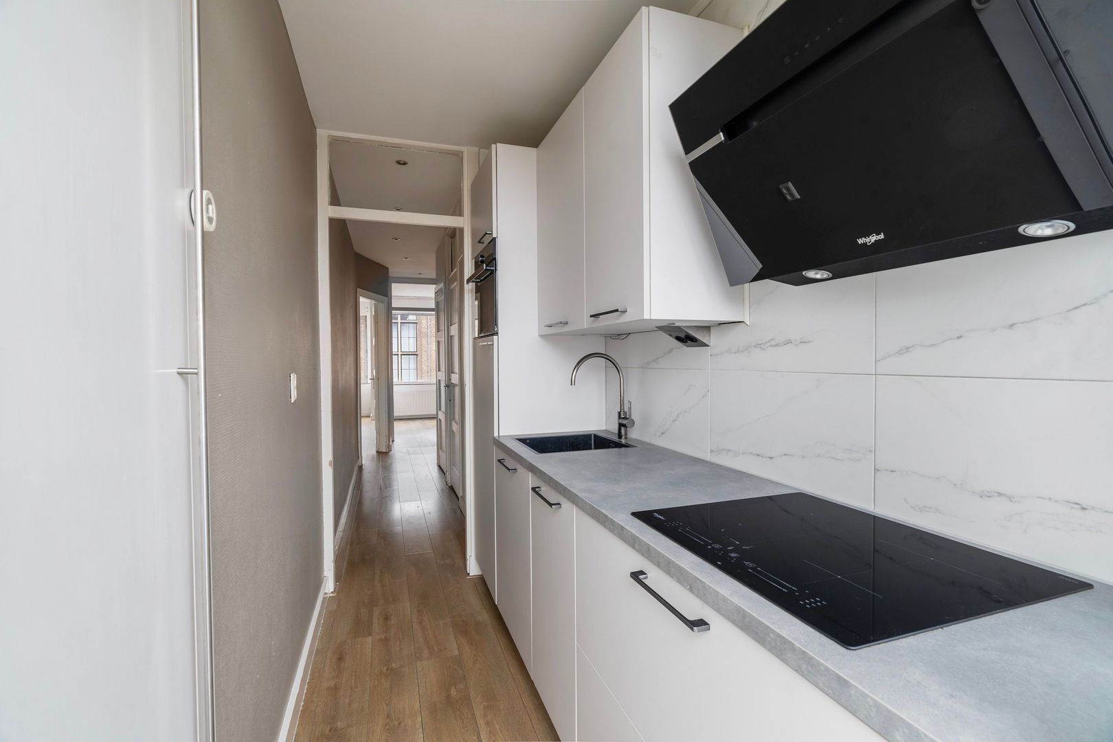 - Moderne keuken met veel kastruimte en voorzien van ingebouwde apparatuur
