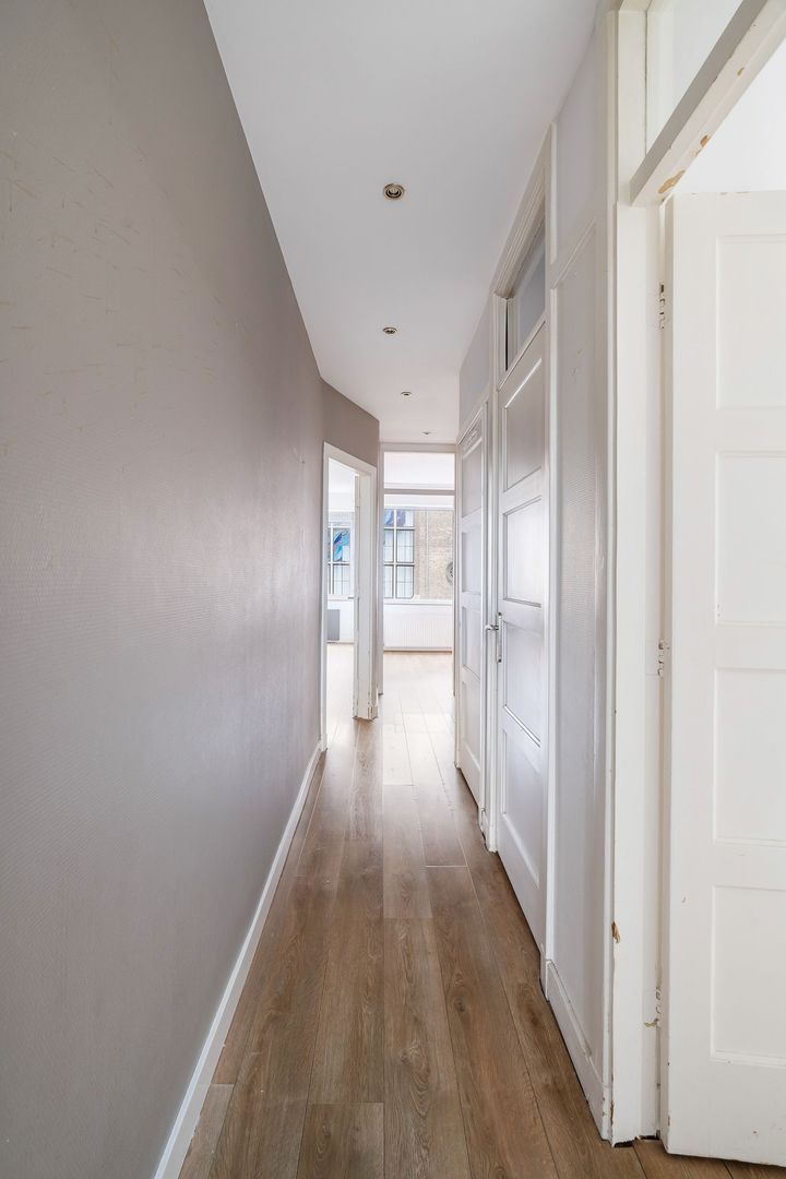 Entree op de 1e etage via open open portiek. royale hal met toilet, meterkast/bergruimte en ruimte voor wasmachine/droger. Royale woon/eetkamer ca. 7.88x3.35 in mooie pasteltinten, compleet vernieuwde keuken met inbouw apparatuur waaronder inductiekookplaat, oven, afzuigkap, vaatwasser en koel/vriescombinatie. Voorzijkamer ca. 2.91x3.06 met een ruime raampartij; achterzijkamer ca. 2.97x3.95 met openslaande deuren naar het balkon en toegang tot de volledig betegelde moderne badkamer met douche en wastafelmeubel. Hoofdslaapkamer ca. 4.47x2.98 met openslaande deuren naar het balkon over de volle breedte met balkonkast ca. 7x.095 die op het zuidoosten is georiënteerd.