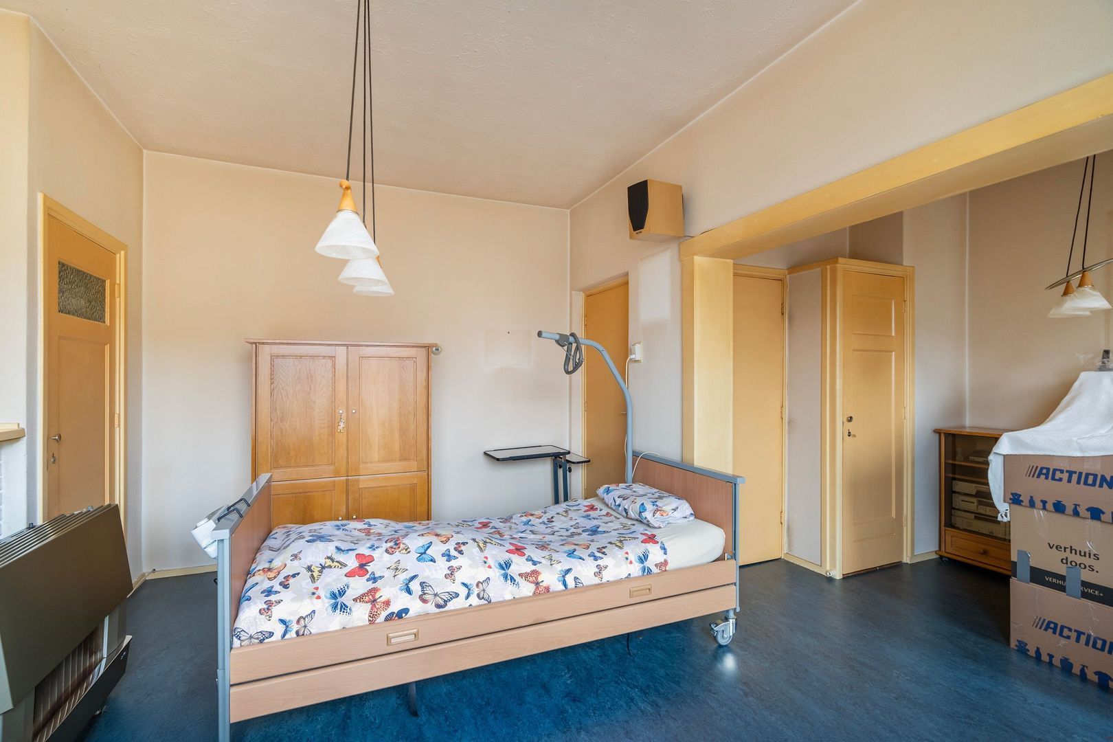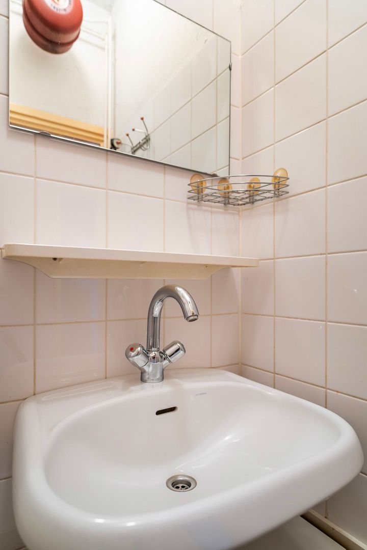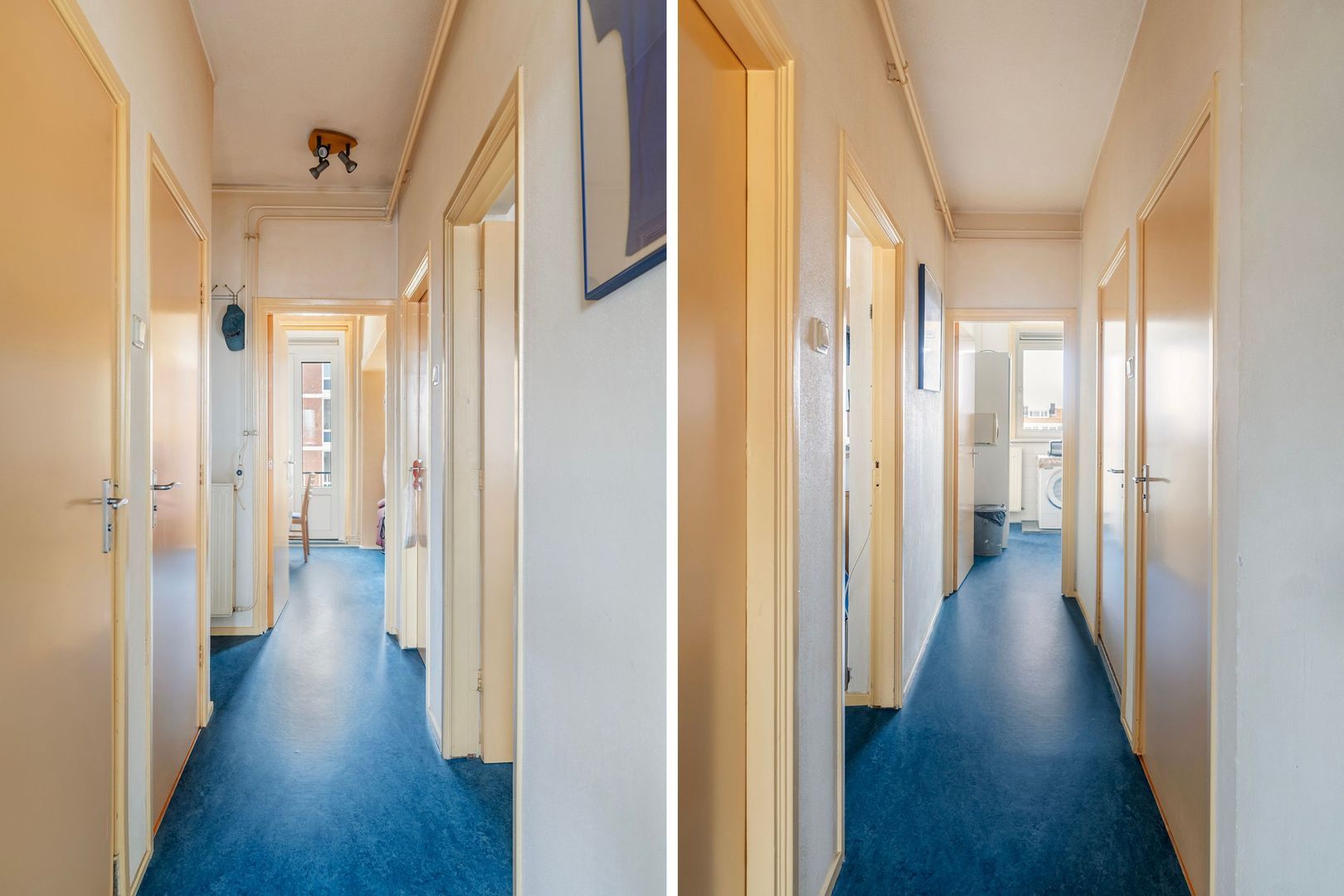 Afgesloten centrale entree met trappenhuis naar de berging en woningentree op de 2e etage; hal met meterkast; woonkamer met een vaste kast en bijgetrokken voorzijkamer met vaste kast en openslaande deuren tot voorbalkon; eenvoudige keuken met kookplaat, afzuigkap, koelkast, magnetron en toegang tot het achterbalkon; grote slaapkamer met schuifpui naar het balkon; eenvoudige badkamer met douche en wastafel;
