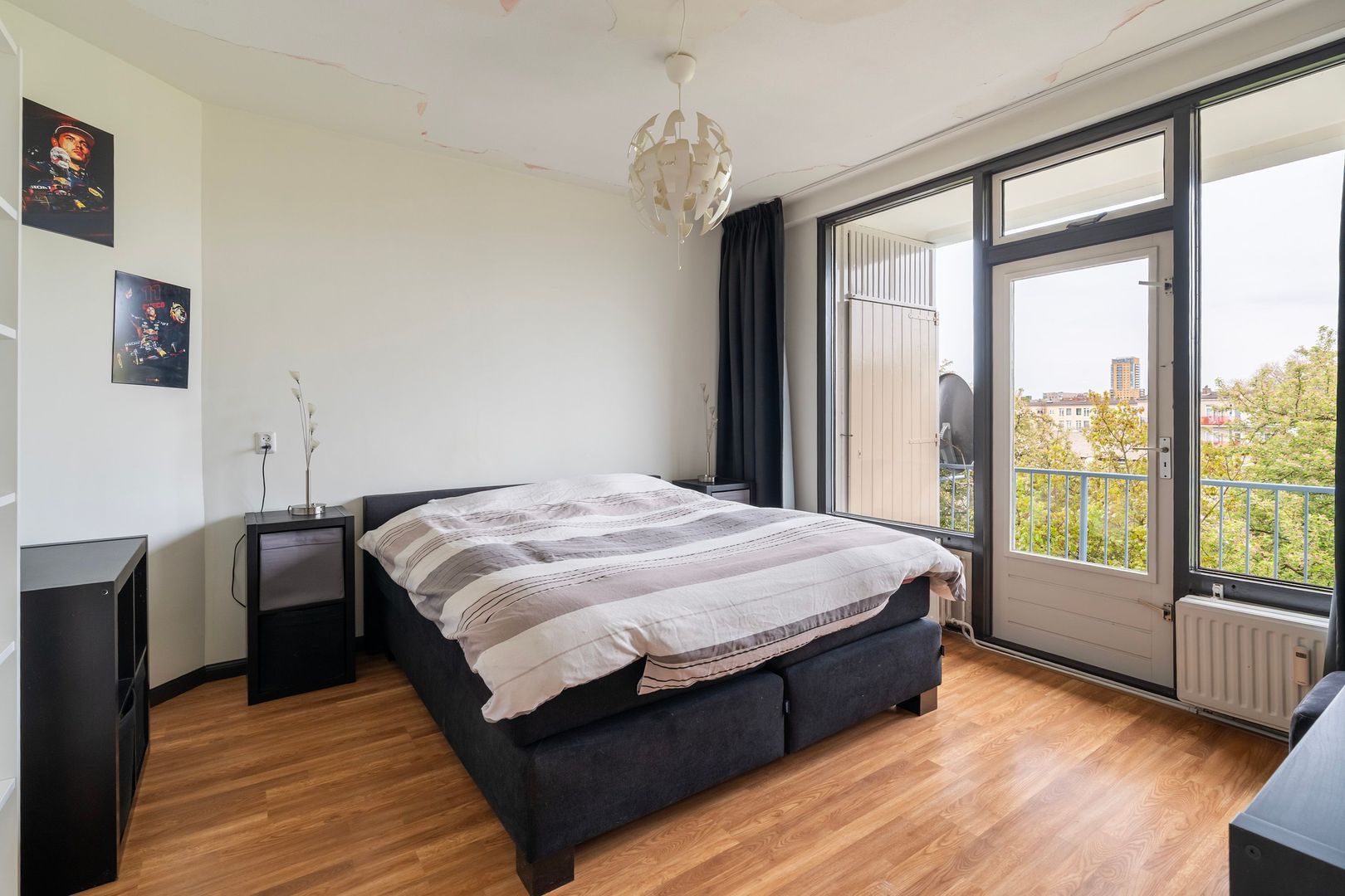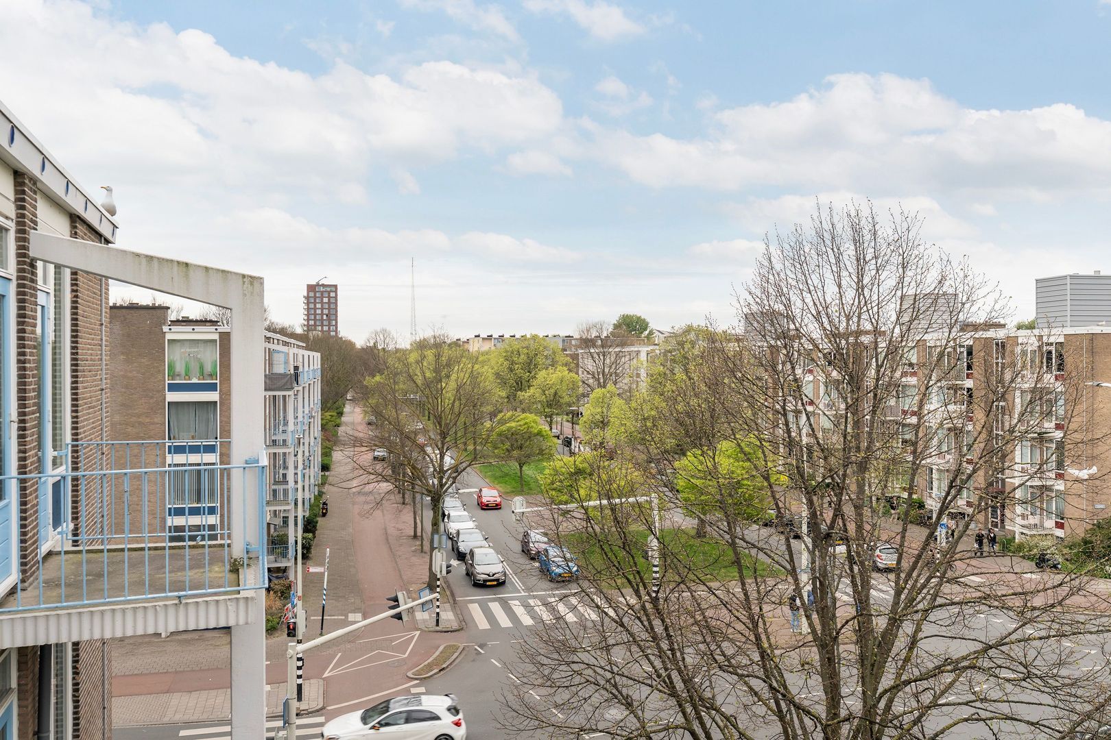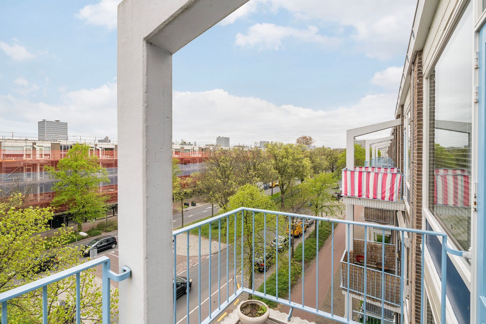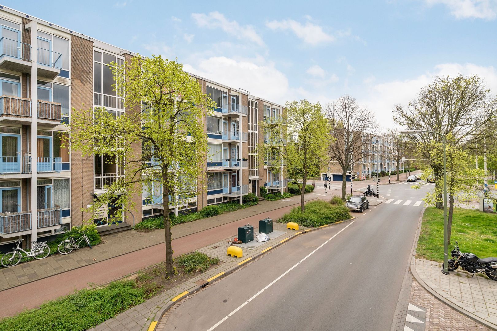 Keurig verzorgd 3-kamer appartement op de 4e (top) etage met 2 balkons, 2 ruime slaapkamers en een eigen fietsenberging.