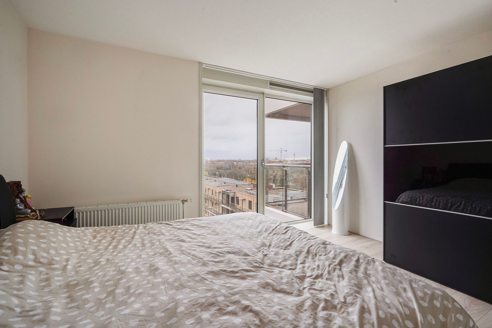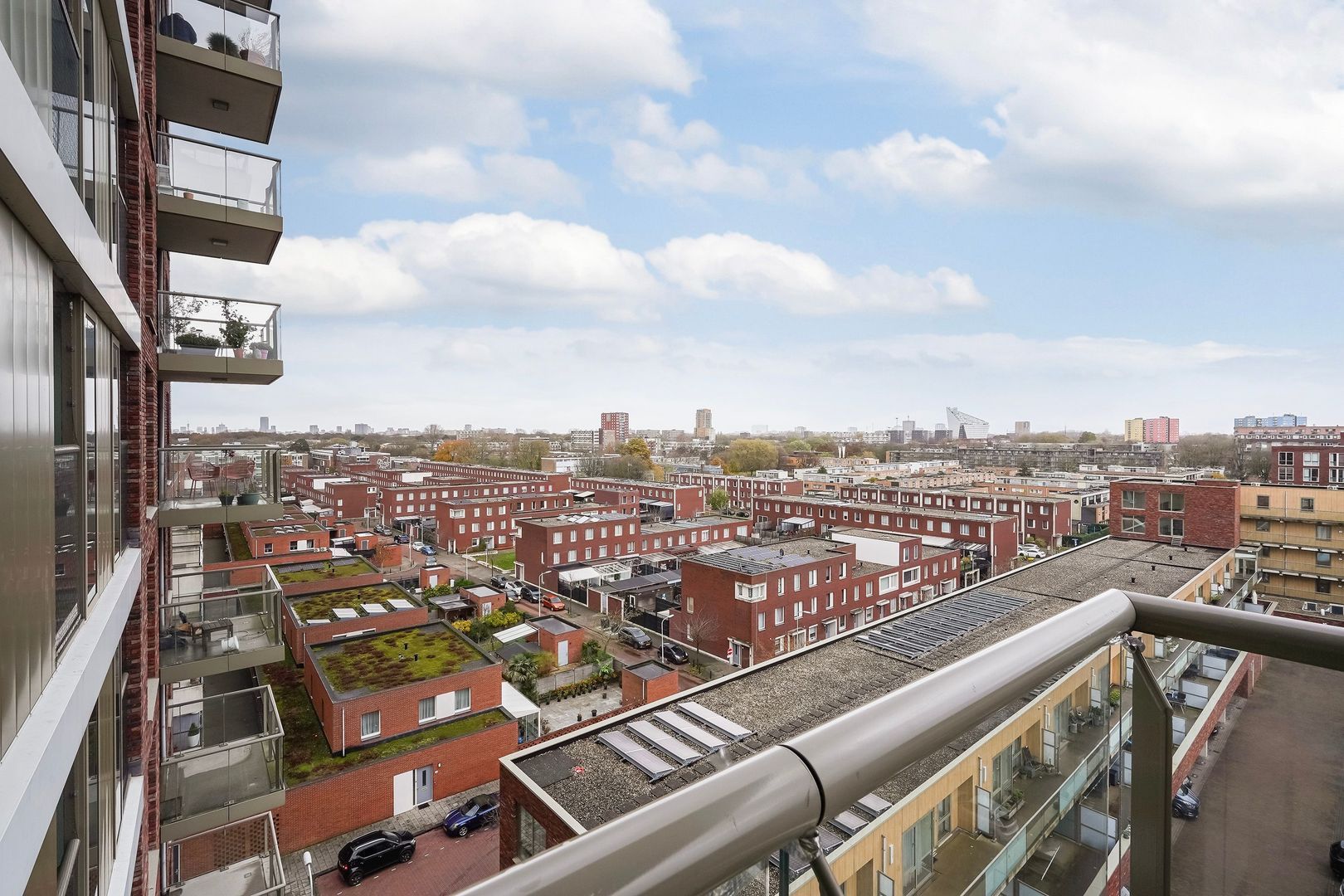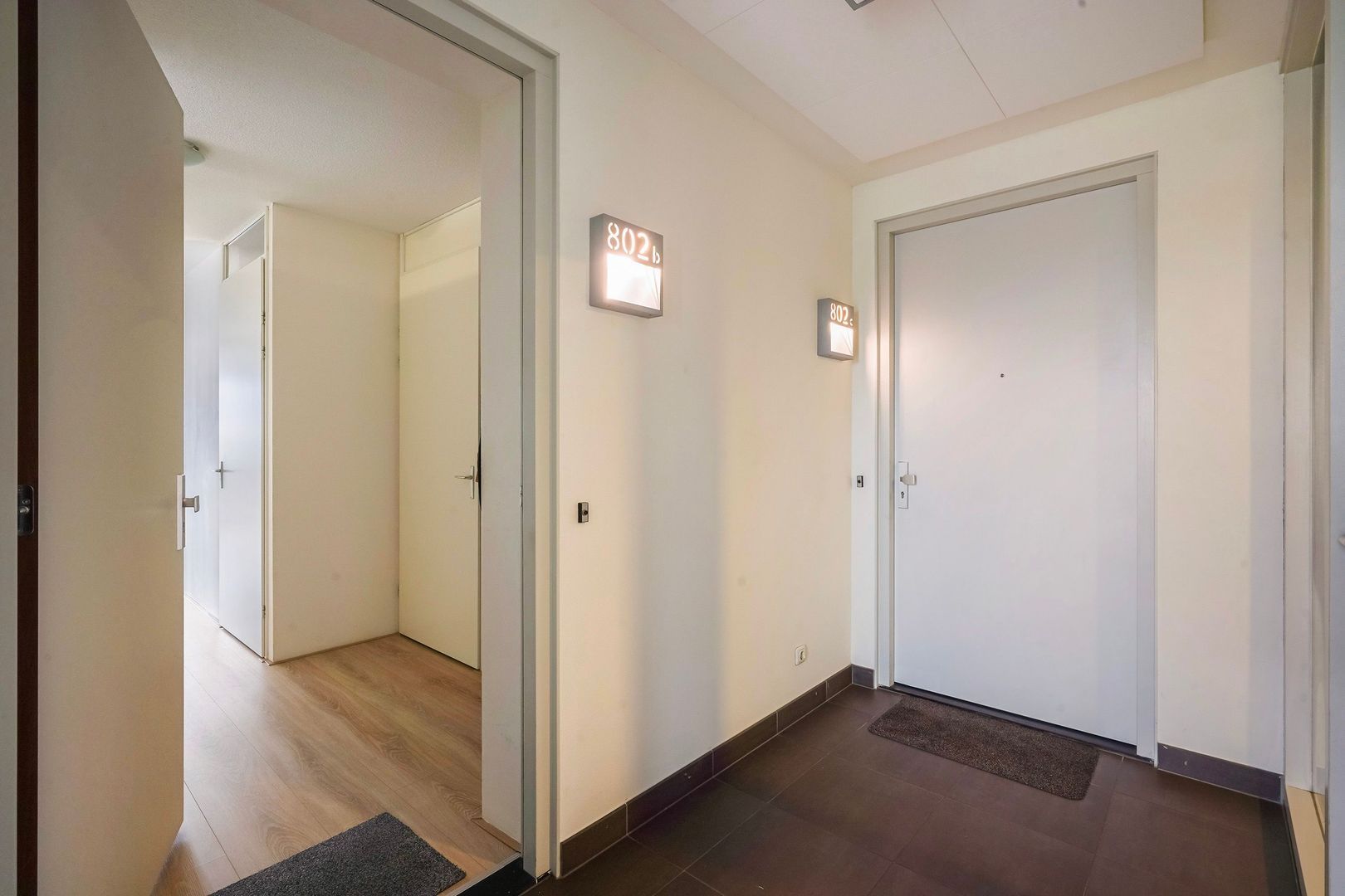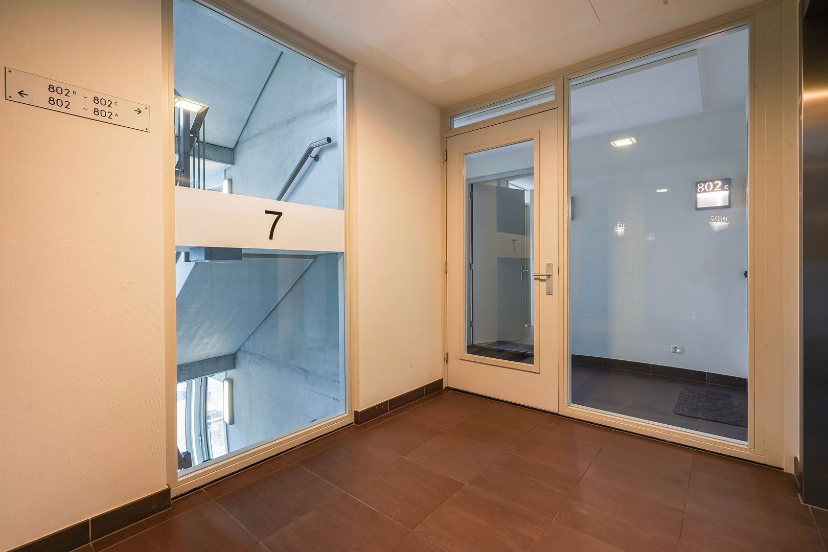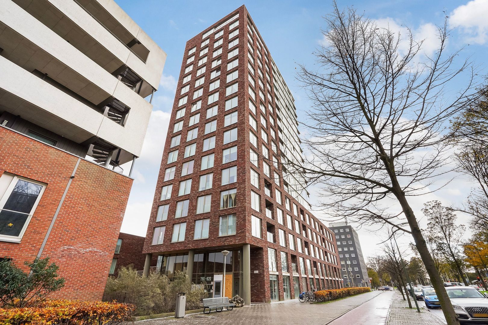 Afgesloten centrale entree met toegang tot de fietsenberging, trappenhuis en lift naar de woningentree op de 7e etage; hal met een grote bergkast en de meterkast; riante woonkamer met veel lichtinval door de hoekligging en toegang tot het royale balkon; moderne open keuken voorzien van een inductiekookplaat, afzuigkap, combimagnetron/-oven, koel-vriescombinatie en een vaatwasser; 1e riante slaapkamer aan de achterzijde; 2e slaapkamer aan de achterzijde met toegang tot het balkon; keurige ruime badkamer met een inloopdouche, wastafel en een inloopdouche; keurig separaat toilet;