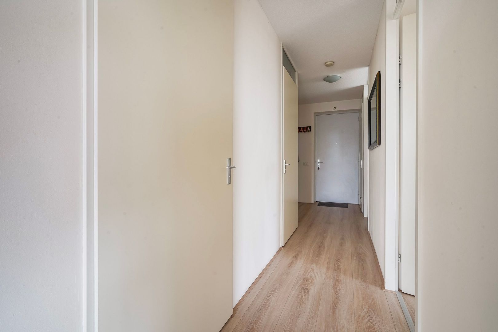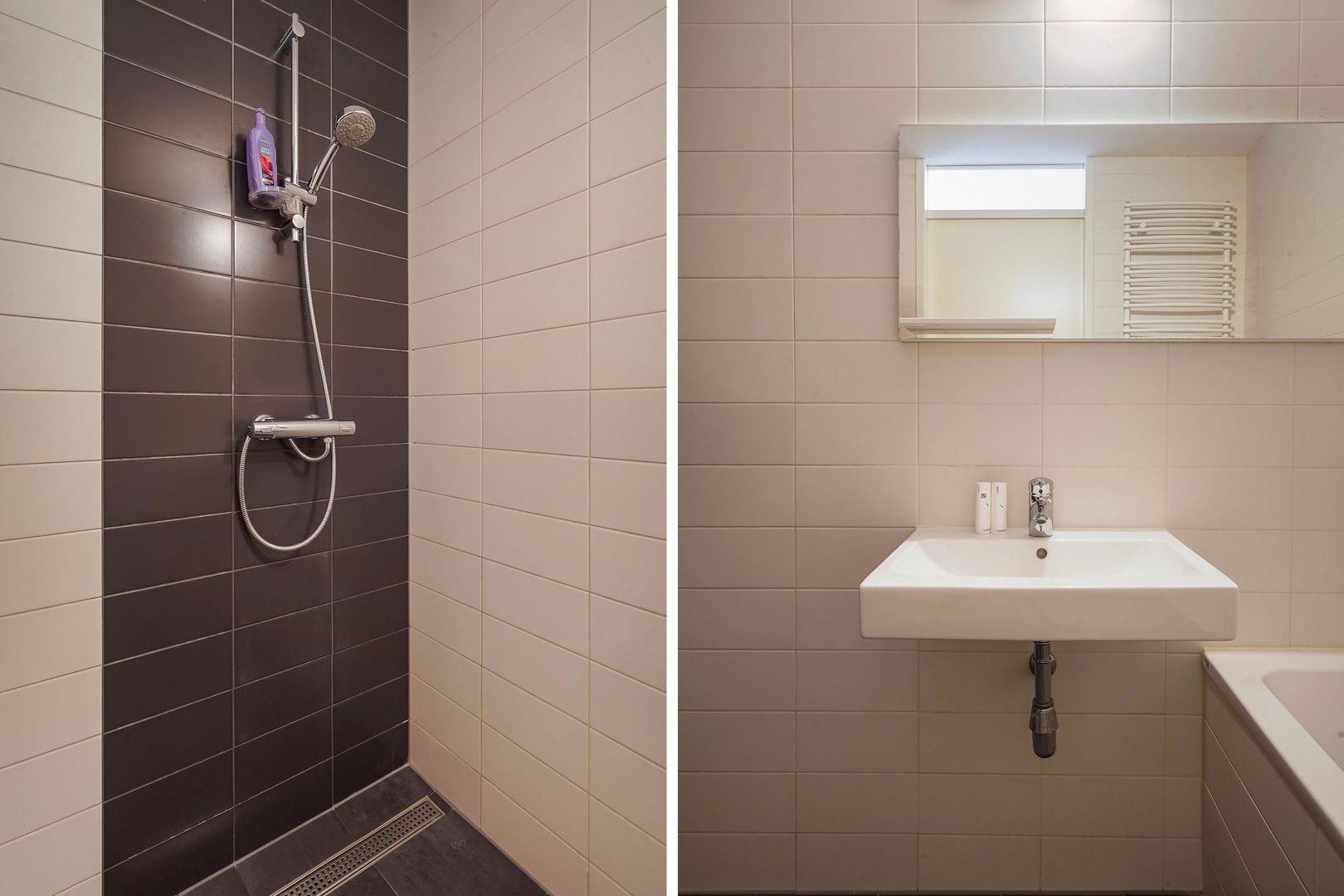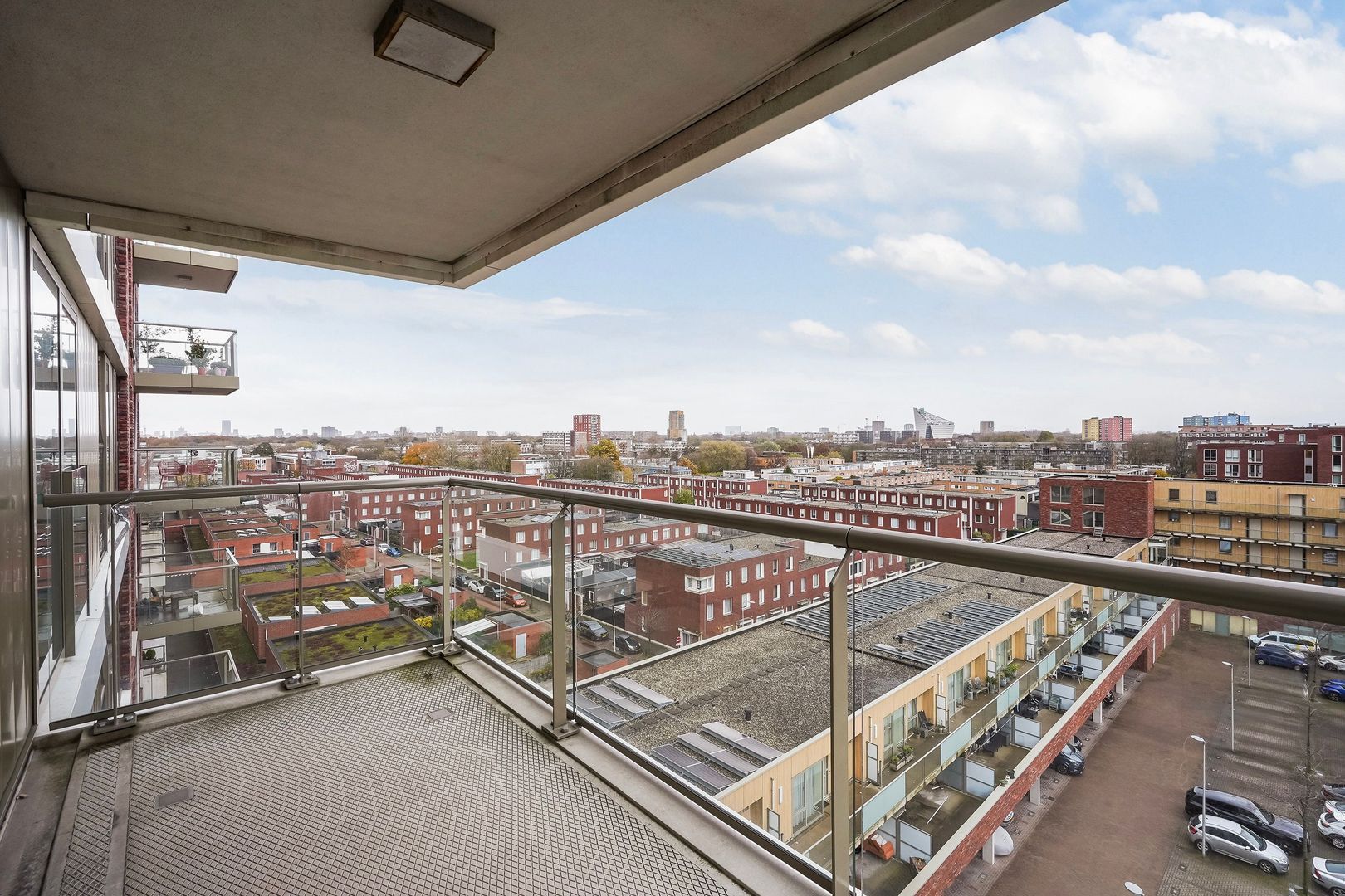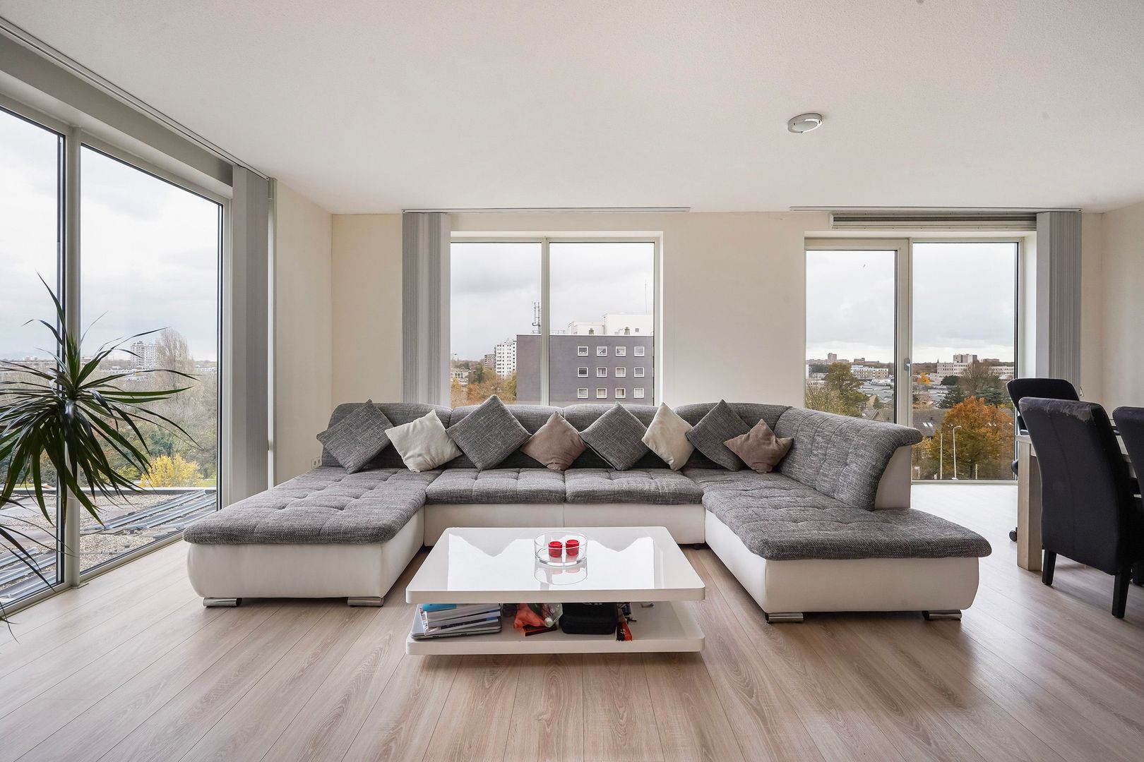 Afgesloten centrale entree met toegang tot de fietsenberging, trappenhuis en lift naar de woningentree op de 7e etage; hal met een grote bergkast en de meterkast; riante woonkamer met veel lichtinval door de hoekligging en toegang tot het royale balkon; moderne open keuken voorzien van een inductiekookplaat, afzuigkap, combimagnetron/-oven, koel-vriescombinatie en een vaatwasser; 1e riante slaapkamer aan de achterzijde; 2e slaapkamer aan de achterzijde met toegang tot het balkon; keurige ruime badkamer met een inloopdouche, wastafel en een inloopdouche; keurig separaat toilet;