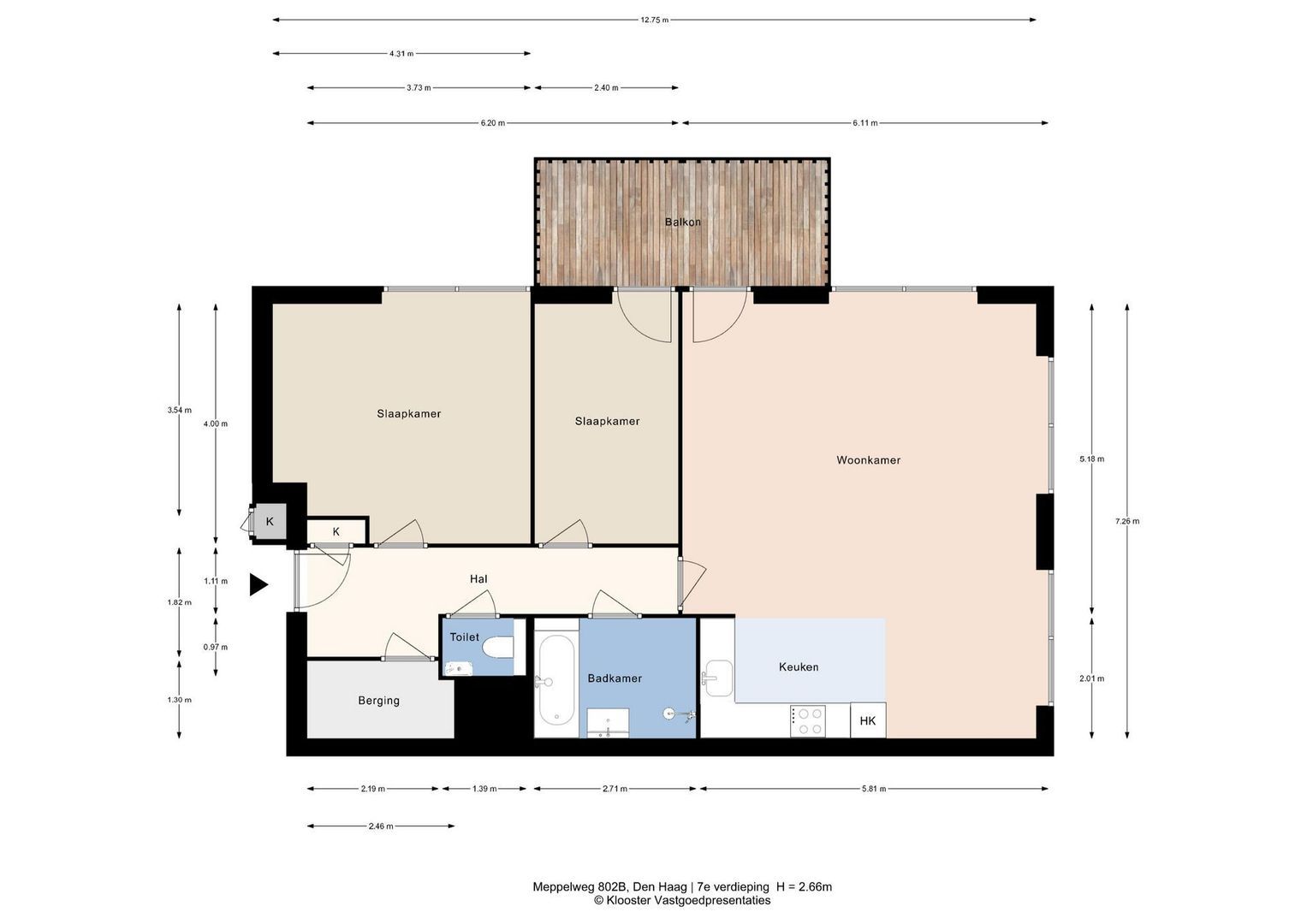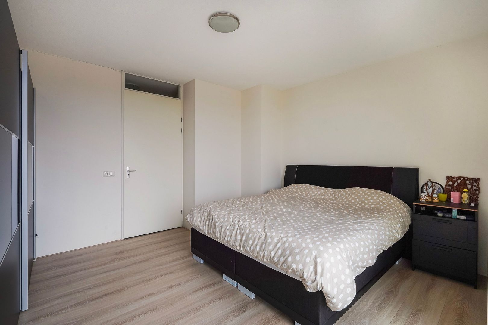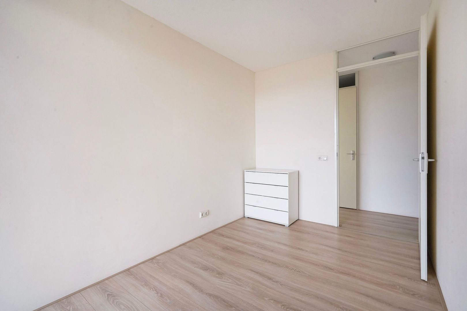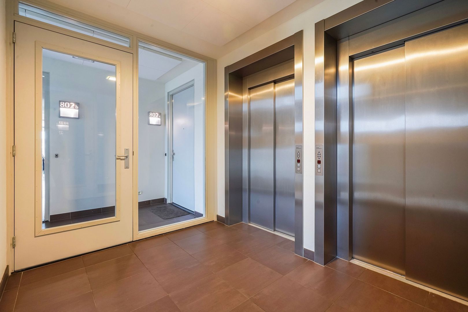Afgesloten centrale entree met toegang tot de fietsenberging, trappenhuis en lift naar de woningentree op de 7e etage; hal met een grote bergkast en de meterkast; riante woonkamer met veel lichtinval door de hoekligging en toegang tot het royale balkon; moderne open keuken voorzien van een inductiekookplaat, afzuigkap, combimagnetron/-oven, koel-vriescombinatie en een vaatwasser; 1e riante slaapkamer aan de achterzijde; 2e slaapkamer aan de achterzijde met toegang tot het balkon; keurige ruime badkamer met een inloopdouche, wastafel en een inloopdouche; keurig separaat toilet;