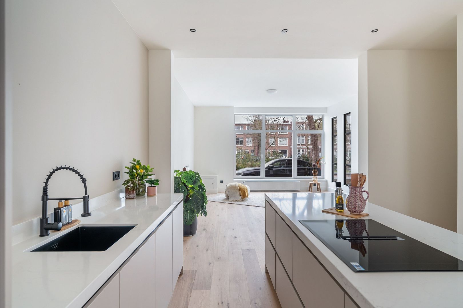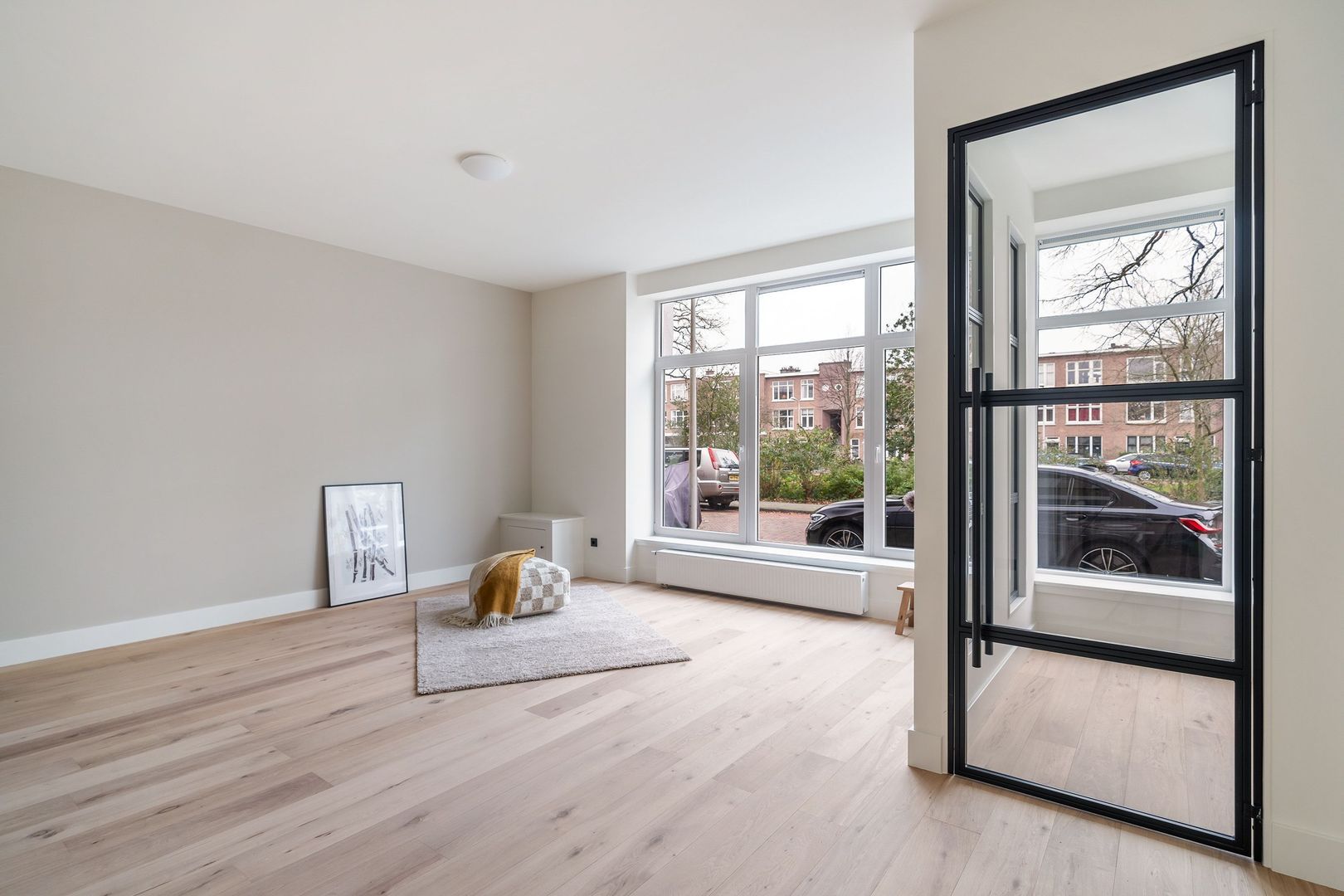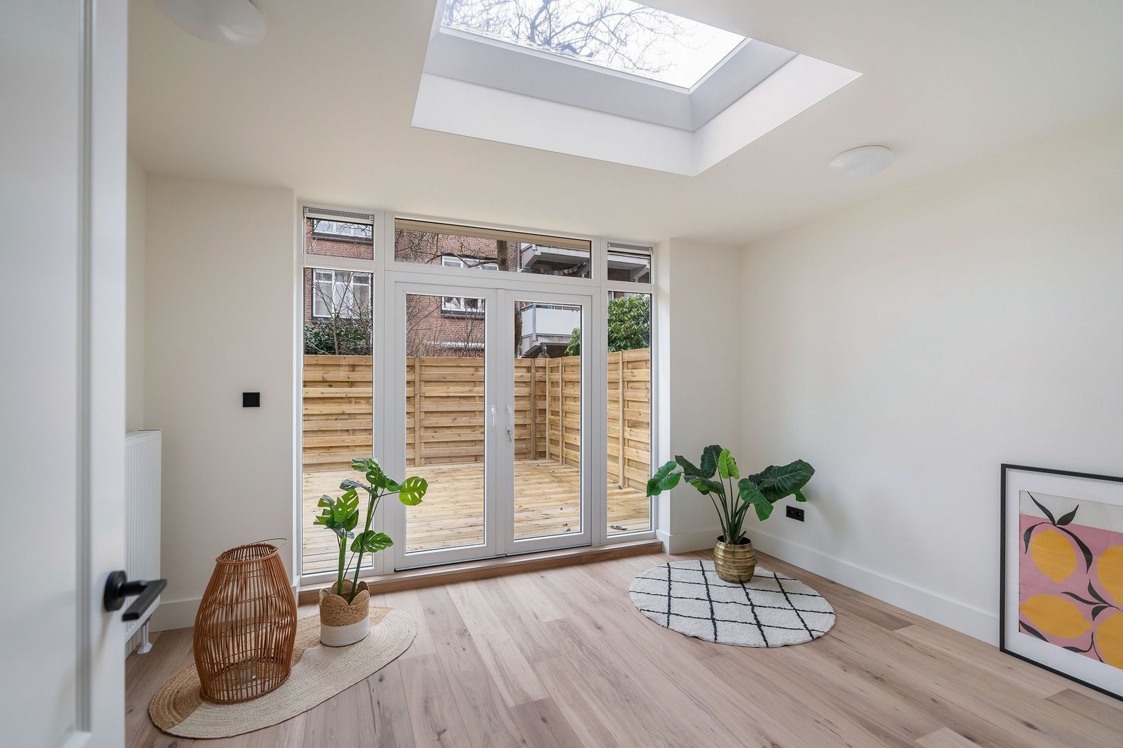 Very spacious 4-room (3-bedroom) double ground floor apartment with spacious backyard on the west. This unique apartment is located in the popular Heesterbuurt in the vicinity of shops, restaurants and cozy shopping streets such as Fahrenheitstraat and Weimarstraat. Because it originally concerns two separate apartments, this fantastic object offers many possibilities. retained in the current situation or brought back to two ground floor dwellings. Despite the fact that it is quiet living here, places such as the beach and center are easily accessible with an average cycling distance of 10 minutes, ideal!