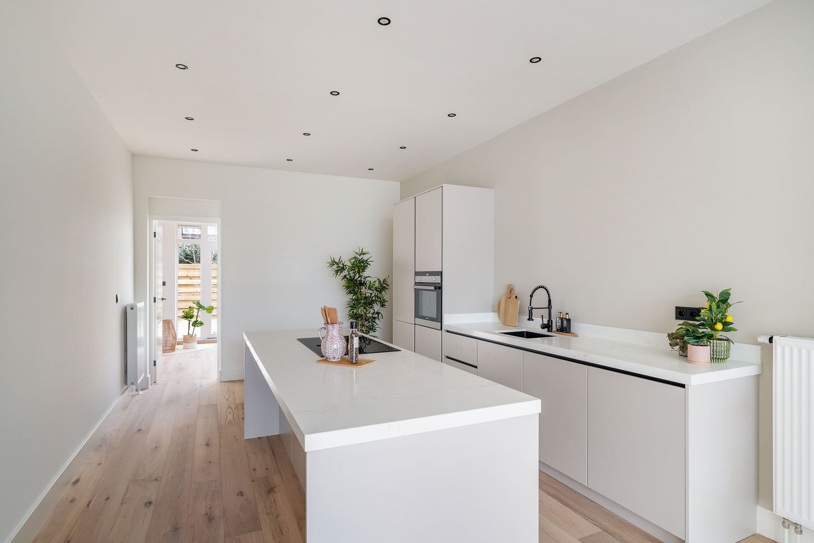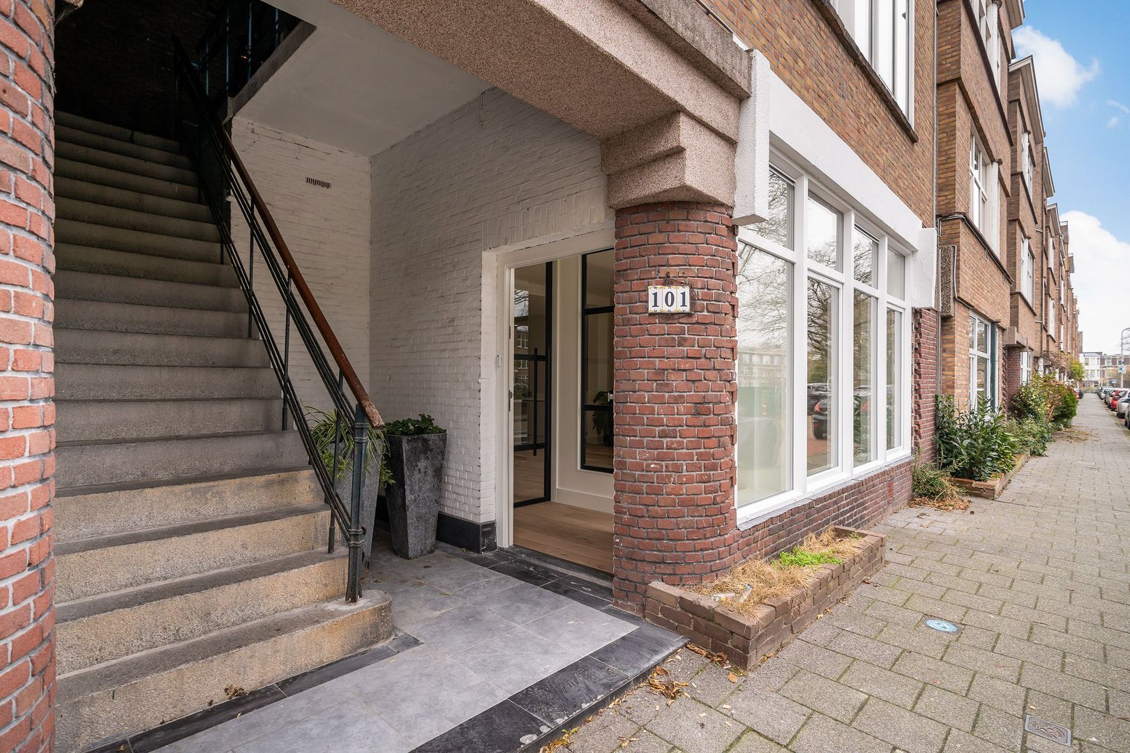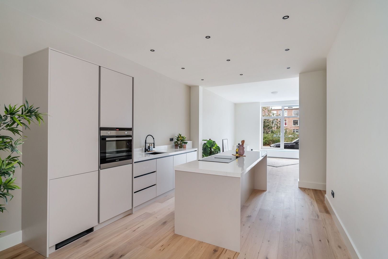 Very spacious 4-room (3-bedroom) double ground floor apartment with spacious backyard on the west. This unique apartment is located in the popular Heesterbuurt in the vicinity of shops, restaurants and cozy shopping streets such as Fahrenheitstraat and Weimarstraat. Because it originally concerns two separate apartments, this fantastic object offers many possibilities. retained in the current situation or brought back to two ground floor dwellings. Despite the fact that it is quiet living here, places such as the beach and center are easily accessible with an average cycling distance of 10 minutes, ideal!