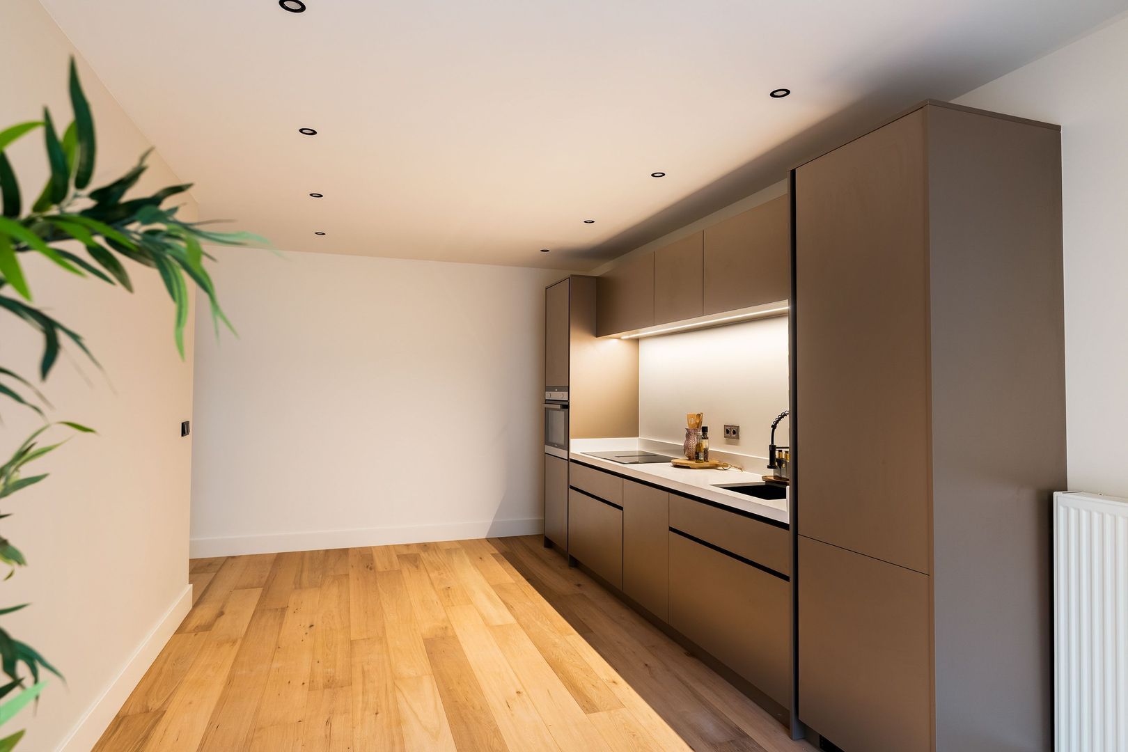 Entree op begane grond, hal, toilet, toegang naar riante woonkeuken voorzien van inbouwapparatuur, ruime woon/eetkamer, slaapkamer/werkkamer, via de woonkamer toegang tot tweede slaapkamer aan de achterzijde, badkamer voorzien van moderne regendouche, hal, toilet, deur naar waskamer/bijkeuken, derde en grootste slaapkamer aan de voorzijde.