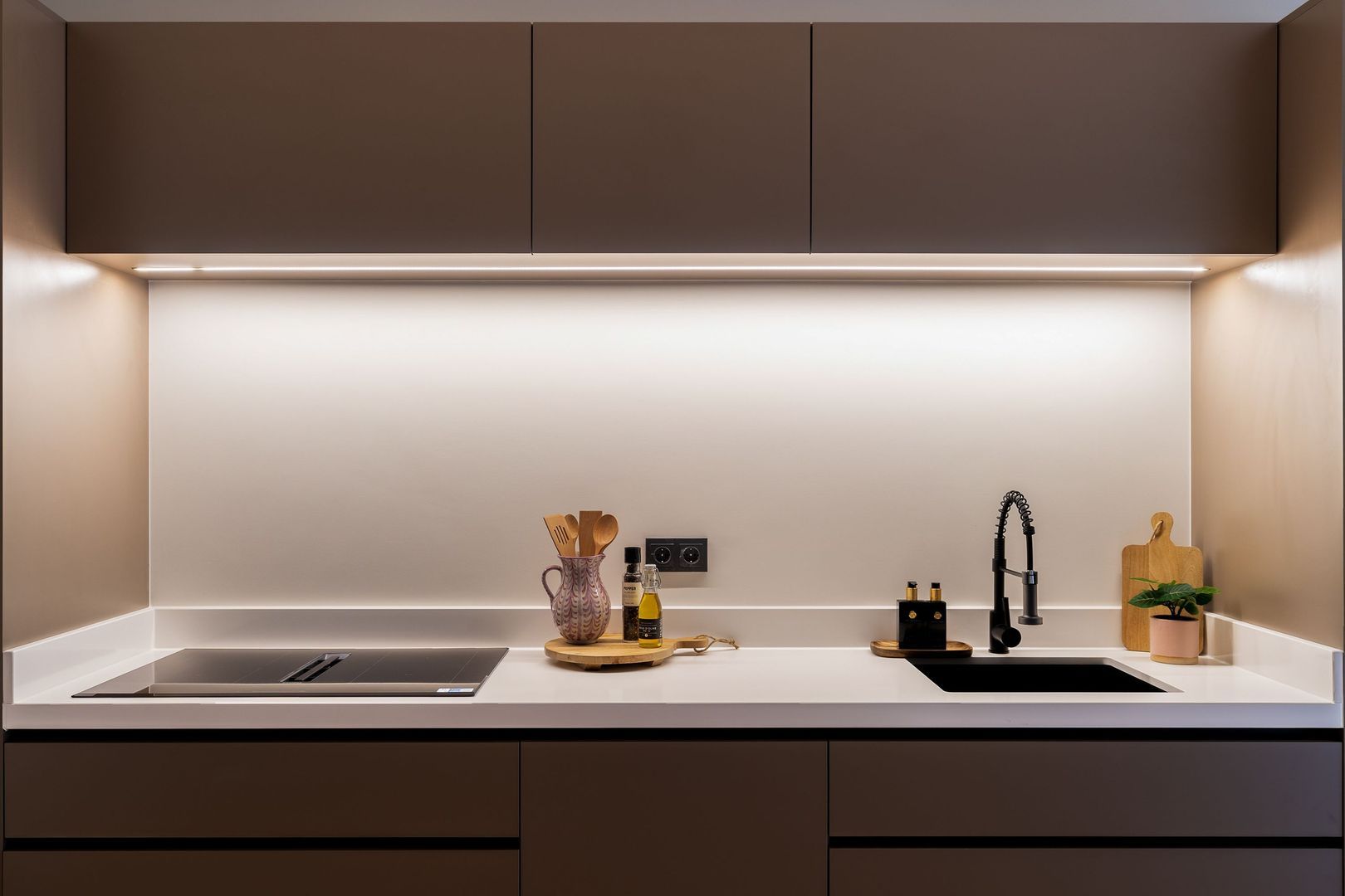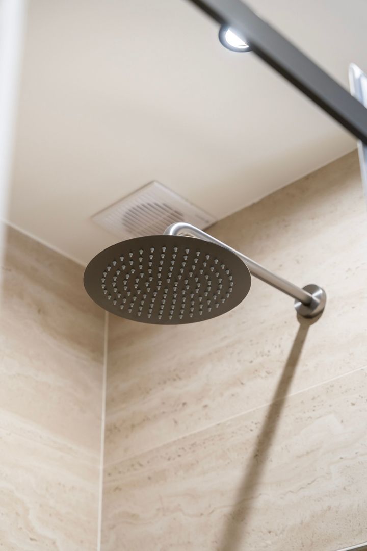 Entrance on the ground floor, hall, toilet, door to spacious kitchen with appliances, spacious living / dining room, bedroom / office, through the living room access to the second bedroom at the rear, bathroom with modern rain shower, hall, toilet, door to laundry room/utility room, third and largest bedroom at the front.