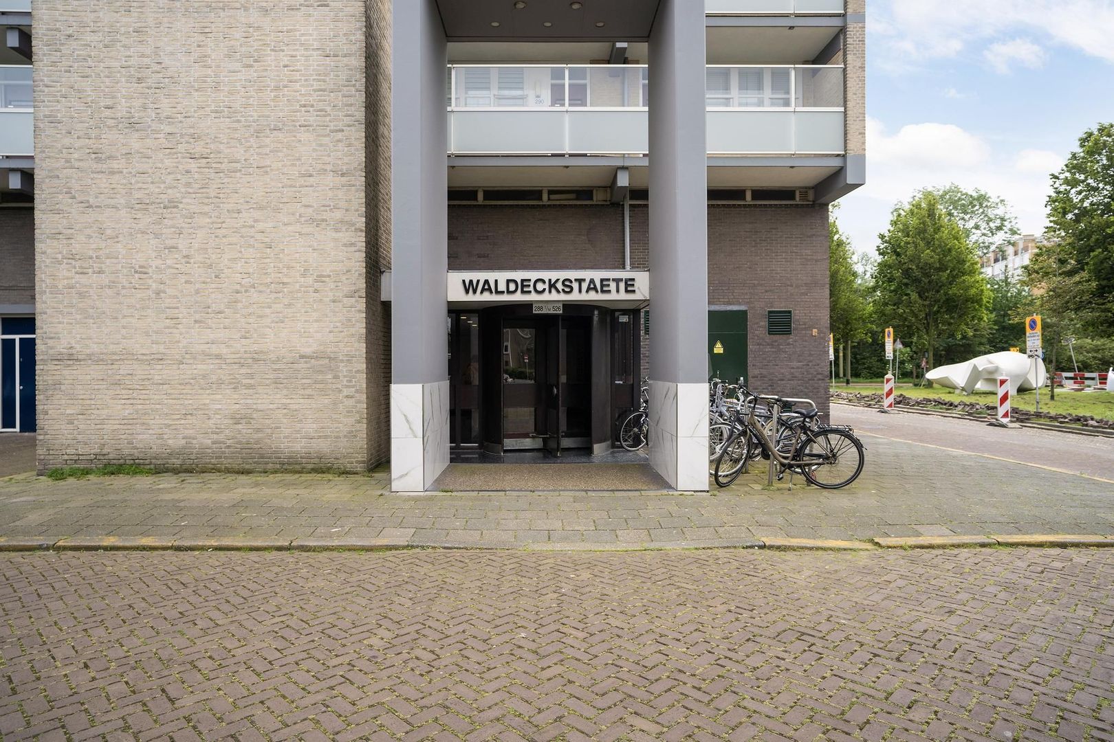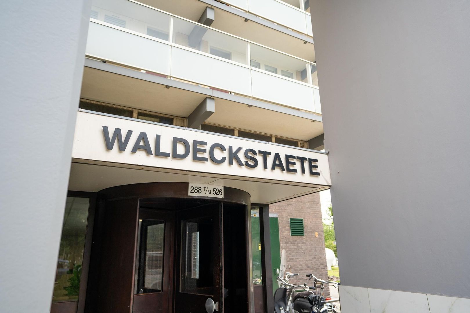 Waldeck. Recht tegenover winkelcentrum Waldeck gelegen uitstekend onderhouden ruim 2 kamer appartement (52m²) op de 3e woonlaag met lift, zonnig gelegen balkon, eigen berging op de begane grond en parkeergelegenheid op eigen terrein. Deze fraaie woning kan zonder noodzakelijke kosten worden betrokken en is o.a. voorzien van een riante woonkamer, moderne keuken met inbouwapparatuur, grote slaapkamer en modern sanitair. Daarnaast is de woning grotendeels voorzien kozijnen met dubbel glas, actieve Vereniging van Eigenaren en gelegen op eigen grond.