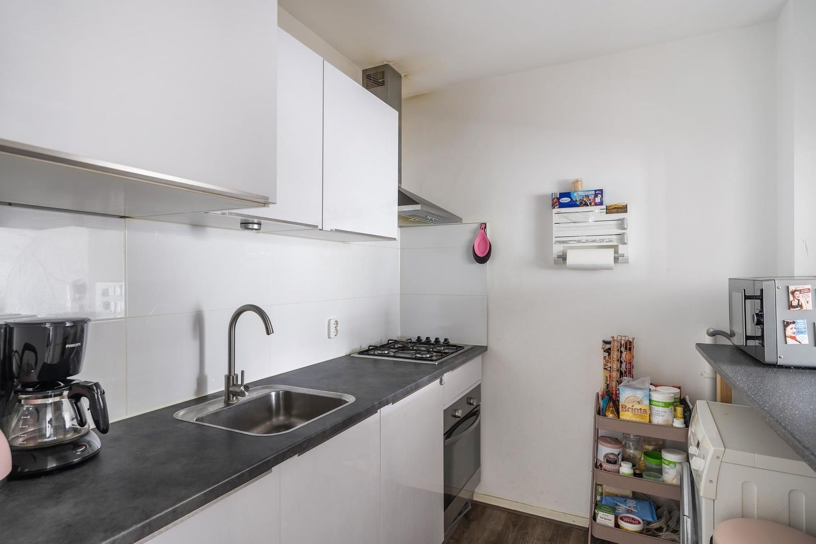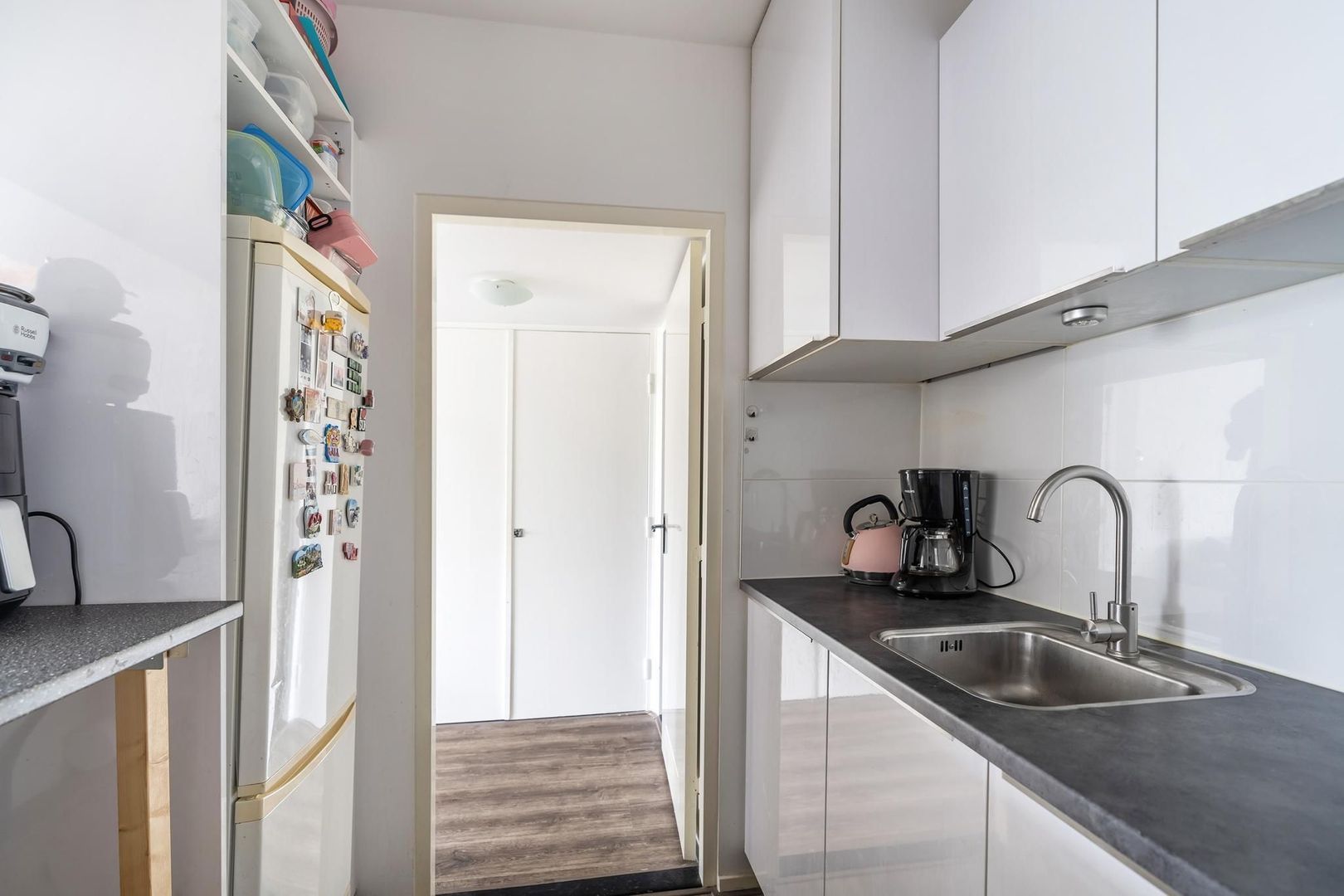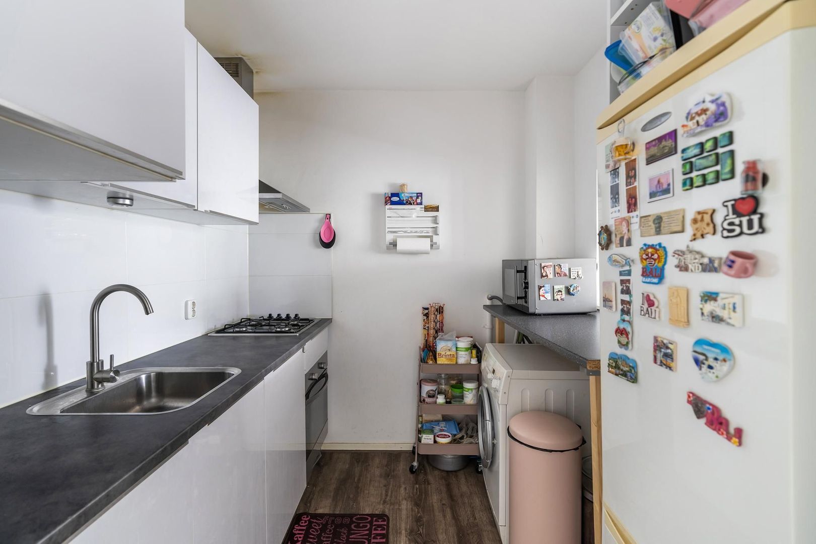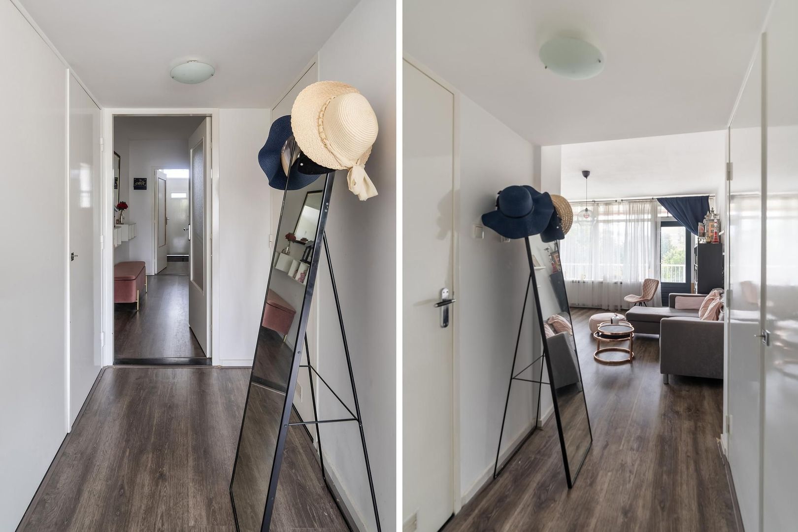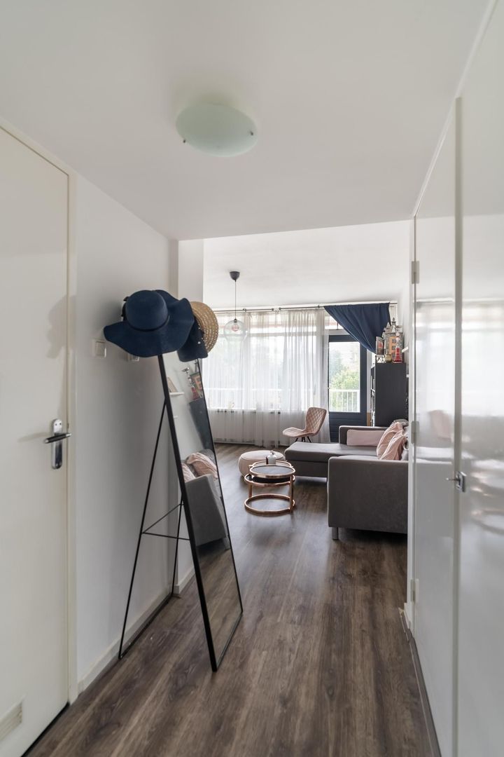 Afgesloten entree met toegang tot de berging, trappenhuis en lift naar de woning op de 3e woonlaag; Entree woning; tochtportaal met meterkast ; hal met vaste kast en modern toilet (wandcloset) met fonteintje; royale lichte woonkamer ca. 6.28/4.28x4.27 met kastenwand en toegang tot het zonnige balkon met vrij uitzicht; vanuit de woonkamer toegang tot de semi-open keuken ca. 2.38x2.25 met gaskookplaat, afzuigkap, koelkast, vriezer, oven en vaatwasser; slaapkamer aan de voorzijde ca. 3.28x2.83 met toegang tot de keurige badkamer ca. 1.61x1.65 met douche en wastafel;