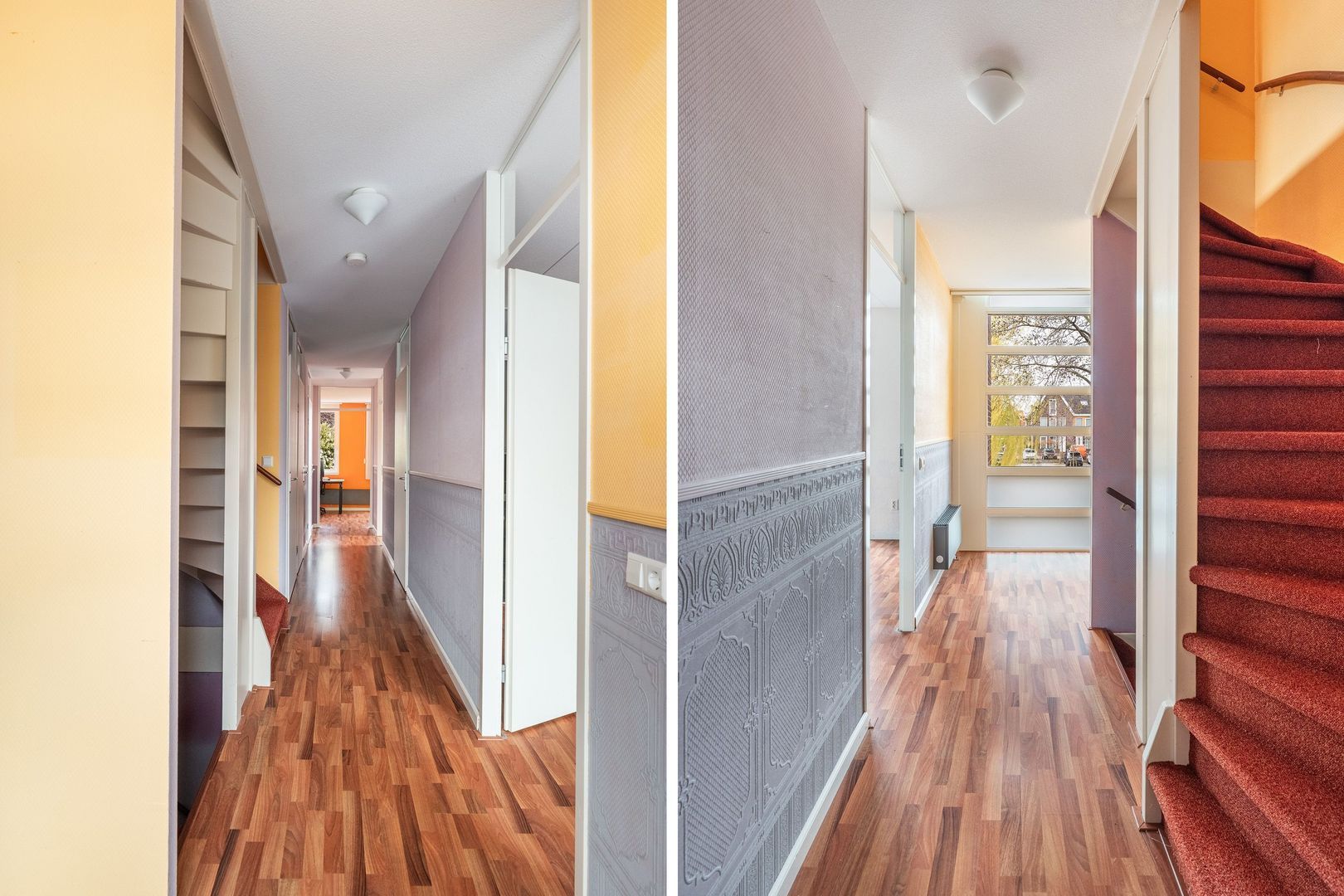 Trap vanaf de overloop naar de overloop op de 3e etage; grote berging aan de voorzijde; riante 4e slaapkamer met lichtinval van 3 zijden en toegang tot het riante dakterras van circa 23m²;