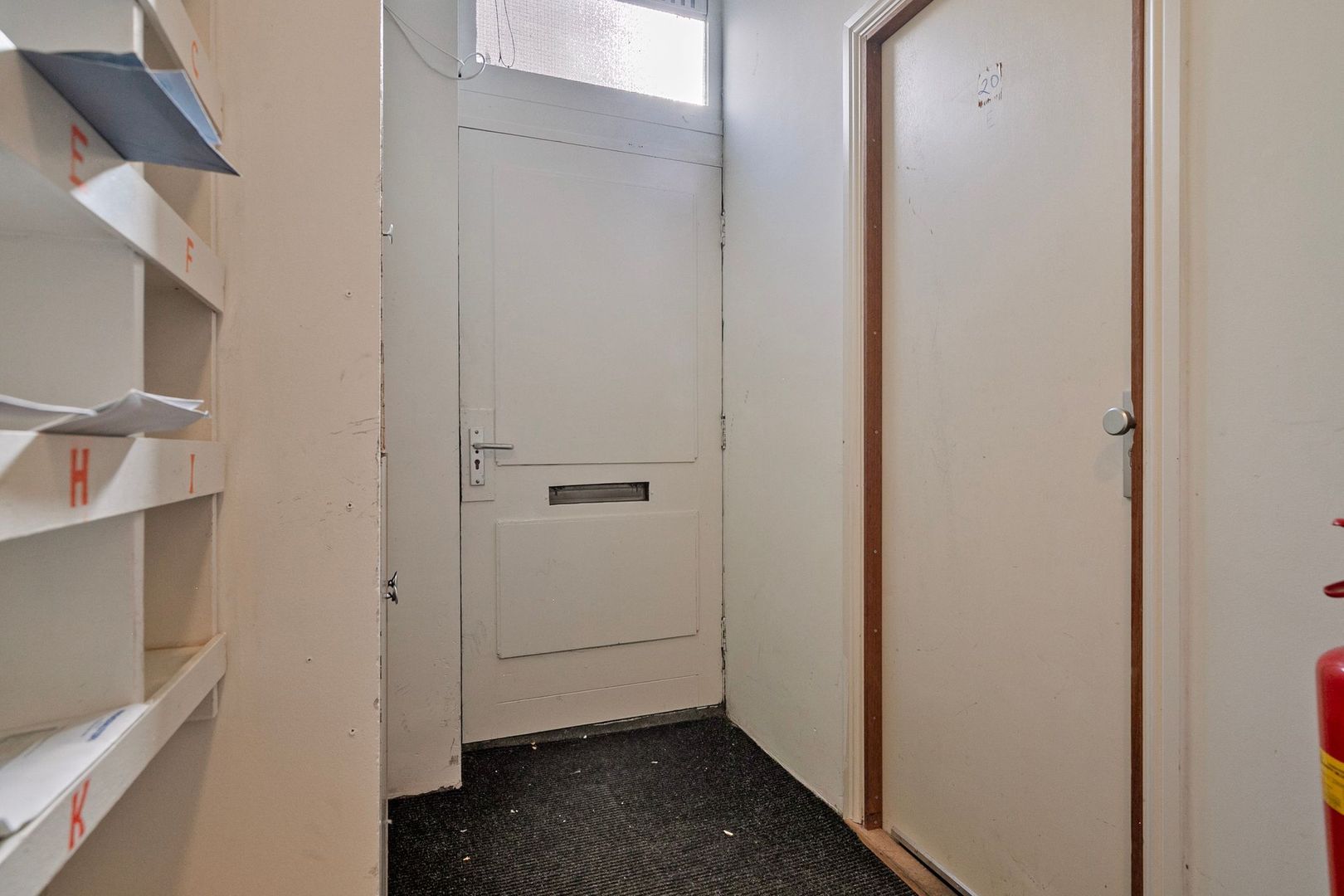 Centrale entree op de begane grond met gang naar het achterhuis. Via stalen trap toegang tot het appartement,; gang; voorslaapkamer links; voorslaapkamer rechts; badkamer met douche, toilet en wastafelmeubel; tussenkamer; woon-eetkamer over de volle breedte met open keuken en diverse ingebouwde apparatuur zoals kookplaat, afzuigkap, vaatwasser, onderbouw koel/vriescombinatie en opstelplaats wasmachine; vanuit de woonkamer toegang tot het royale balkon/terras.