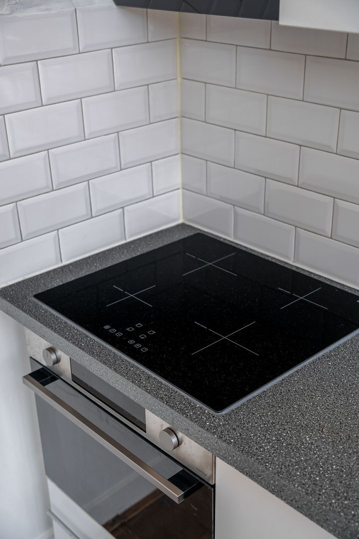 + Moderne open keuken met inbouwapparatuur (inductie kookplaat, afzuigkap, oven en onderbouwkoelkast).
