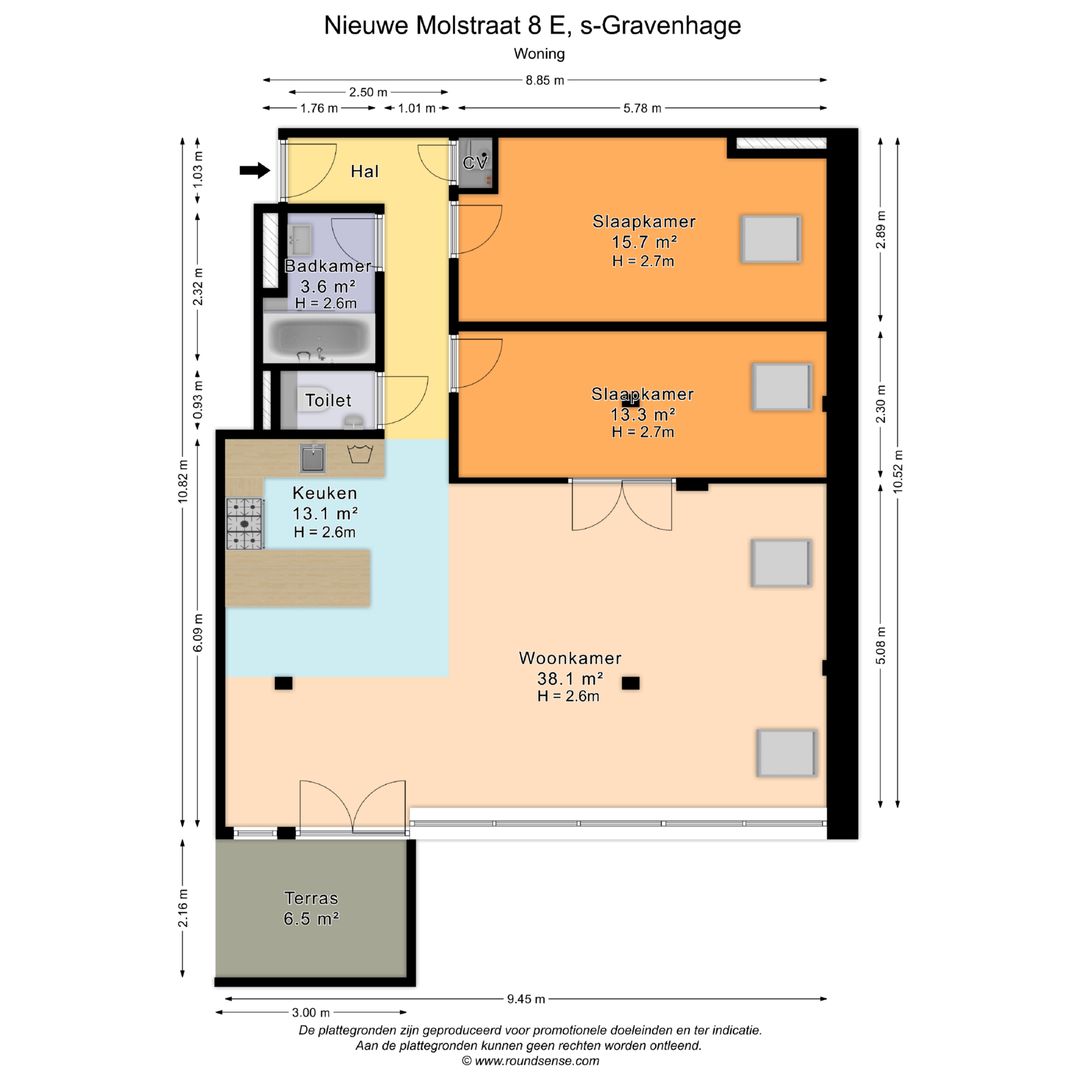 Deze informatie is door ons met de nodige zorgvuldigheid samengesteld. Onzerzijds wordt echter geen enkele aansprakelijkheid aanvaard voor enige onvolledigheid, onjuistheid of anderszins, dan wel de gevolgen daarvan. Alle opgegeven maten en oppervlakten zijn indicatief.- i.v.m. het bouwjaar zijn de ouderdoms- en materialenclausule van toepassing