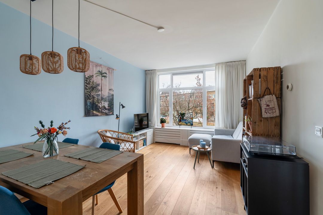 Vruchtenbuurt. Sfeervol 3 kamer appartement (ca 64m²) op de 1e verdieping gelegen met balkon over de gehele breedte. Deze woning is o.a. voorzien van een woonkamer, 2 slaapkamers, een moderne keuken met apparatuur en een badkamer. De woning is voorzien van kunststof kozijnen met HR++ glas aan de voorzijde en dubbel glas aan de achterzijde. De Vereniging van Eigenaren is actief en er is een MJOP beschikbaar!