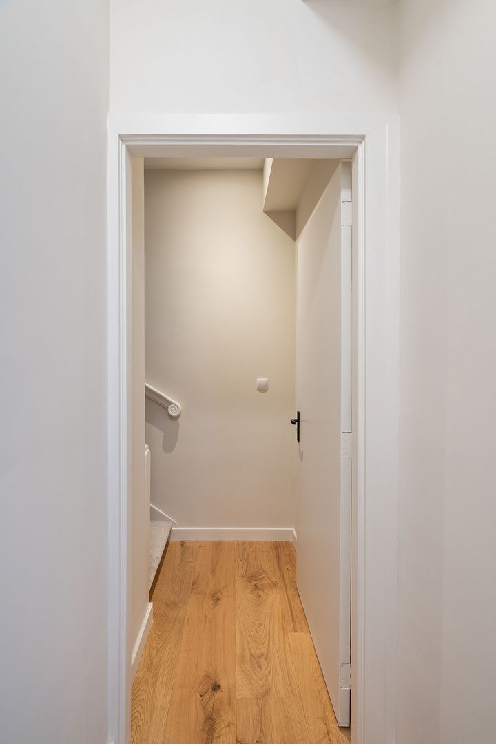 Afgesloten centrale entree met binnentrap naar de woningentree op de 2e verdieping; woonkamer met moderne open keuken in hoekopstelling welke o.a. is voorzien van een inductiekookplaat, afzuigkap en oven; slaapkamer aan de voorzijde met moderne badkamer met een inloopdouche, wastafelmeubel, handdoekradiator en wasmachineaansluiting; modern separaat toilet (wandcloset) met fonteintje; balkon aan de achterzijde