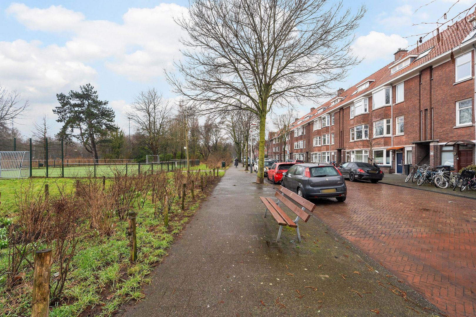 Laakkwartier. Keurig onderhouden 4 kamer parterre (75m²) met een vrije uitzicht aan de voorzijde en een fraai aangelegde groene achtertuin en een vrijstaande berging. Deze sfeervolle woning is o.a. voorzien van een lichte woonkamer en suite met een fraaie glas in lood schuifseparatie, moderne keuken met inbouwapparatuur, 2 slaapkamers en een moderne badkamer. De gehele woning is voorzien van kozijnen met dubbel glas, eigen grond en heeft een actieve Vereniging van Eigenaren met een meerjarenonderhoudsplan.