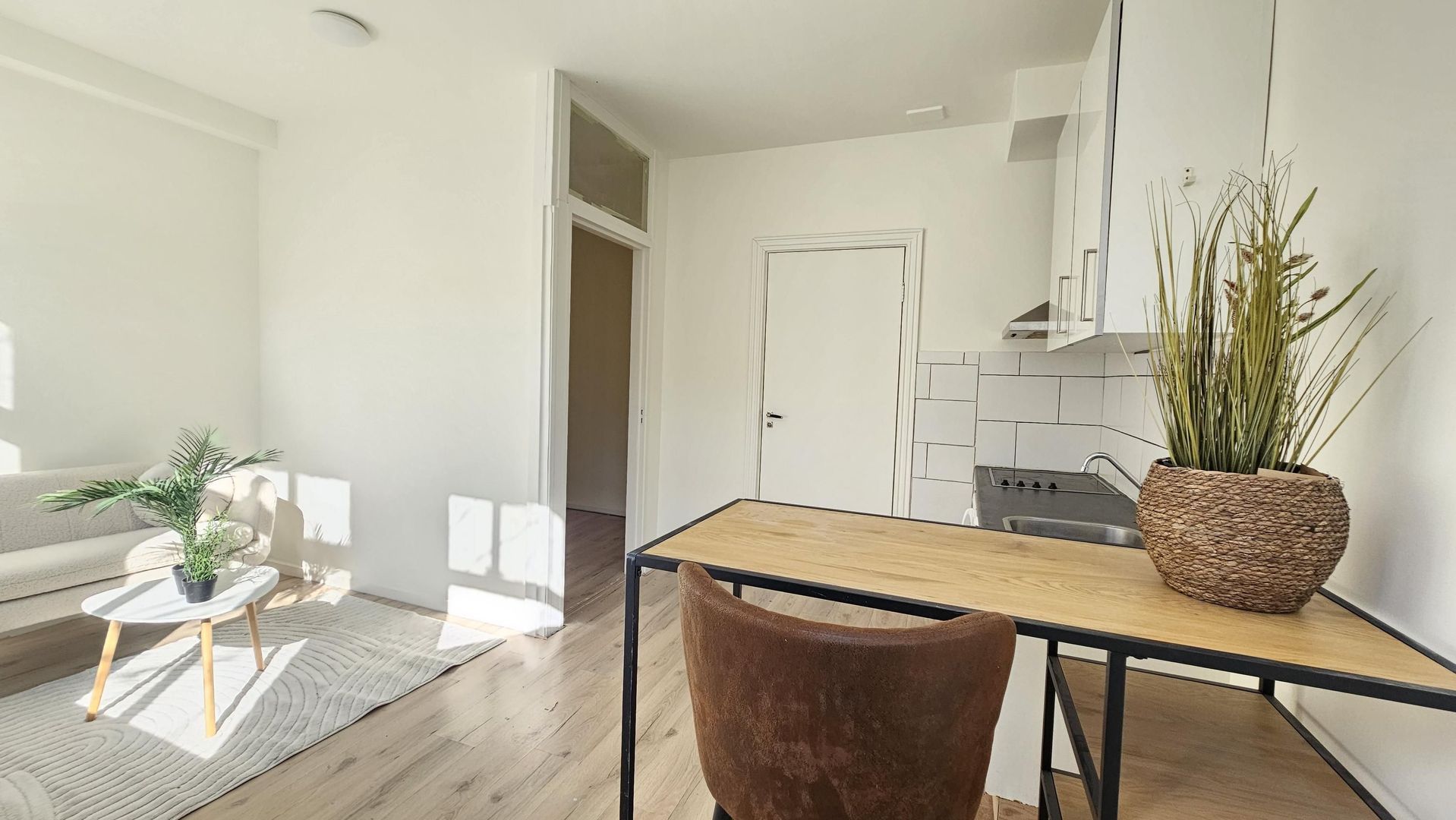 Centrumrand. In een complex met 28 kleine appartementen ligt deze parterrewoning aan de achterzijde. Het appartement heeft 1 woonkamer, een inpandige (slaap)kamer, een eenvoudige open keuken met diverse apparatuur en een badkamer. Het betreft een complex met woningen die uit de huursector komen. De woningen die leeg komen worden opgefrist en verkocht. Dit is een van de eerste woningen in het complex die te koop komen. Meerdere zullen binnenkort volgen