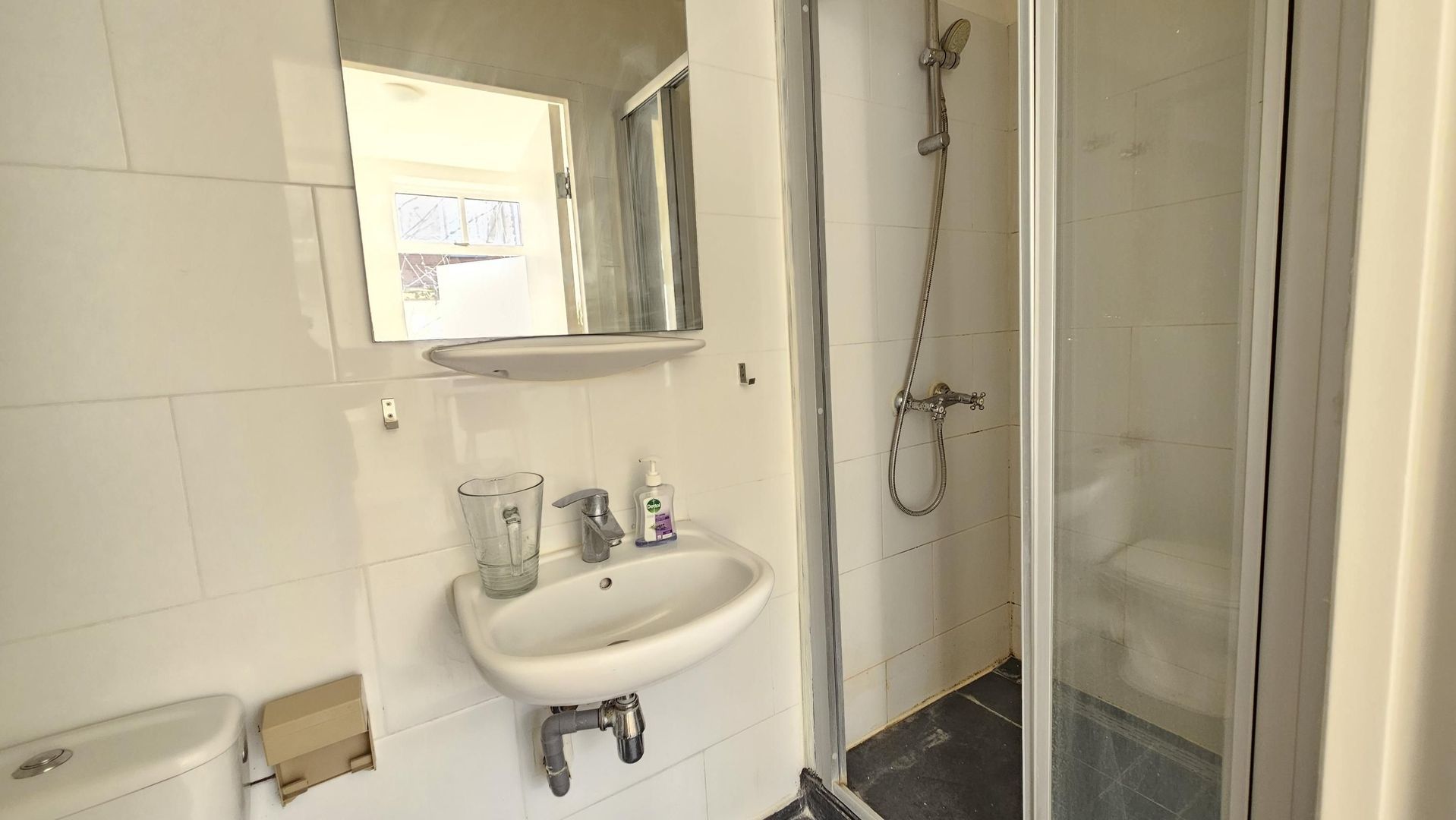 Entree via het achterom aan de achterzijde via de eigen tuin woonkamer over de volle breedte met een eenvoudig keukenblok en diverse apparatuur. Inpandige kamer. Badkamer met douche, toilet en wastafel.