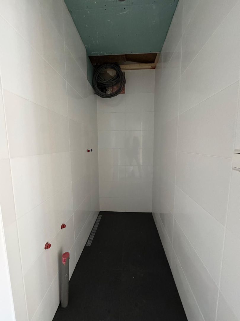 Entree via het achterom aan de achterzijde via de eigen tuin (Zuid-West). Woonkamer over de volle breedte met drie ramen, een modern keukenblok met ingebouwde koelkast, inductie kookplaat, afzuigkap, en combioven. Mogelijkheid voor inpandige (slaap)kamer. Nieuw betegelde douche, toilet en wastafel (deze wordt afgewerkt opgeleverd).