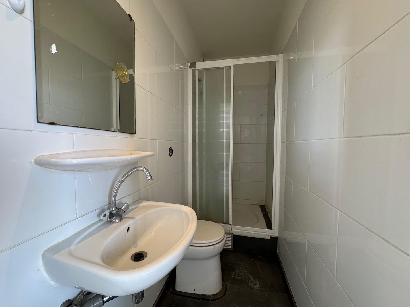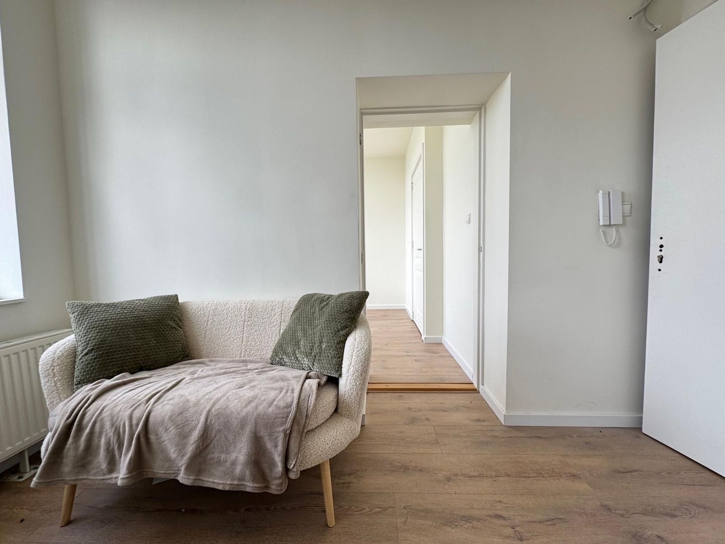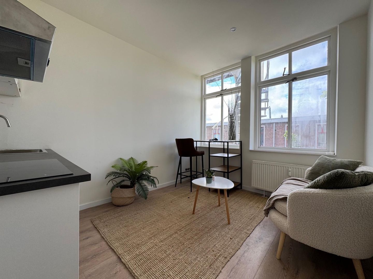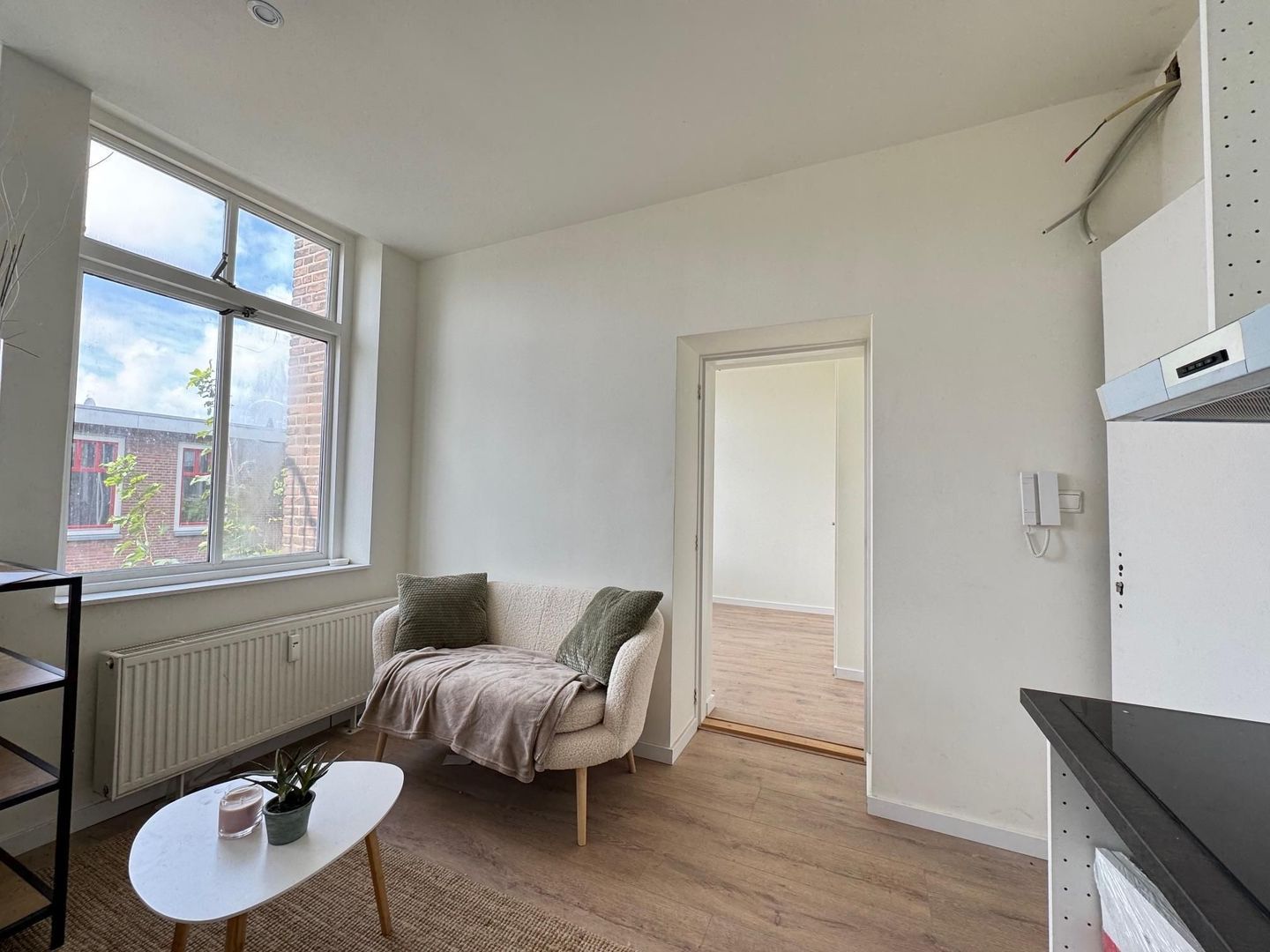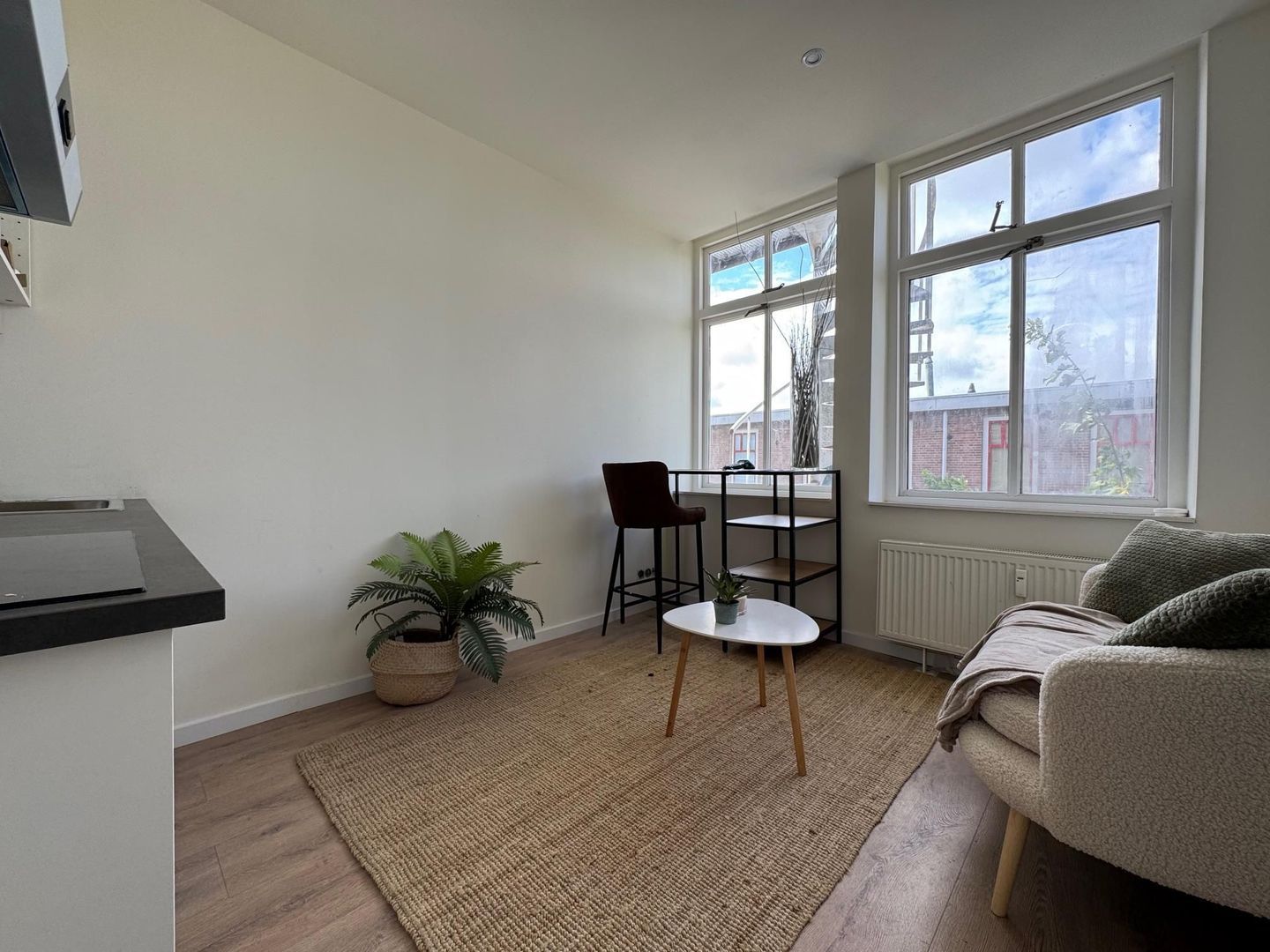 Centraal entree op de begane grond; binnentrap naar de 2e etage; gang met toegang tot het appartement. Woonkamer over de volle breedte met drie ramen, een modern keukenblok met ingebouwde koelkast, inductie kookplaat, afzuigkap, en combioven. Mogelijkheid voor inpandige (slaap)kamer. Betegelde douche, toilet en wastafel.