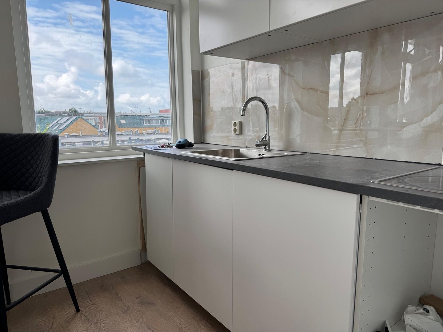 Centrumrand. In een complex met 28 kleine appartementen ligt deze 2e etage studio aan de achterzijde van het complex. Het appartement heeft 1 kamer met de mogelijkheid voor een inpandige (slaap)kamer, een nieuwe open keuken met ingebouwde apparatuur, een nieuwe badkamer, nieuw laminaat en schilderwerk. Het betreft een complex met woningen die uit de huursector komen. De woningen die leeg komen worden opgefrist en verkocht. Binnenkort wordt een warmtepomp aangesloten in het kader van verduurzaming.