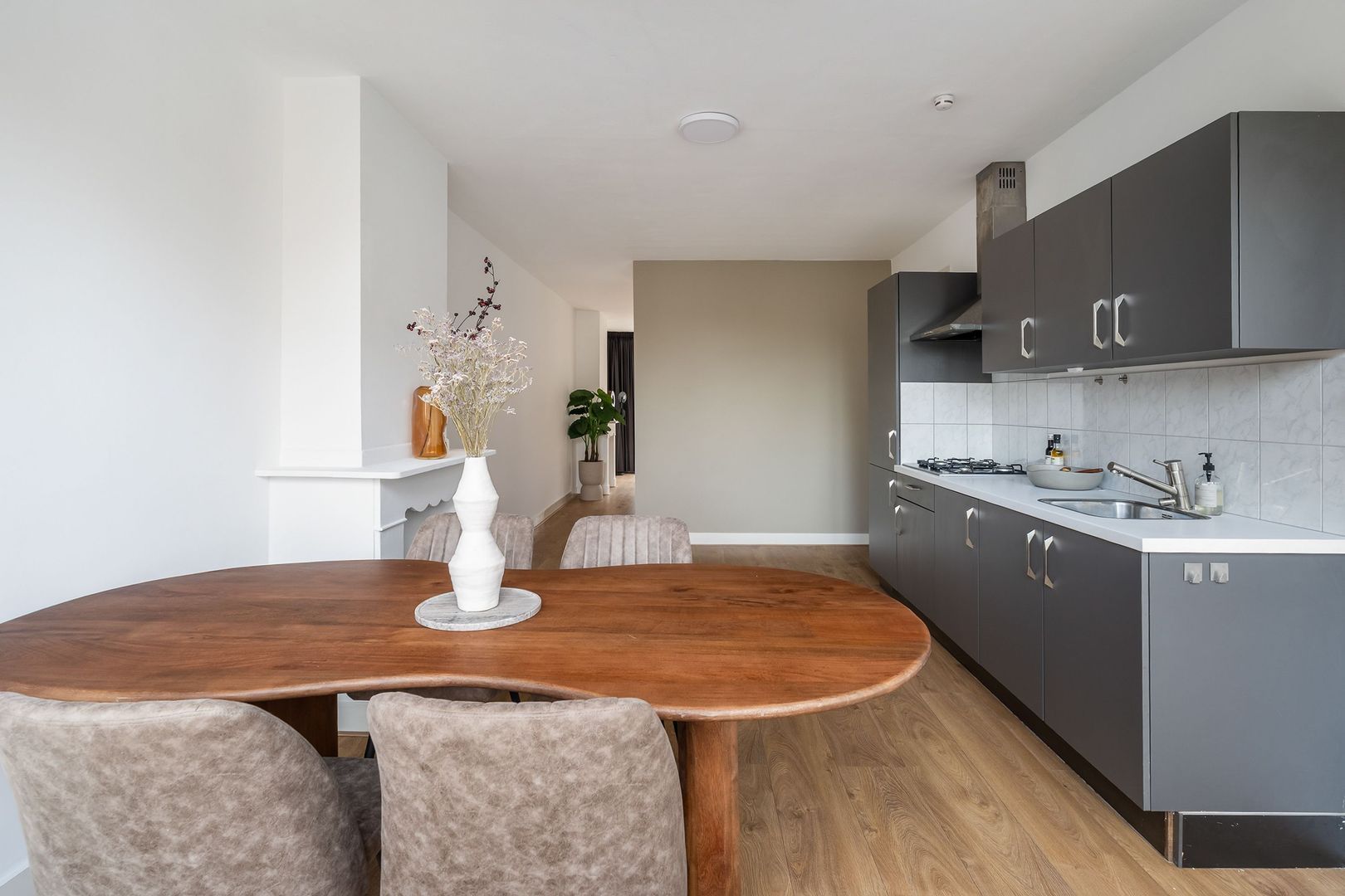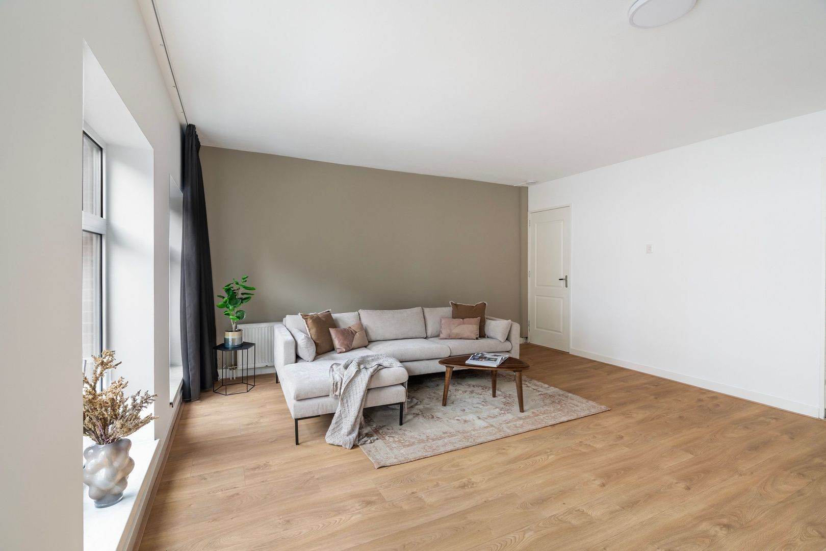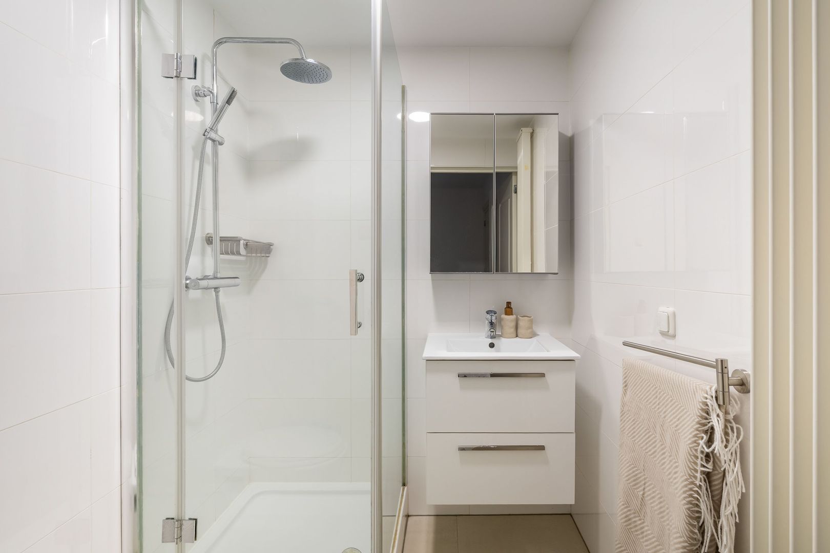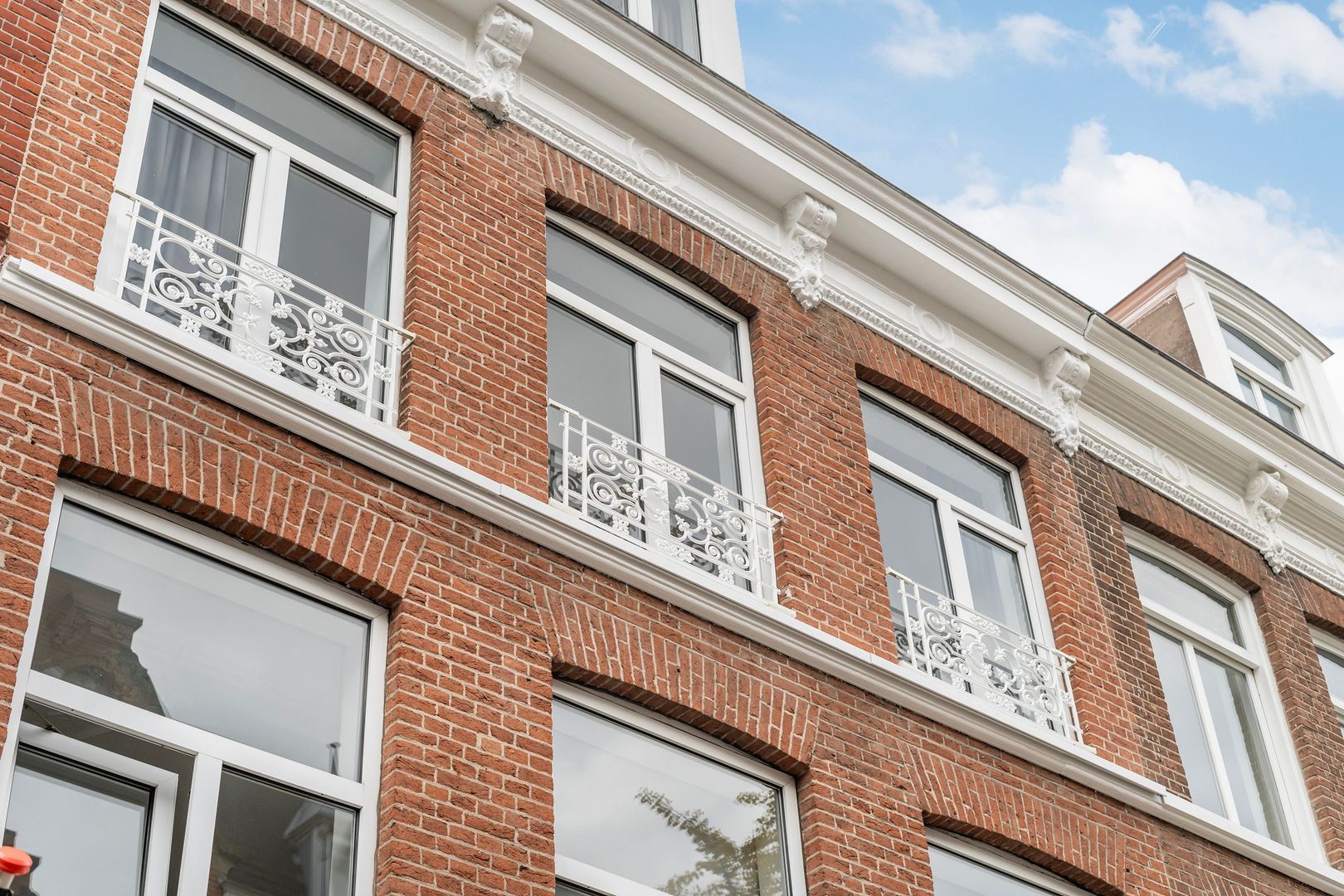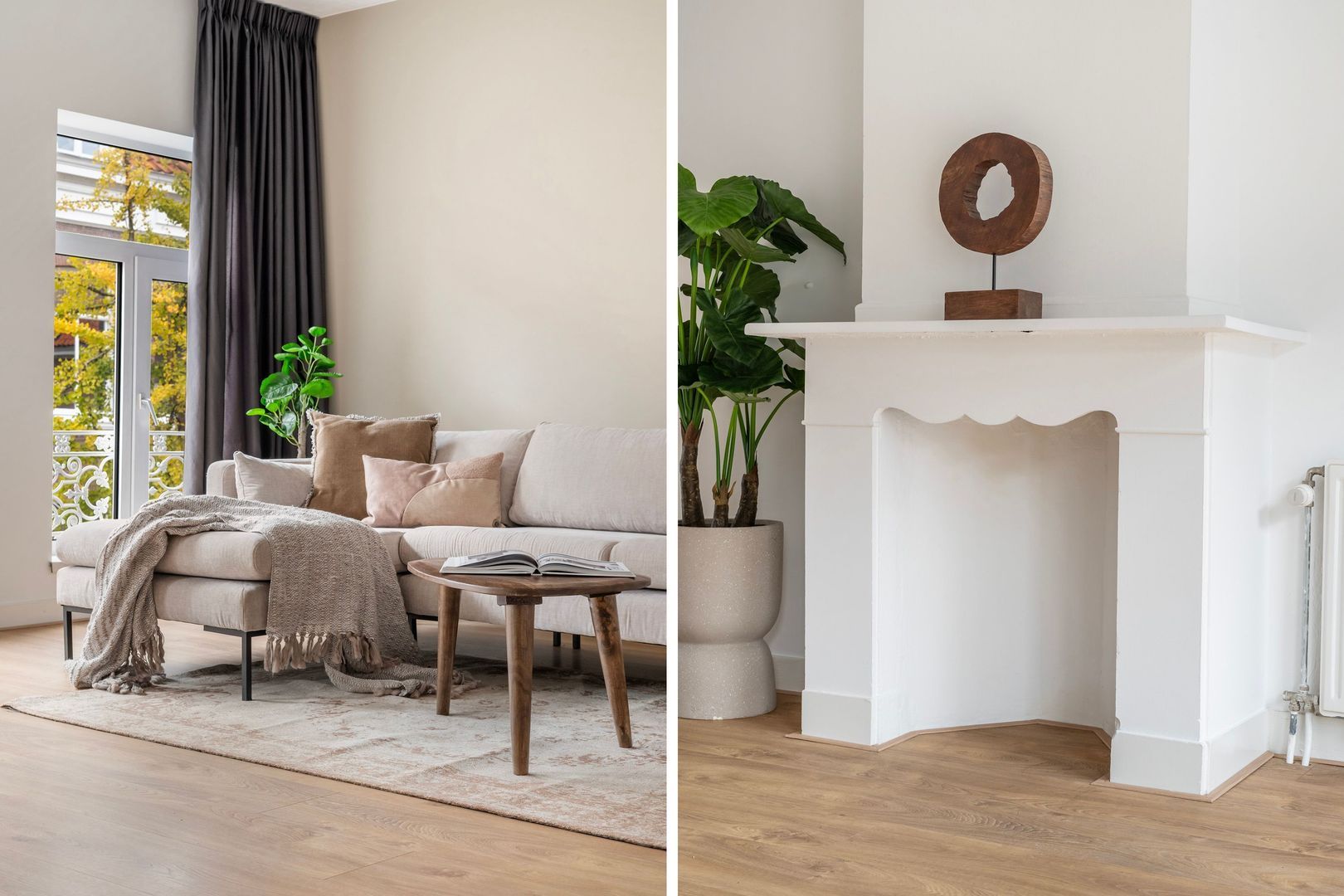 1e etage: Overloop met toegang tot het toilet. Ruime, lichte woonkamer (ca. 5.41 m x 4.07 m) met levendig uitzicht over de straat en een fraaie eiken lamelparketvloer. Aan de achterzijde bevindt zich de open keuken (ca. 5.91 m x 3.64 m) met toegang tot het balkon (ca. 3.64 m x 1.08 m). Op deze verdieping is tevens een badkamer (ca. 2.51 m x 1.68 m) met inloopdouche, wastafel en berging.