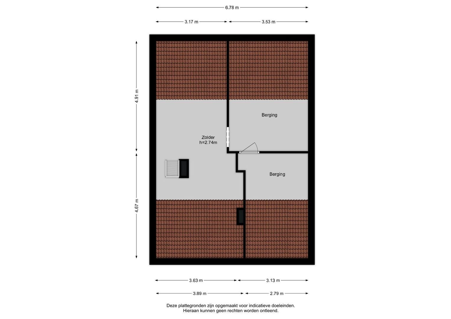 via de hal kunt u de vliering bereiken met een afmeting van ca. 6.78x4.25