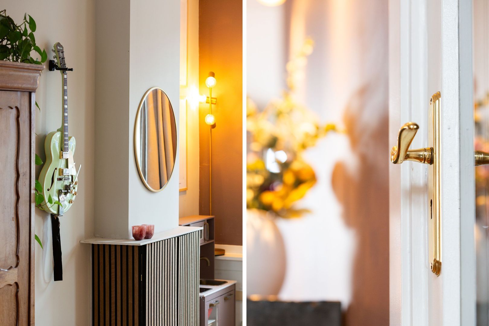 Entree op straatniveau; gang met uitgebreide meterkast en binnentrap naar de eerste etage. Overloop voorzien van eikenvloer en radiator; modern hangend toilet met fontein; zeer lichte en sfeervolle L-vormige woon/eetkamer ca. 9.00x5.13/3.28 voorzien van eikenvloer, gestuukte wanden en plafond, design radiatoren en openslaande deuren naar het terras; moderne open keuken in U-vormige opstelling voorzien van diverse inbouwapparatuur, te weten; koelkast, vriezer, grote oven, inductie kookplaat, RVS afzuigkap, magnetron en vaatwasser.