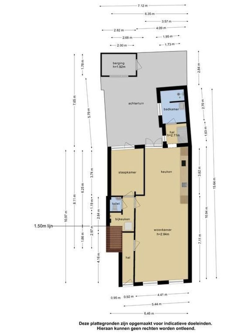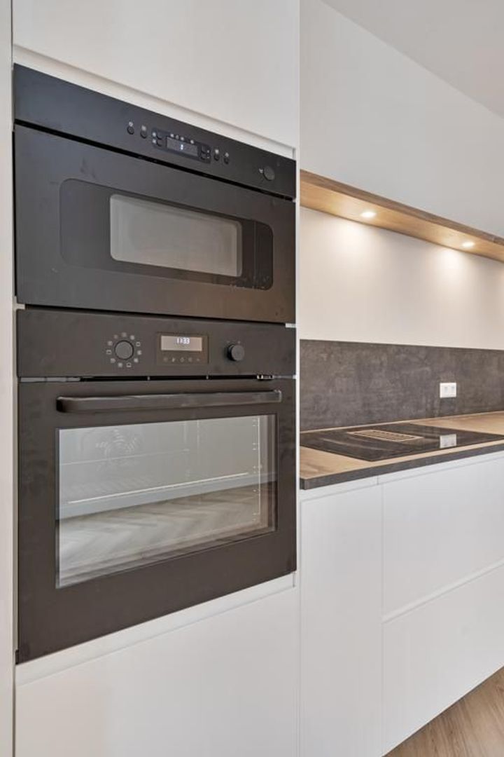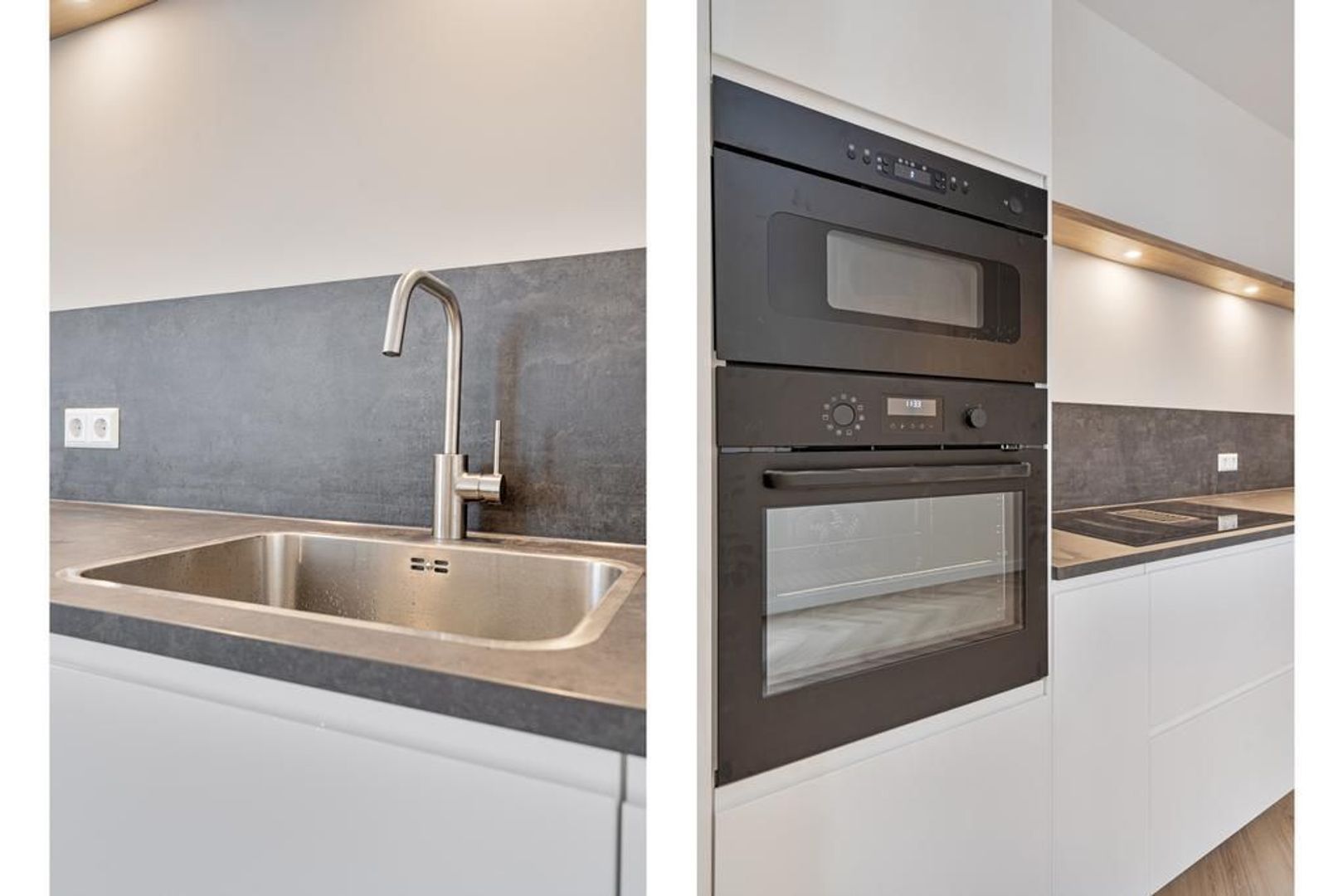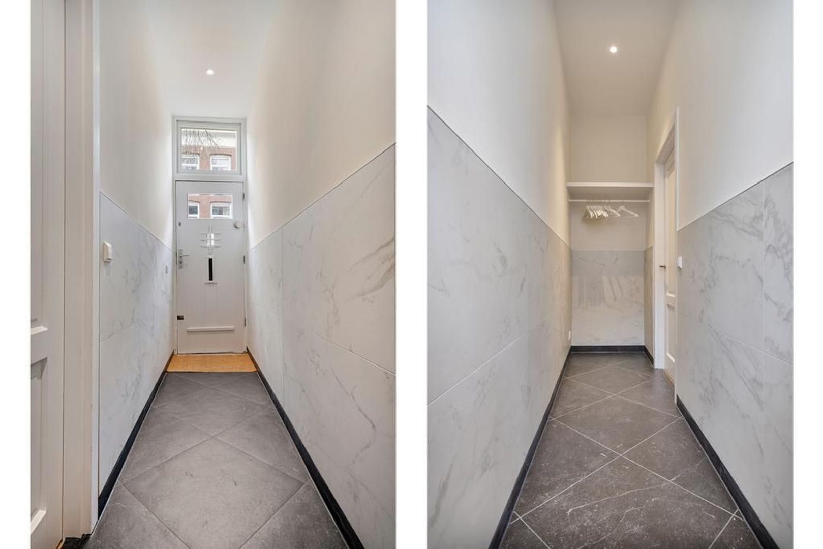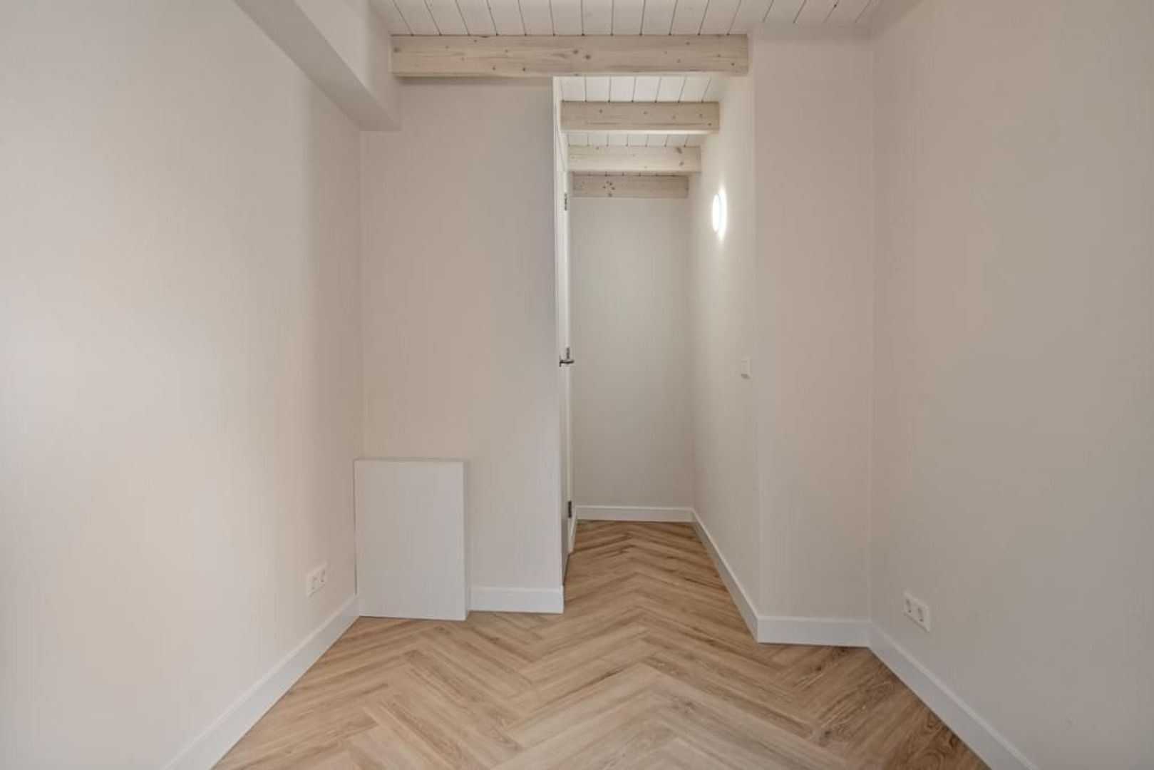 Entree appartement met hal en garderoberuimte; toegang woonkamer ca. 10.94x4.41/3.57 met achterin de nieuwe complete open keuken met ingebouwde inductie kookplaat, oven, afzuigkap, koel-/vriescombinatie, vaatwasser; Eveneens aan de achterzijde van de woonkamer zijn openslaande deuren naar de tuin; tussenhal met opstelplaats voor de warmtepompinstallatie, en bergruimte; toiletruimte; toegang tot achterslaapkamer ca. 3.74x2.68 met deur naar de tuin. Achter de woonkamer is de 2-laags achterbouw met de badkamer ca. 2.7x1.96 met inloopdouche, wastafelmeubel en aansluiting voor de wasmachine; trap naar de bovenetage met overloop en kamer van ca. 2.75x2.01.