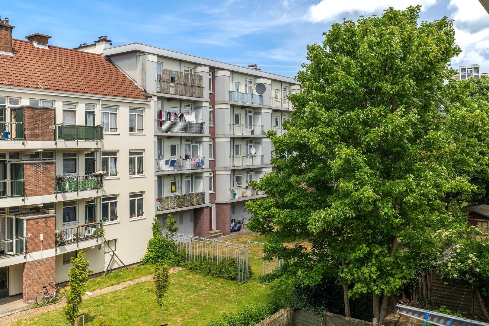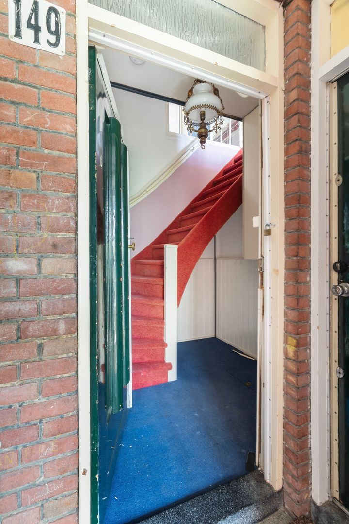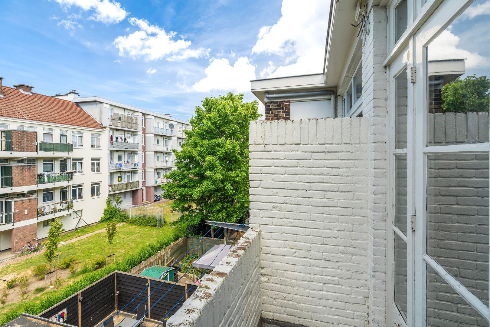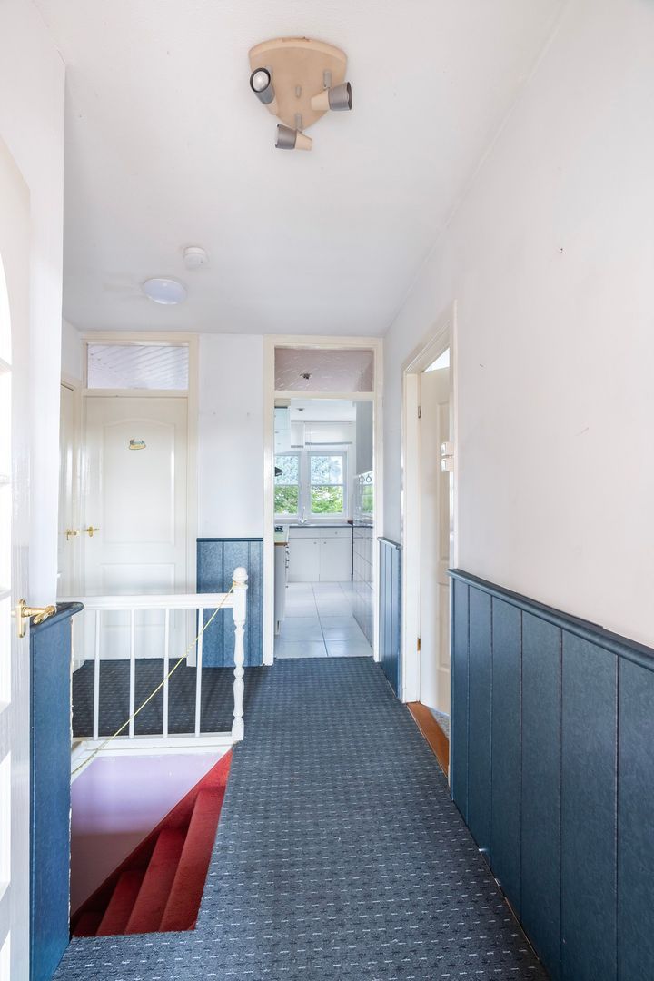 Woningentree via open portiek; hal met meterkast en binnentrap naar de overloop; royale doorgebroken woonkamer; degelijke keuken met gaskookplaat, afzuigkap, oven en toegang tot het balkon; slaapkamer aan de achterzijde met toegang tot het balkon; eenvoudig is een 2e slaapkamer te realiseren in de woonkamer middels een tussenmuur; ruime badkamer met douchecabine, ligbad en wastafelmeubel; via de bergruimte boven de trap is de vrij in te delen zolderetage van 37m² bereikbaar;