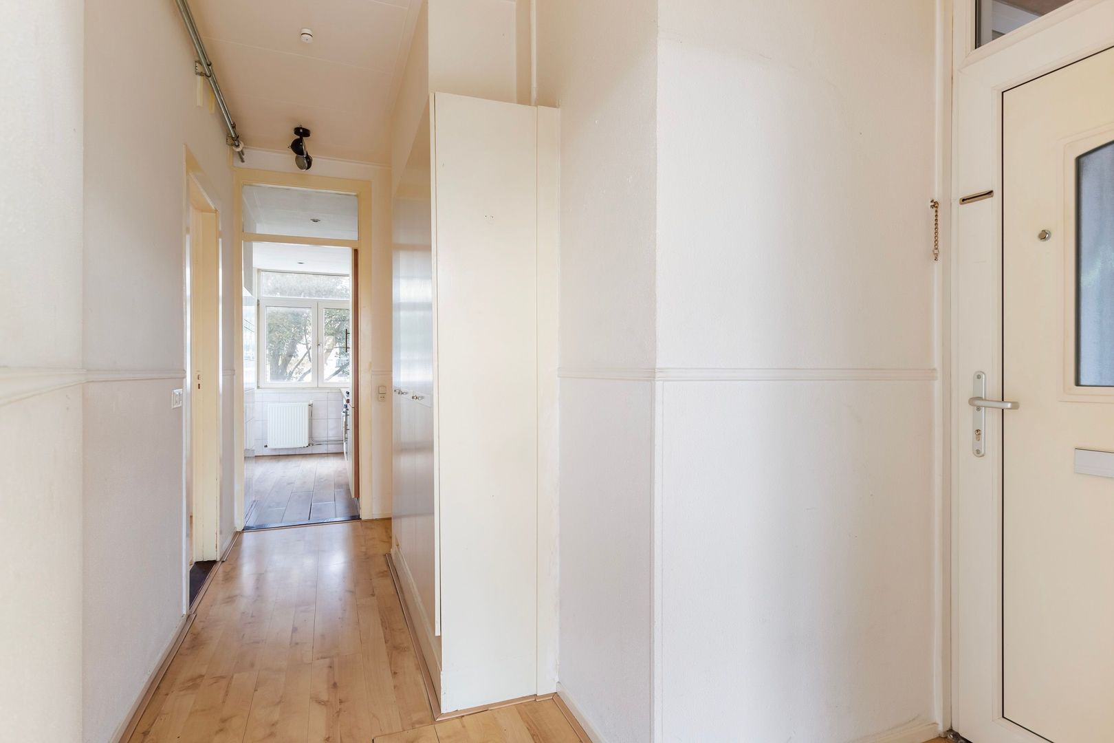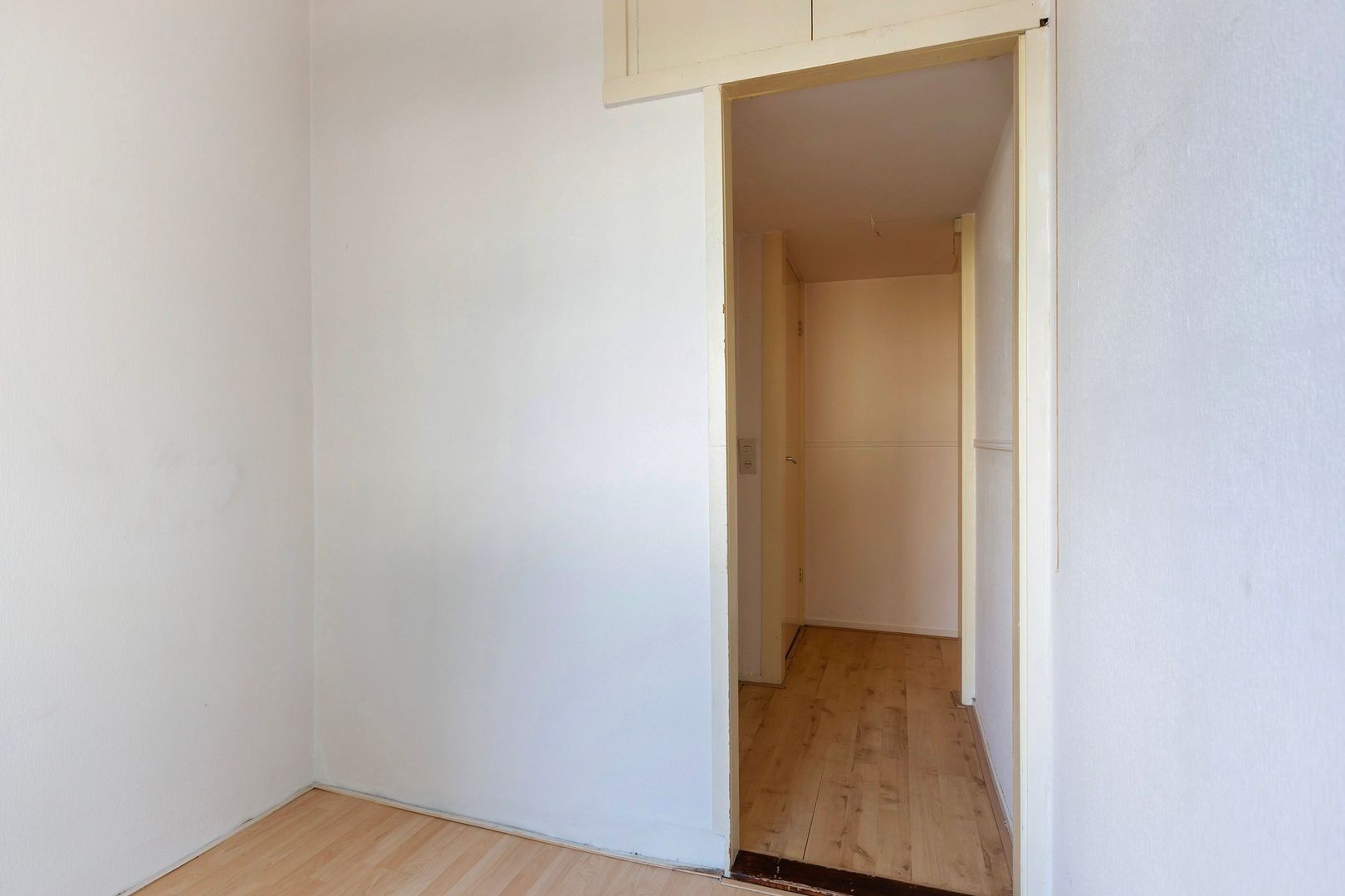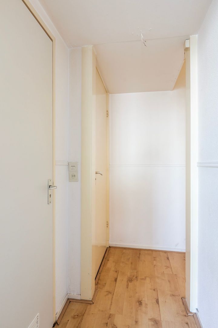 Entree, tochtportaal, gang met 2 vaste kasten; riante doorgebroken woonkamer ca. 5.87x6.09(2.98) waar eenvoudig een derde slaapkamer gerealiseerd kan worden; nette keuken ca. 1.88x3.83 v.v. gaskookplaat, afzuigkap, koelkast, oven met toegang tot balkon; zij-achter slaapkamer ca. 2.44x2.21; Hoofd slaapkamer aan de achterzijde ca. 4.12x2.98 met toegang tot het balkon; nette badkamer 1.29x0.98 v.v. inloopdouche; separaat toilet