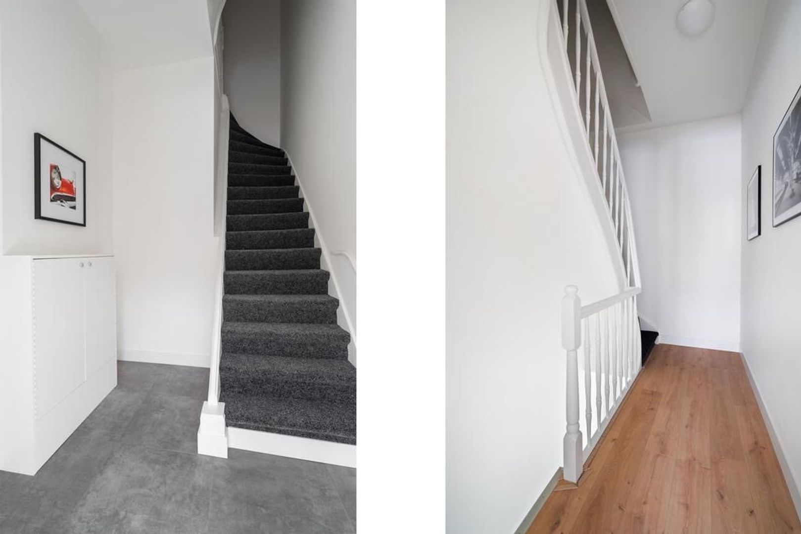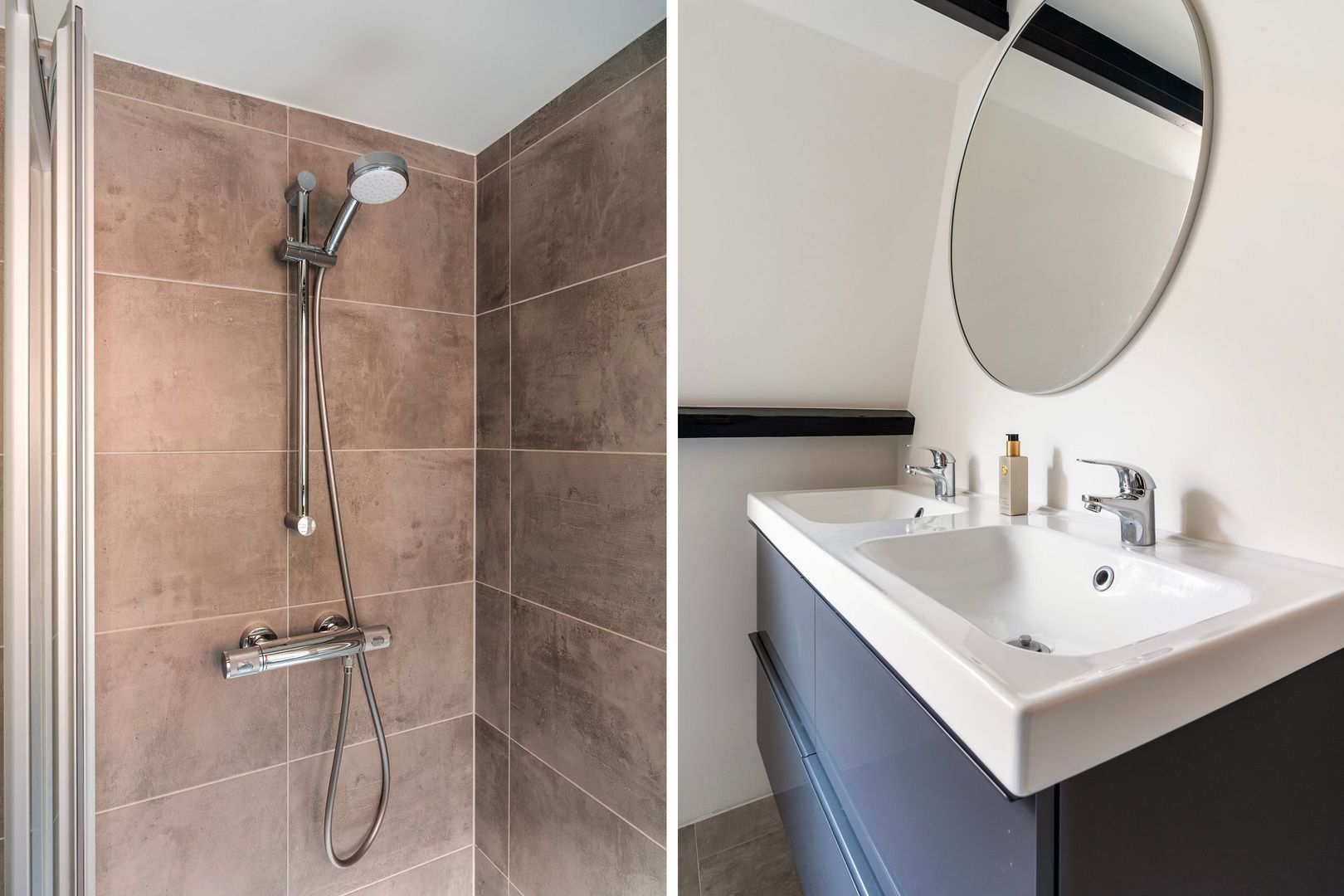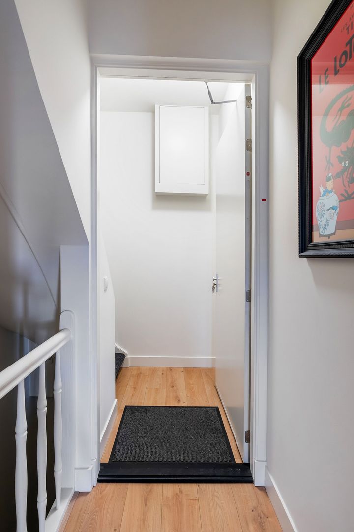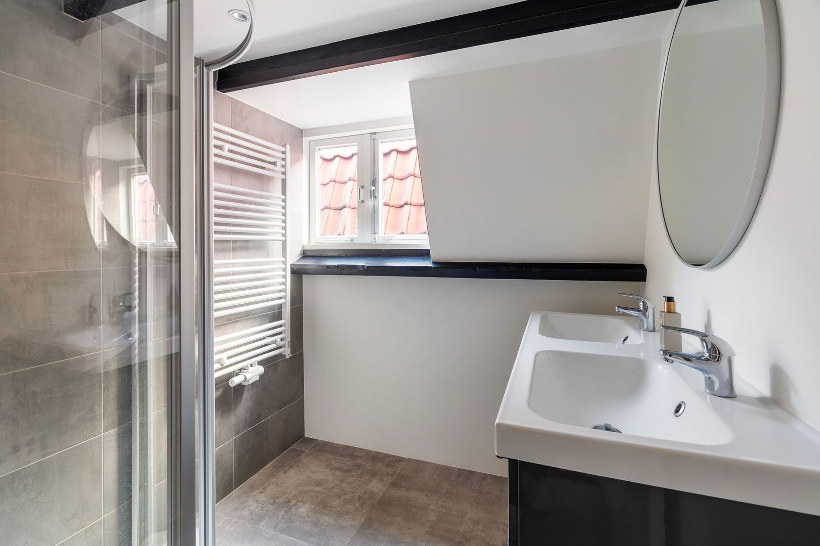 Royaal en zeer verzorgd centraal entree op de begane grond voor de 3 appartementen van het dubbel bovenhuis. Entree appartement op de 2e etage; binnentrap naar de 3e etage: overloop met toiletruimte; royale woonkamer aan de achterzijde met dakkapel, tot in de nok doorlopend balken plafond en een open keuken met modern keukenblok in hoekopstelling en met ingebouwde oven, inductie kookplaat, afzuigkap, vaatwasser en koelkast; royale slaapkamer aan de voorzijde met balken plafond, dakkapel en dakraam. Moderne badkamer met douche wastafelmeubel, designradiator en ruimte met was/droog combinatie. Vaste trap naar de bevloerde vliering (net geen stahoogte) met dakramen die ook goed te gebruiken is als extra slaap/logeerruimte of gewoon als berg of chillruimte.