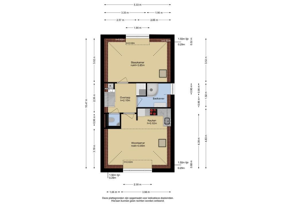 Deze informatie is door ons met de nodige zorgvuldigheid samengesteld. Onzerzijds wordt echter geen enkele aansprakelijkheid aanvaard voor enige onvolledigheid, onjuistheid of anderszins, dan wel de gevolgen daarvan. Alle opgegeven maten en oppervlakten zijn indicatief.
