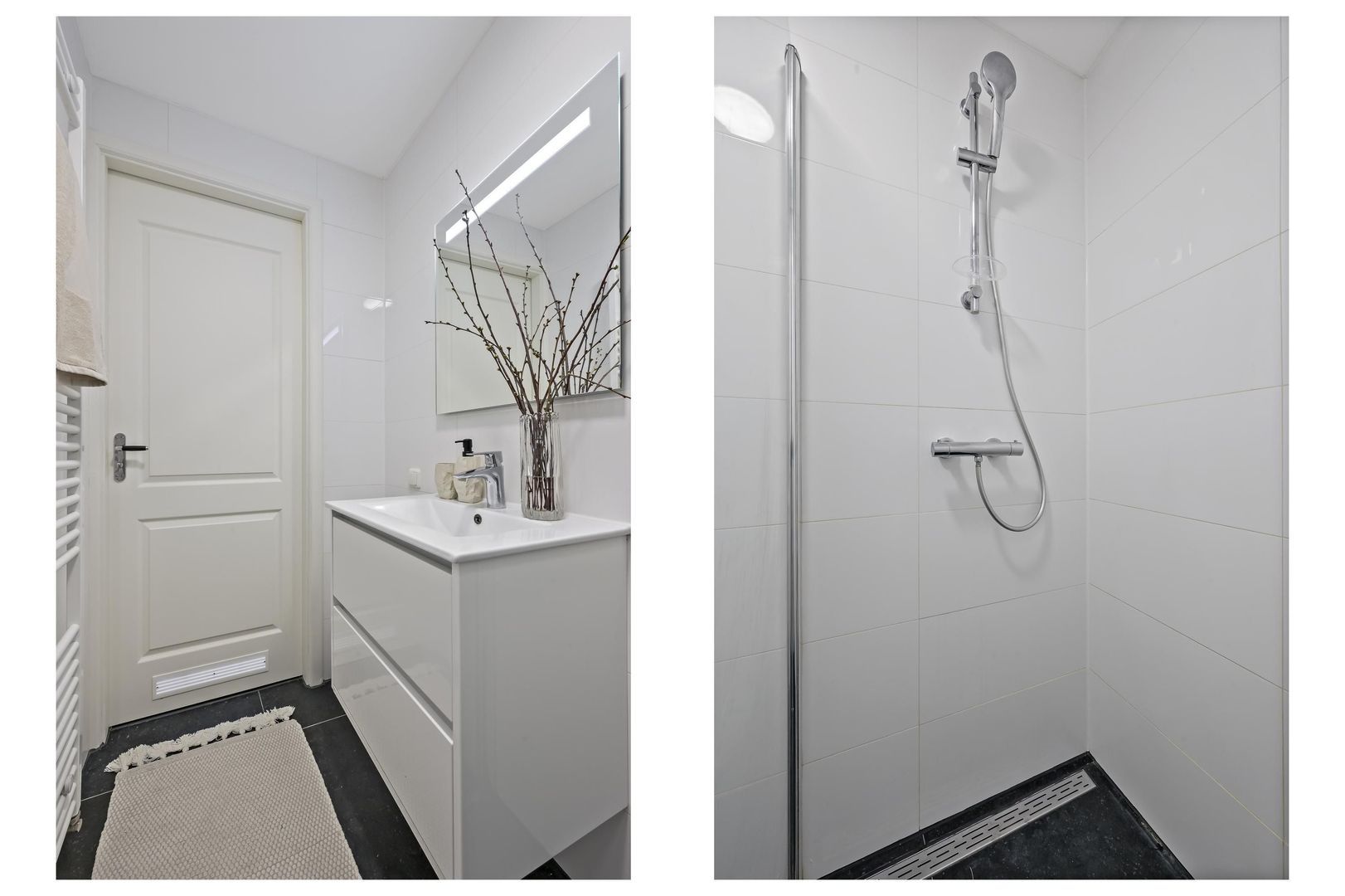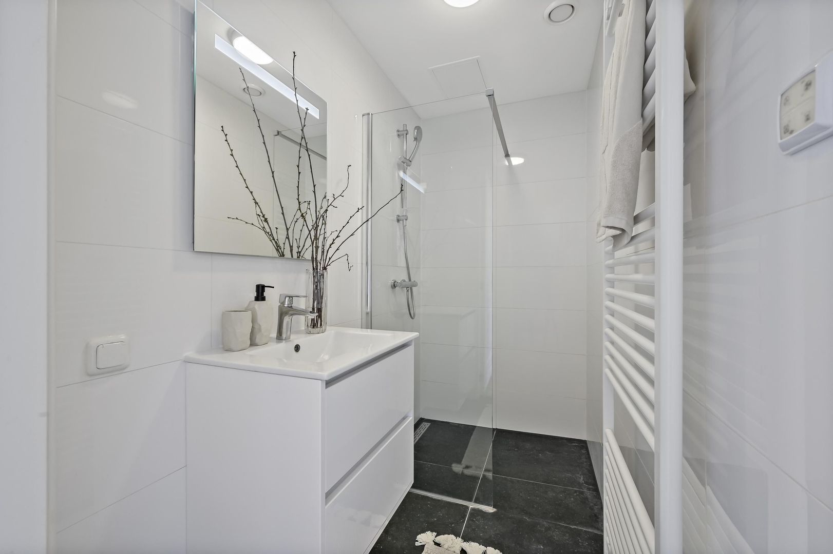 Entree op de begane grond met de meterkast en binnentrap naar de woningentree op de 2e etage; hal; royale woonkamer met veel lichtinval en een moderne open keuken voorzien van inductie kookplaat, afzuigkap, vaatwasser, combimagnetron/-oven en een wasmachine; 1e slaapkamer aan de achterzijde met openslaande deuren naar het terras; 2e slaapkamer aan de achterzijde; moderne badkamer met inloopdouche, wastafelmeubel en handdoekradiator; modern separaat toilet (wandcloset) met fonteintje;